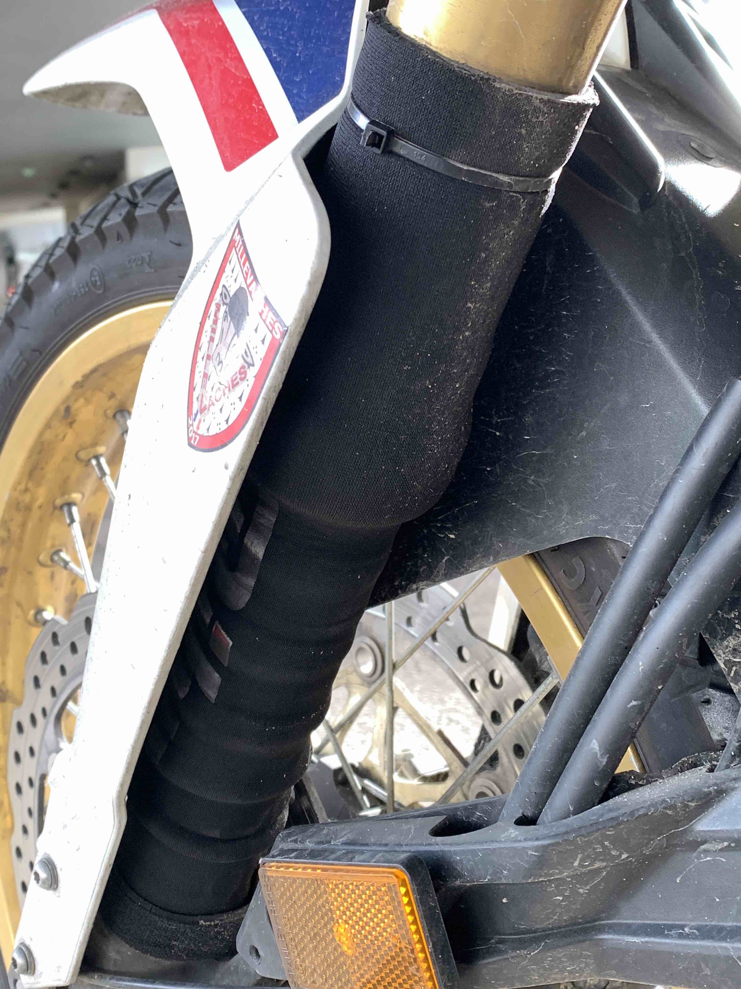 Pour ma part, j'ai mis des protections de tubes de fourche en méoprene de chez Birh.
