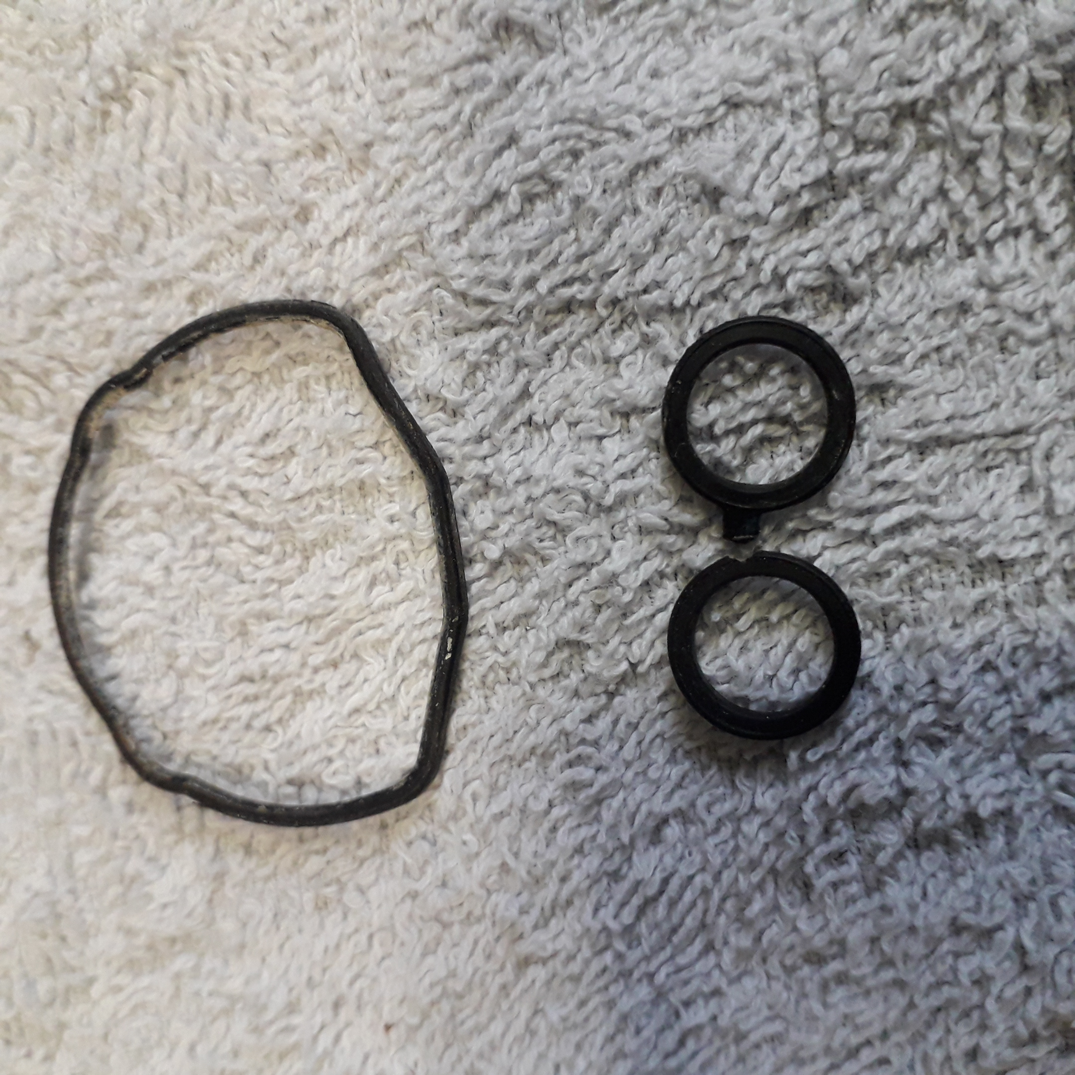 A noter que d'origine, ce n'est pas du torique, c'est un espèce de grand joint plat en une seule pièce qui fait le tour des 2 trous. Faudrait encore dé-riveter une plaque métal qui le maintient.