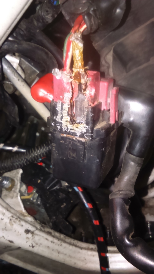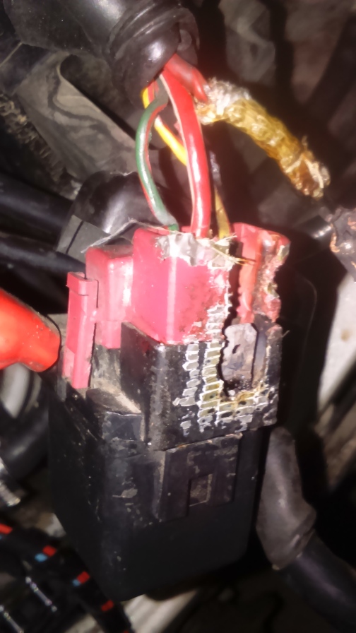 Le fusible est pas pour la protection du contact entre les deux rouges avec les deux derrières (vert-rouge et jaune-rouge) ou entre les deux qui sont vissés ? (batterie - démarreur, non visible sur la photo, derrière le relais, on distingue les isolations rouge et noire)