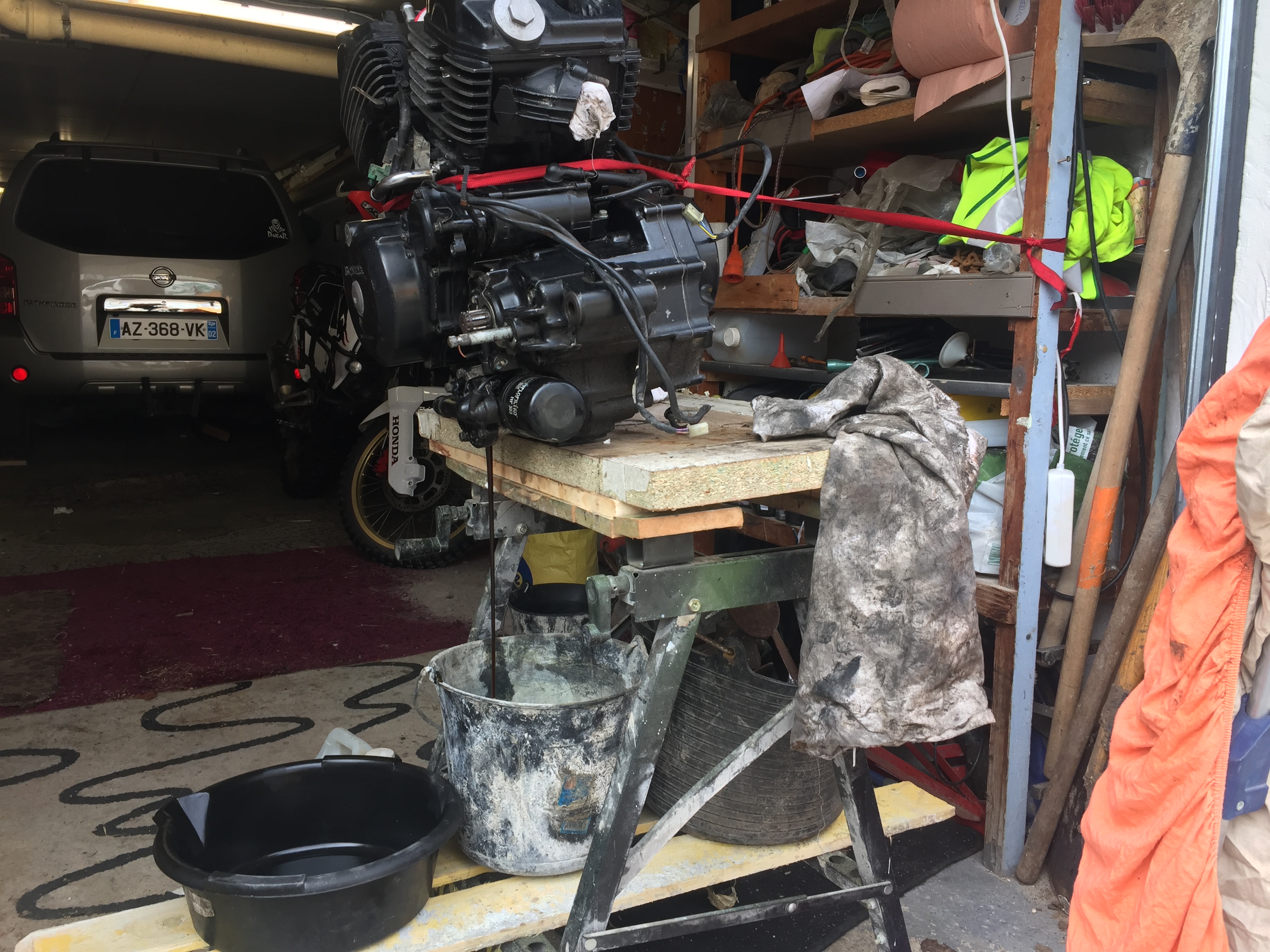 Sinon vous remarquerez la technique "jardinier" pour vidanger un moteur sortit de son cadre 😘