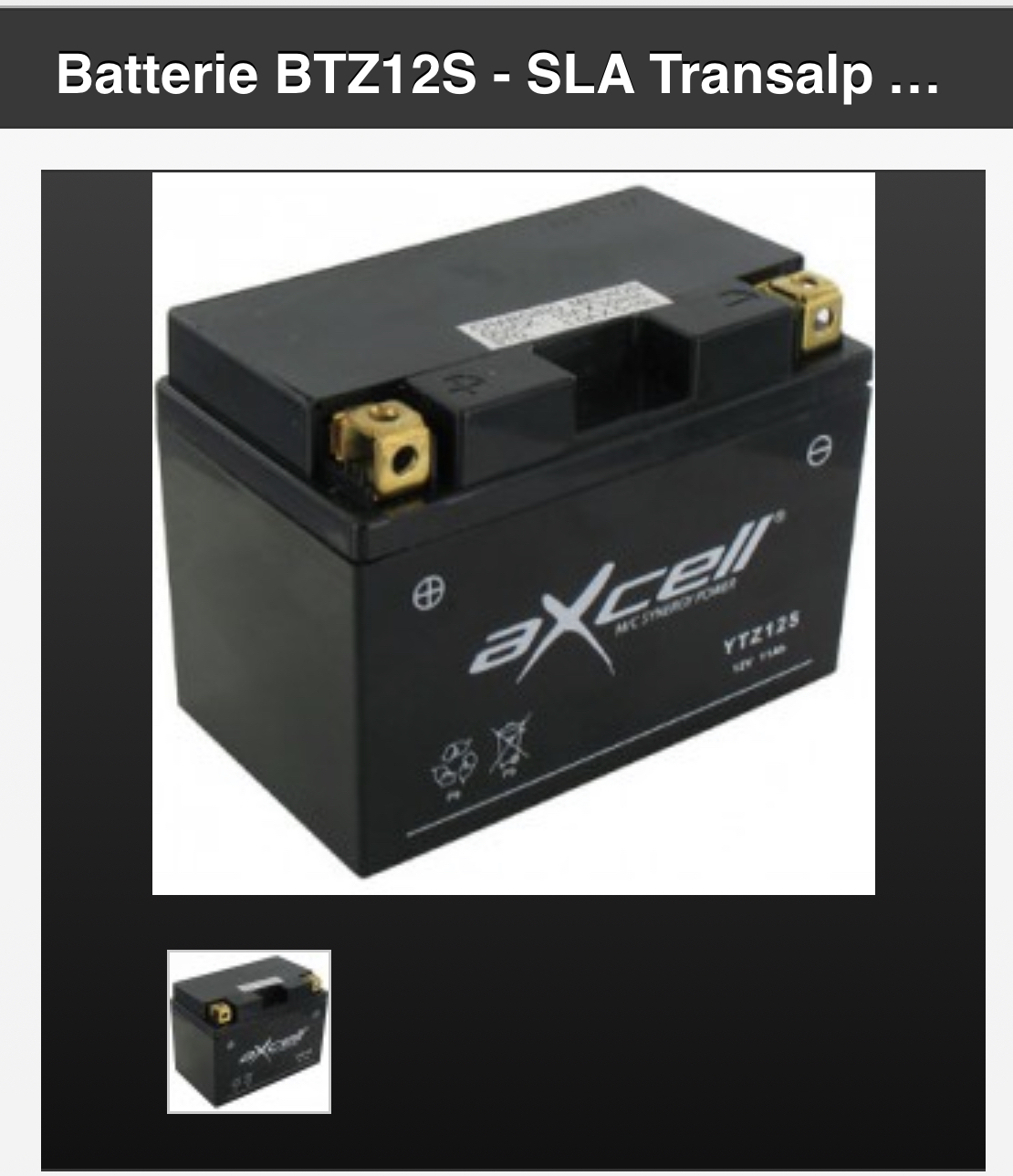 D'ailleurs, je ne comprends pas pourquoi tu as commandé: Batterie BTZ12S - SLA Transalp 2001/2009