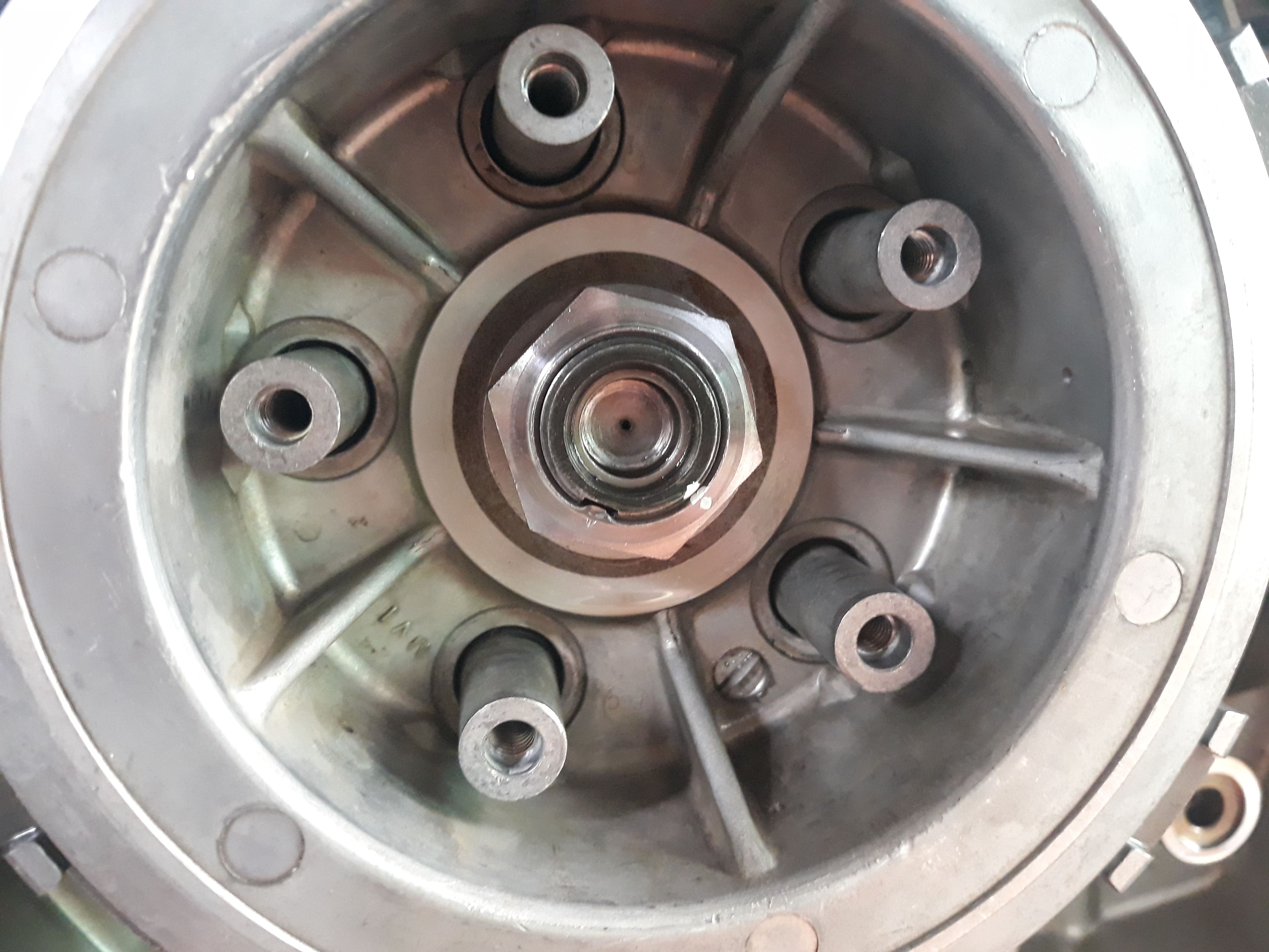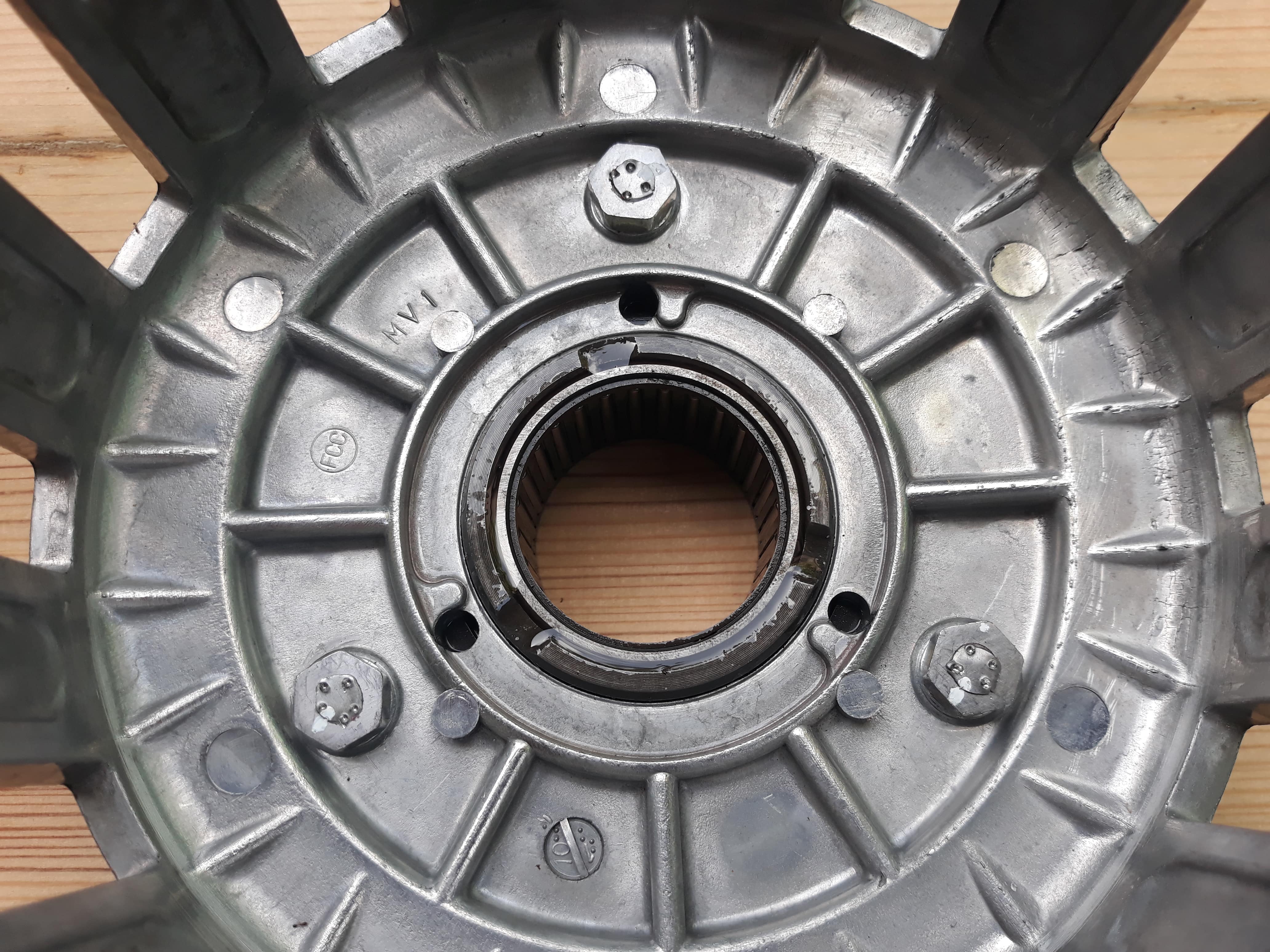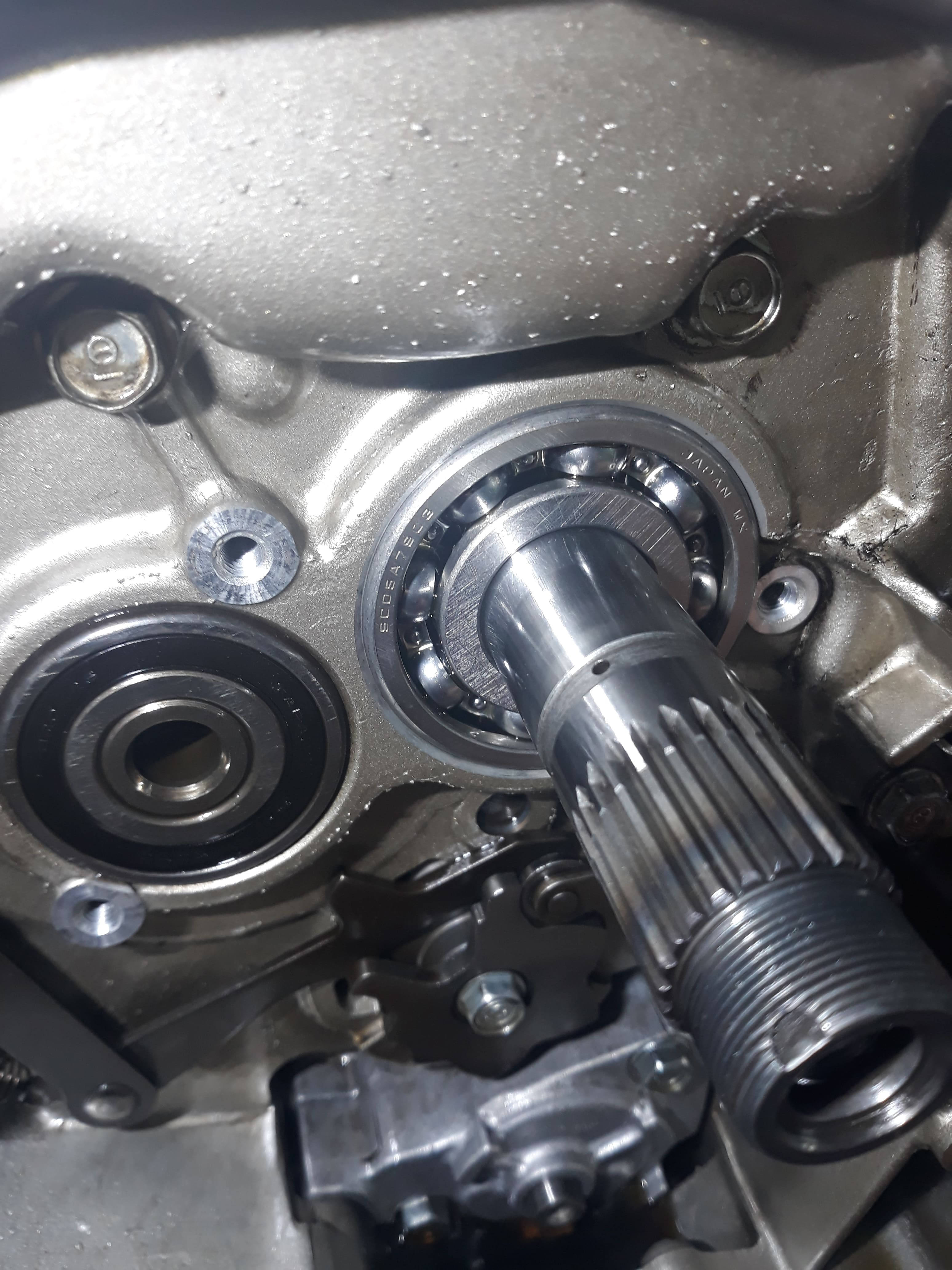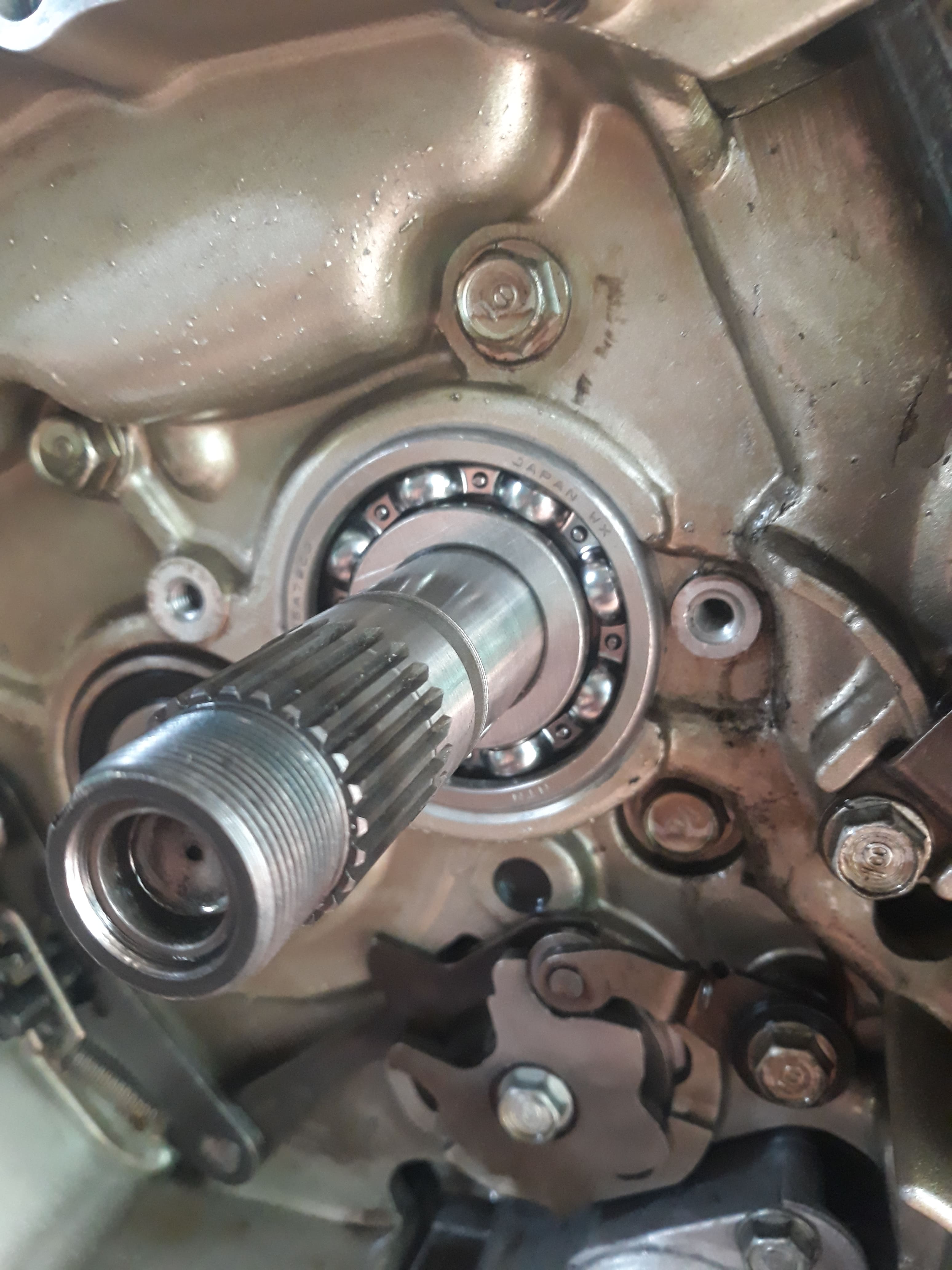 Pour le roulement, j'ai réussi à détruire seulement deux parties de la cage à billes, à 9h et à 15h juste pour pousser 2 billes et juste passer les tétons de l'extracteur, un peu galère mais avec un bon tournevis plat et une bonne pince coupante ça le fait, rien n'est tombé oh grand Dieu MERCI !!! :)