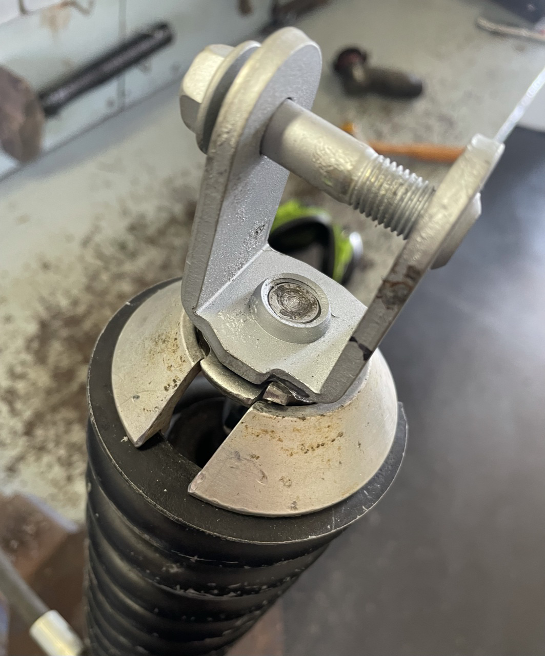 J’ai donc modifié mon amortisseur de 04 en mettant une embase conique provenant d’un amortisseur de Husqvarna.