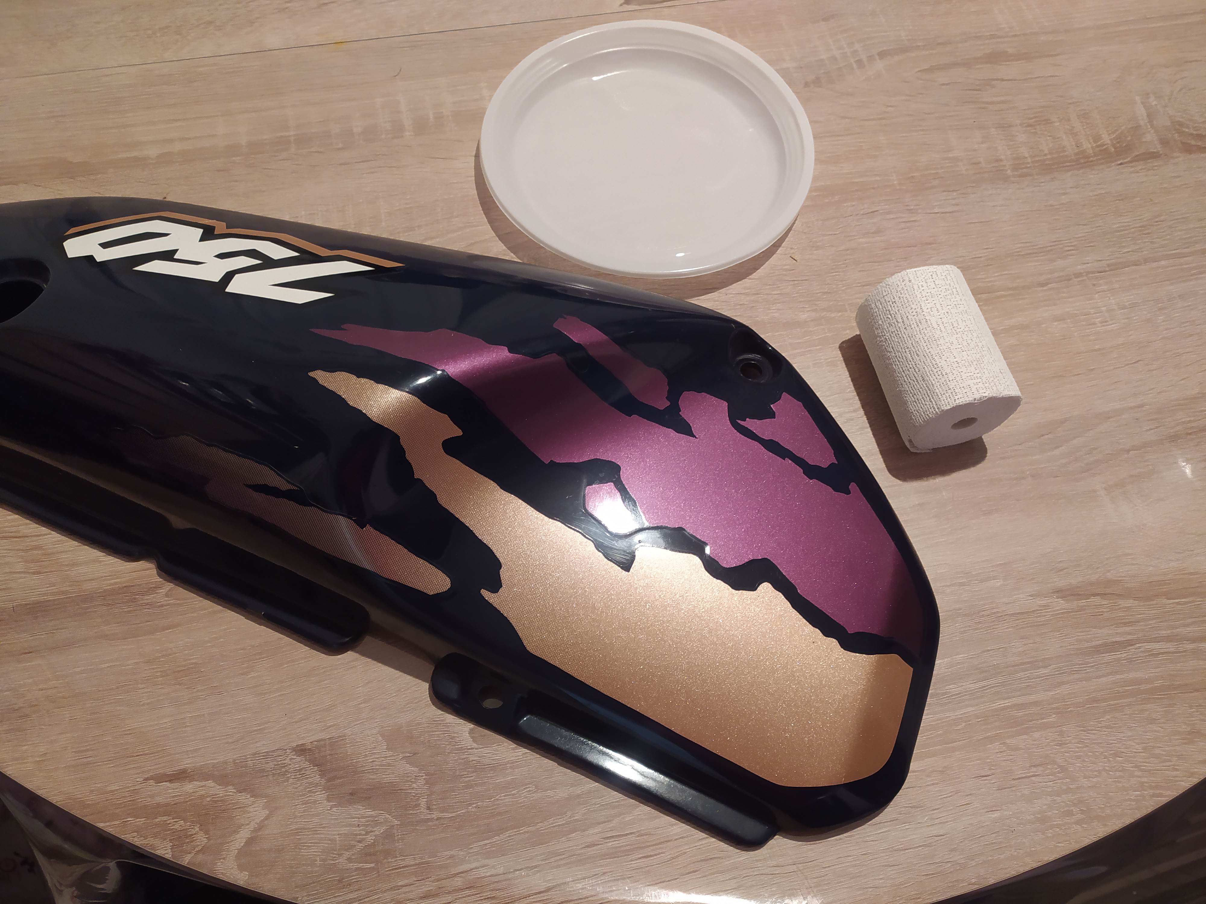 La réparation du carénage arrière droit s’est faite en moulant la partie manquante sur le carénage opposé :