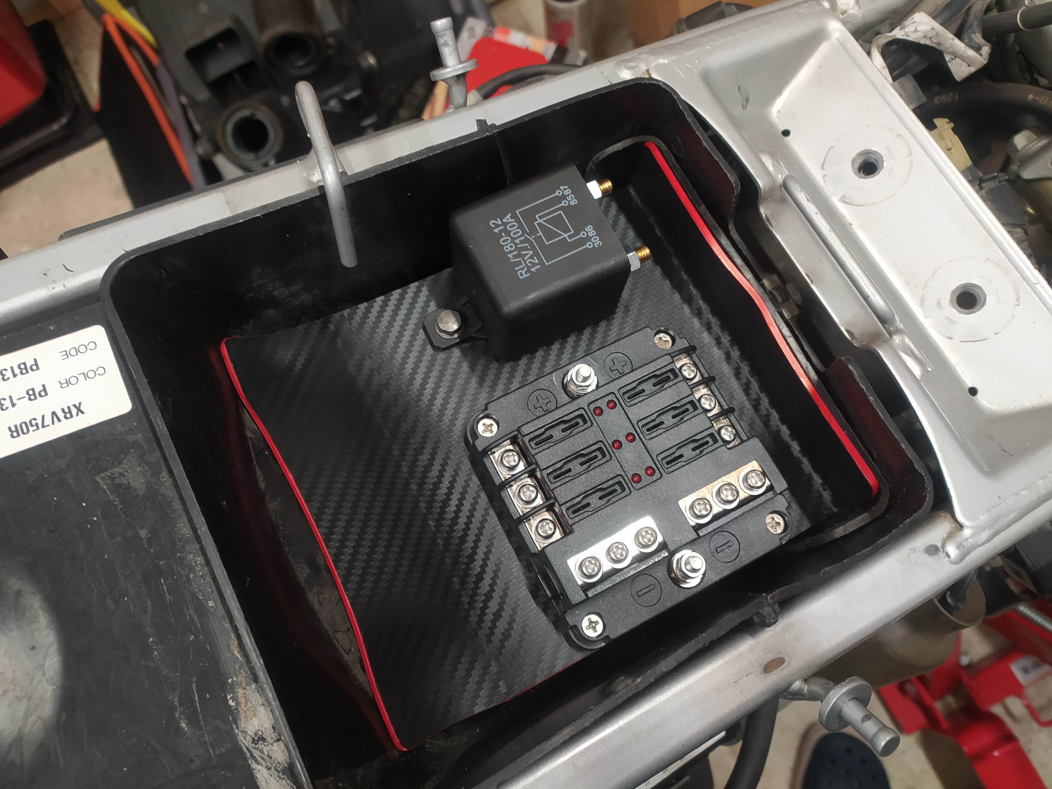 Confection d'une vrai plaque en faux carbone (c'est juste pour l'esthétique). Boitier et relais: Confection des différents câbles: