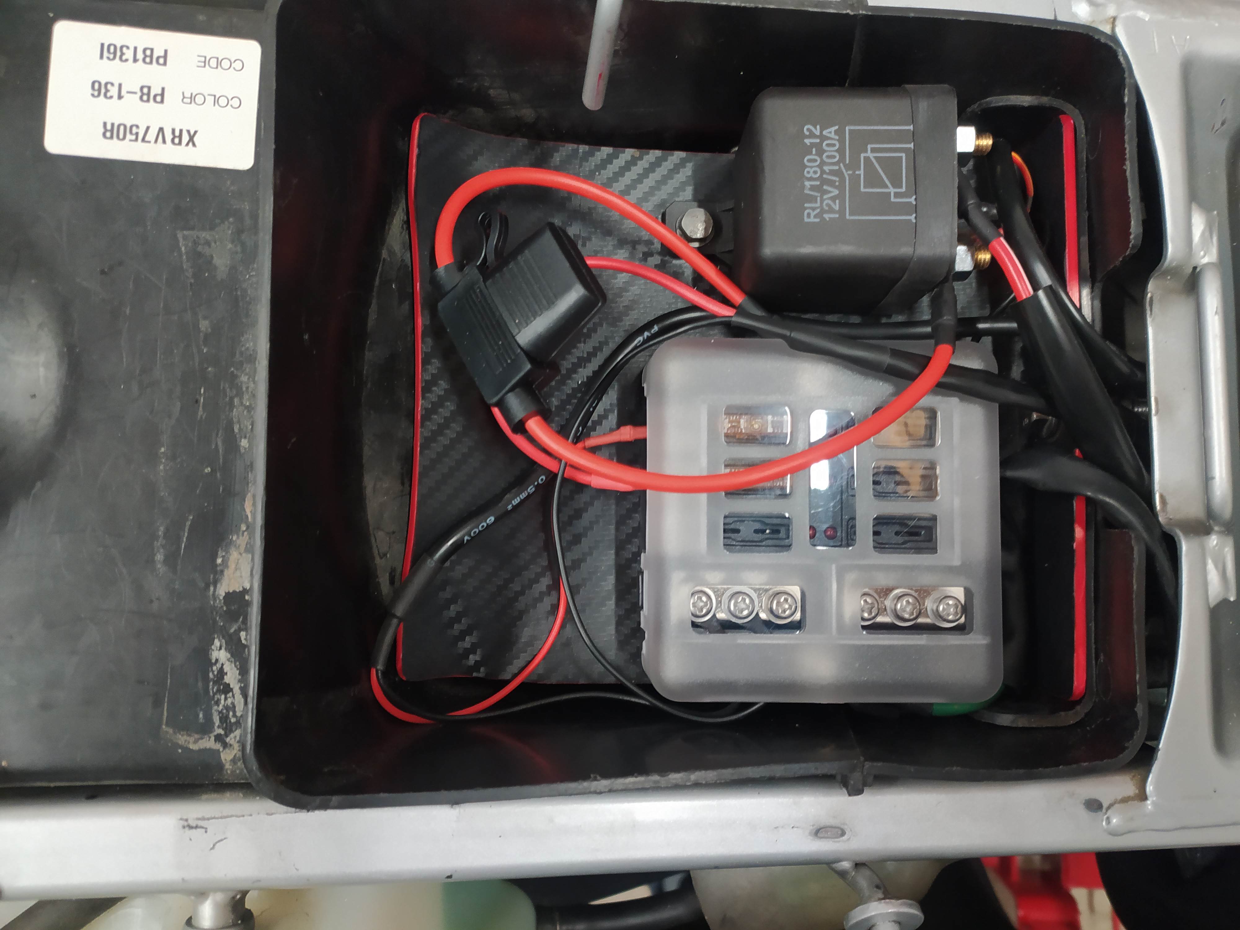 Ne voulant pas toucher au faisceau principal, j’ai mis en place un boitier avec relais de puissance, commandés par le « + après contact ».