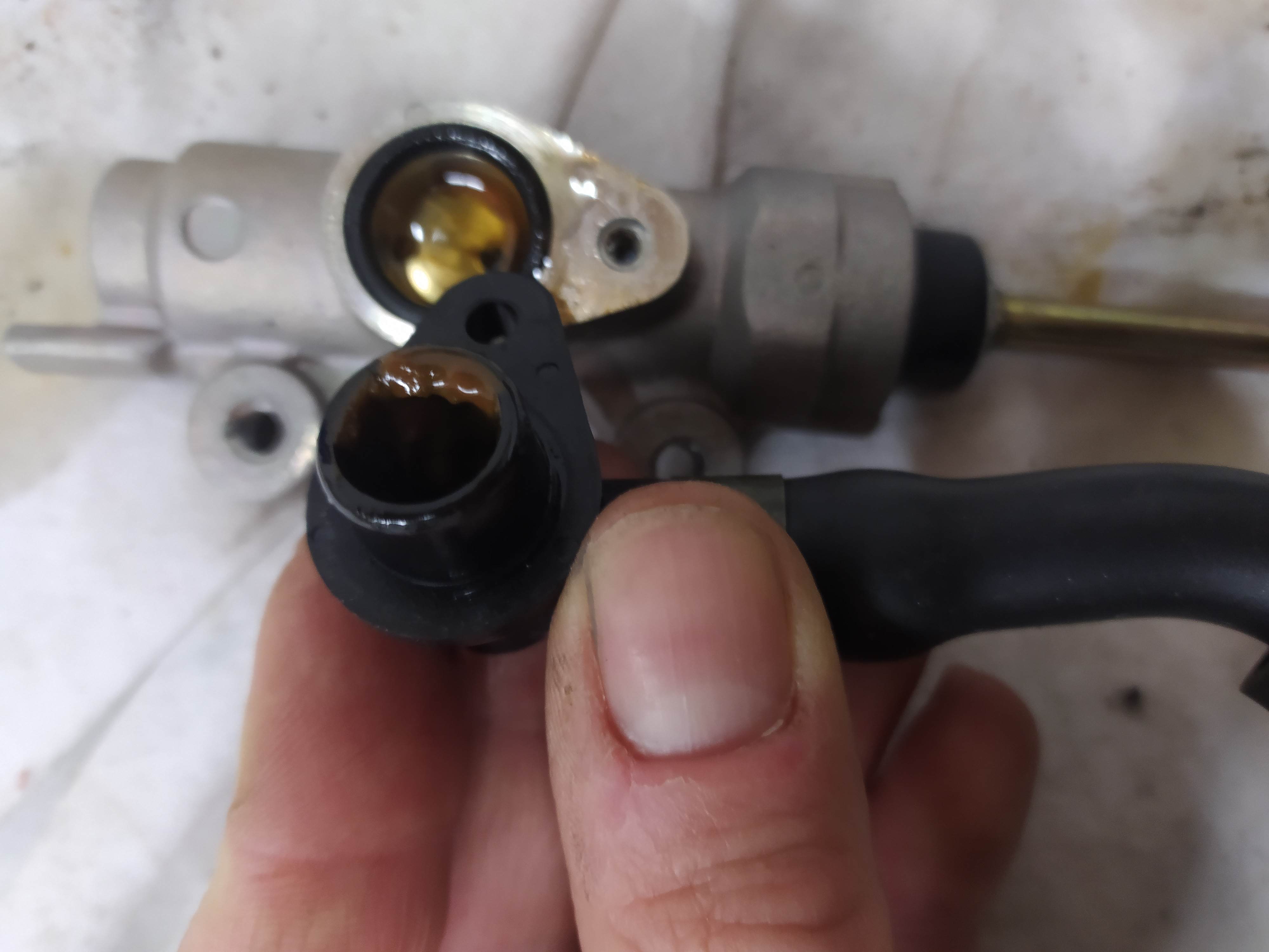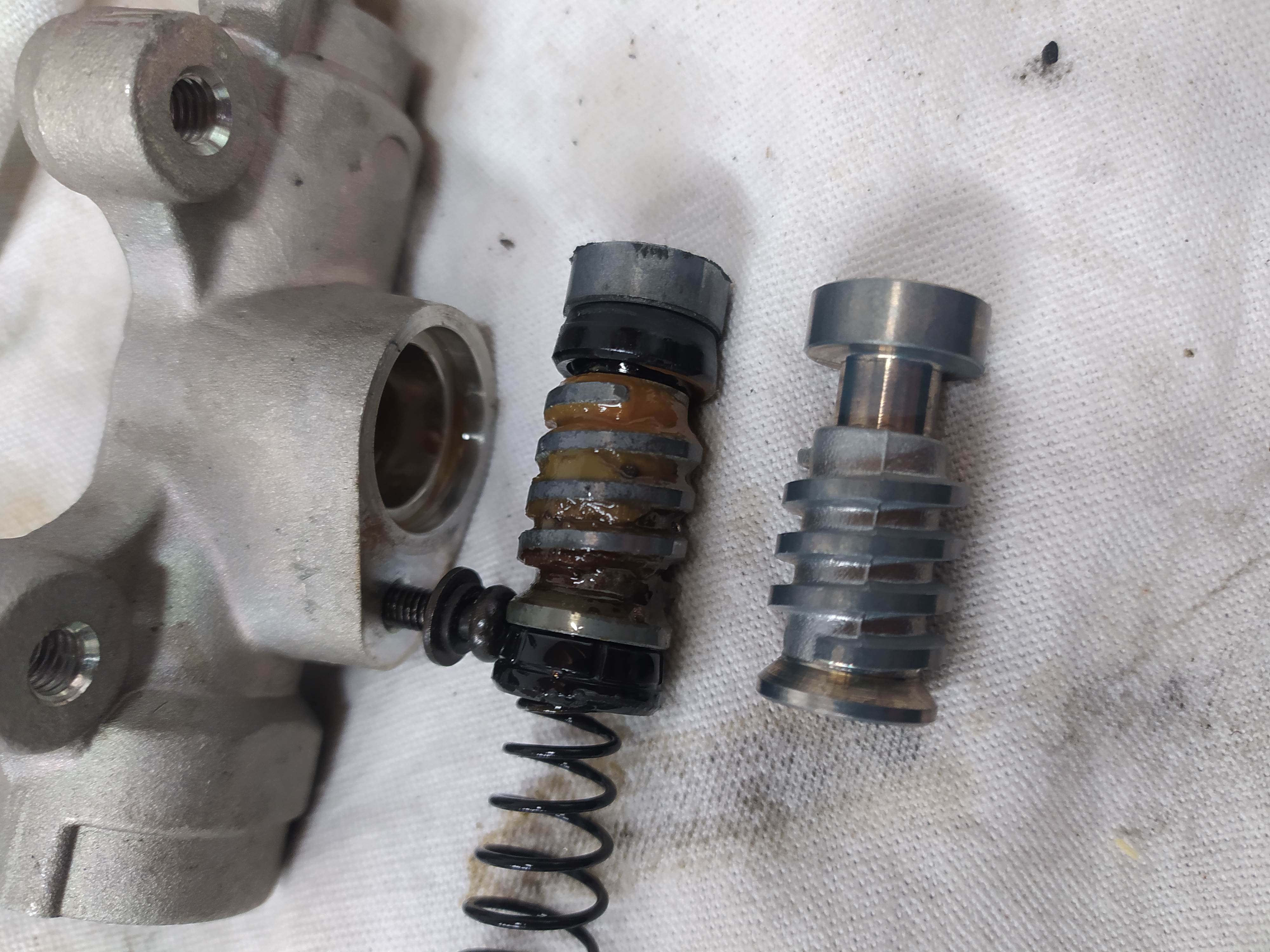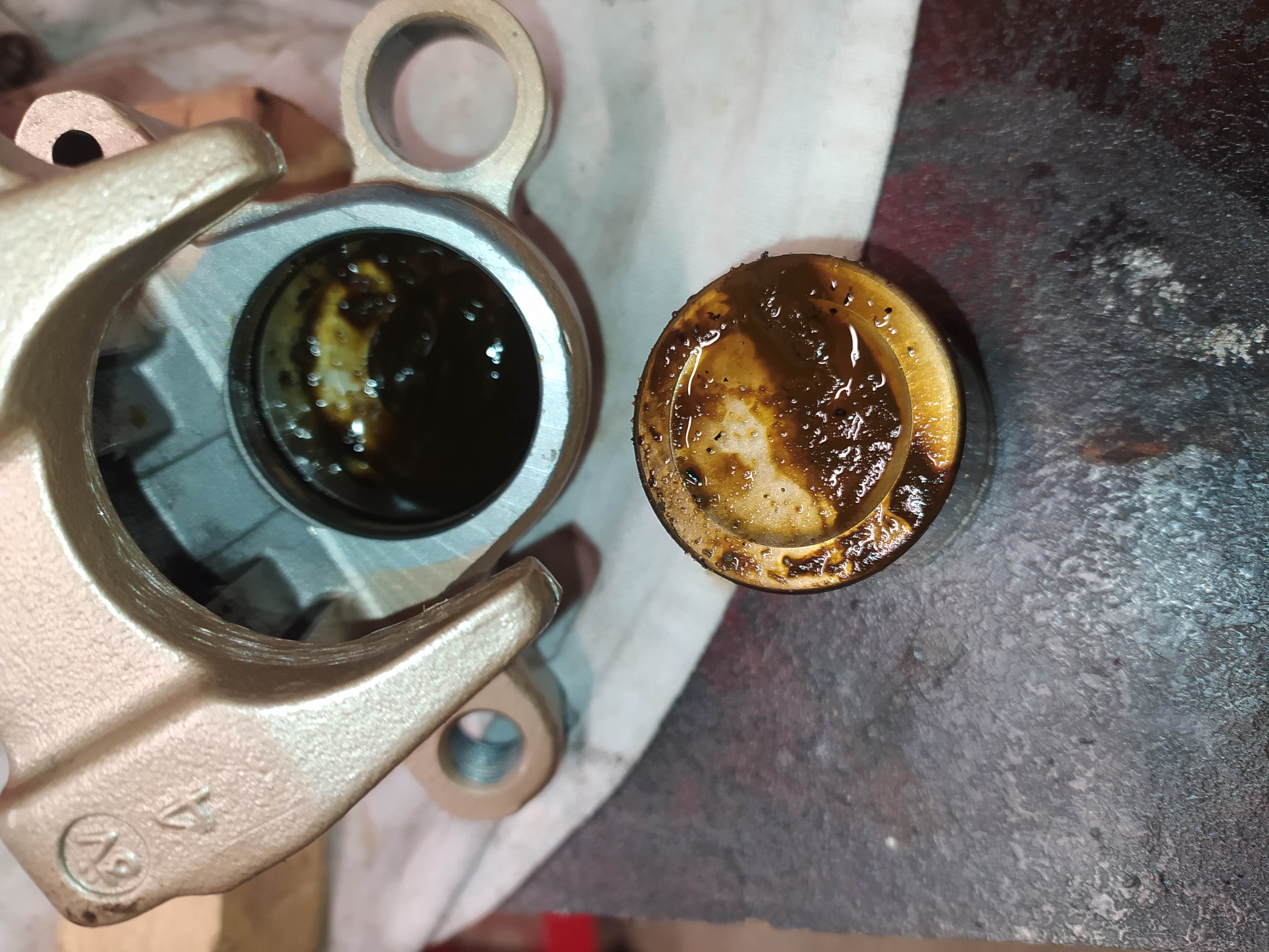 Avant de monter mes belles tuyauterie, j'ai fais un p'tit check du maître cylindre arrière ainsi que de l'étrier... Je crois que j'ai bien fait...