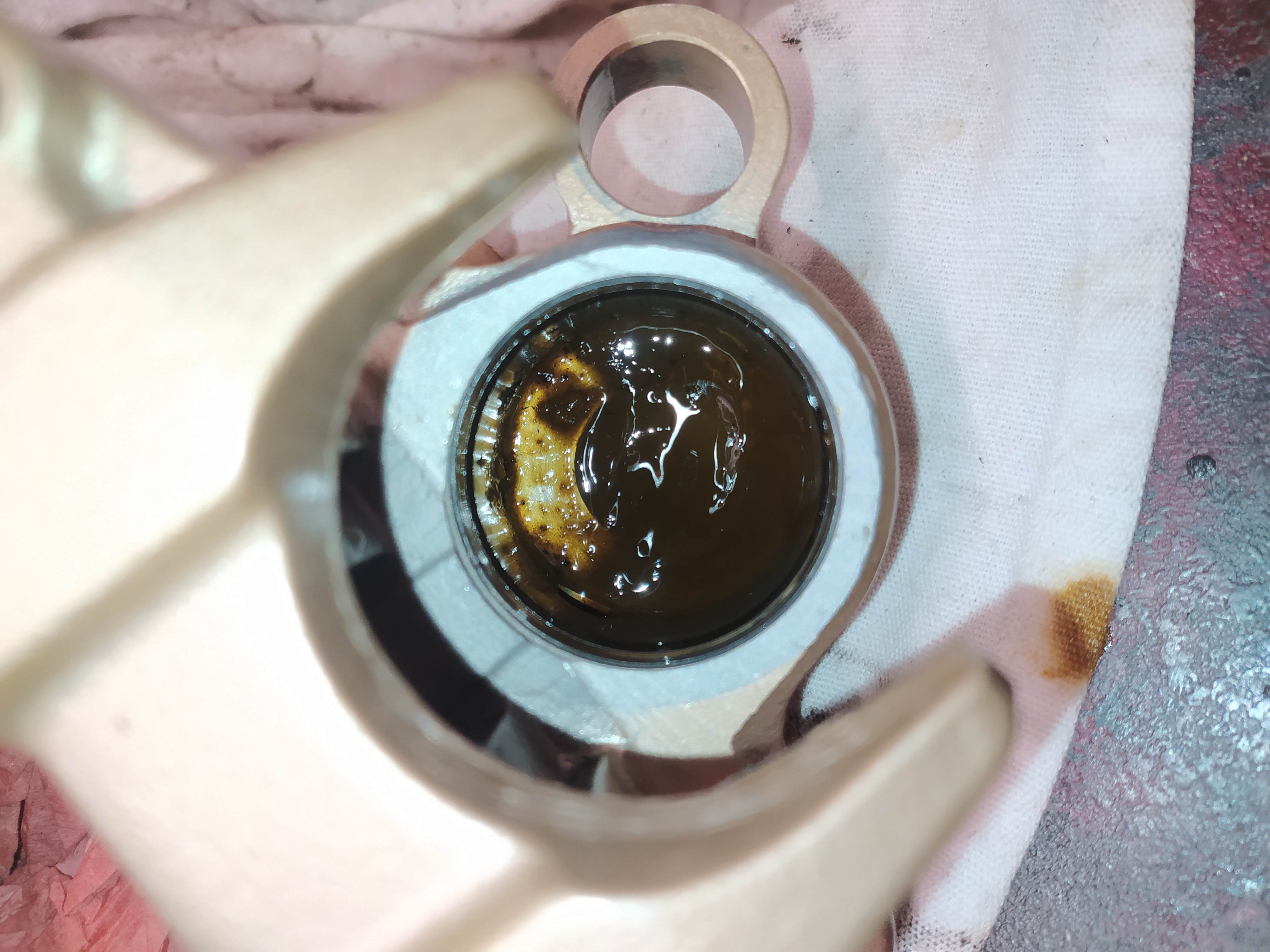 L'huile était noire et il y avait de la boue au font de la fourche.