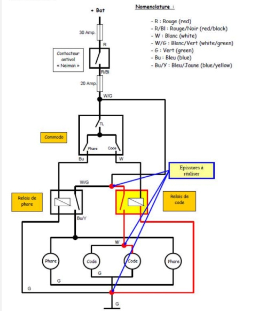 J'ai également modifié le circuit d'éclairage pour avoir les veilleuses et les codes sur les 2 phares (comme sur les rd07a)