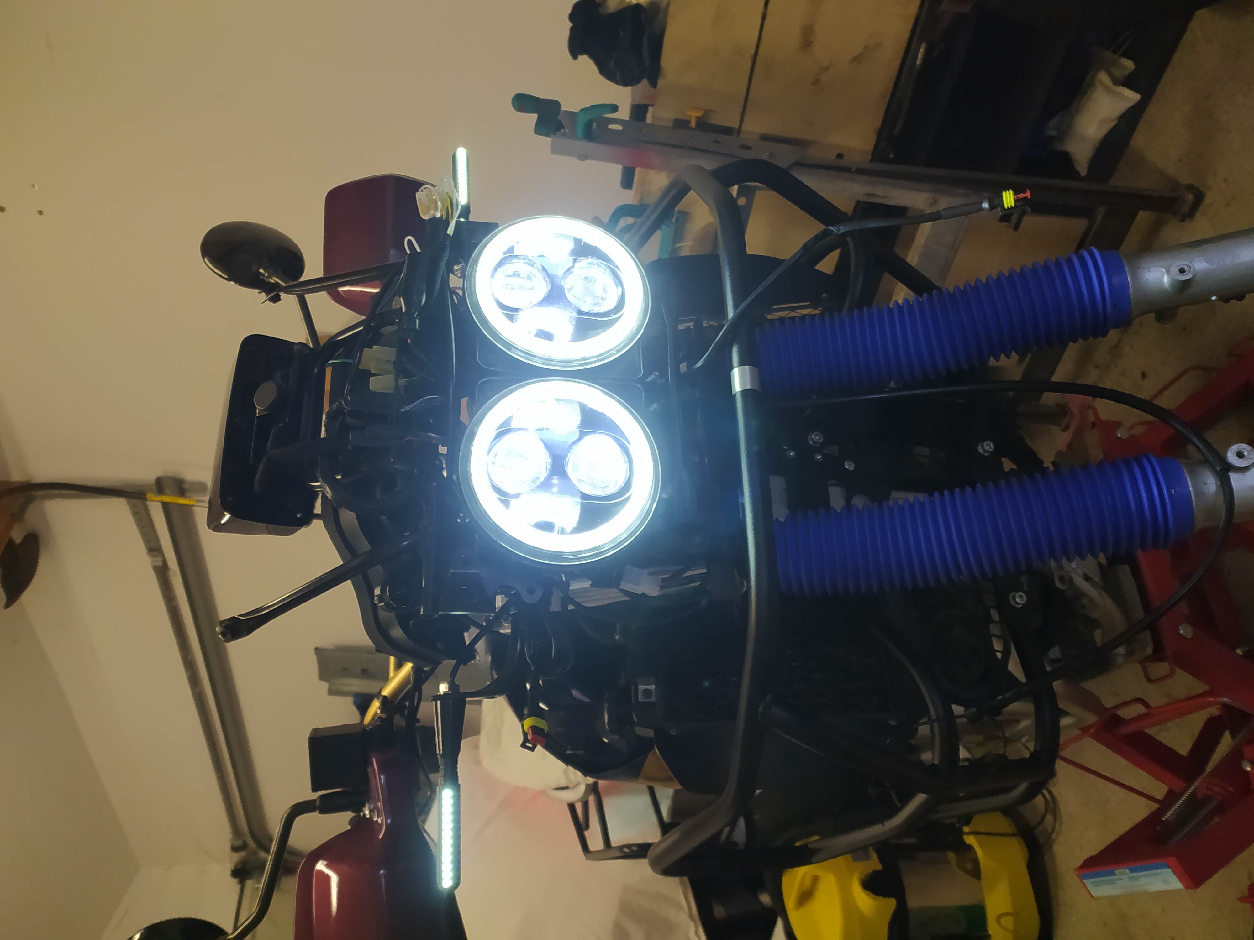 Et voilà en une belle après-midi enneigé, j'ai installé mes nouveaux phares led (que les puristes se calment, je n'ai pas sacrifié mes phares d'origine pour un retour en arrière possible