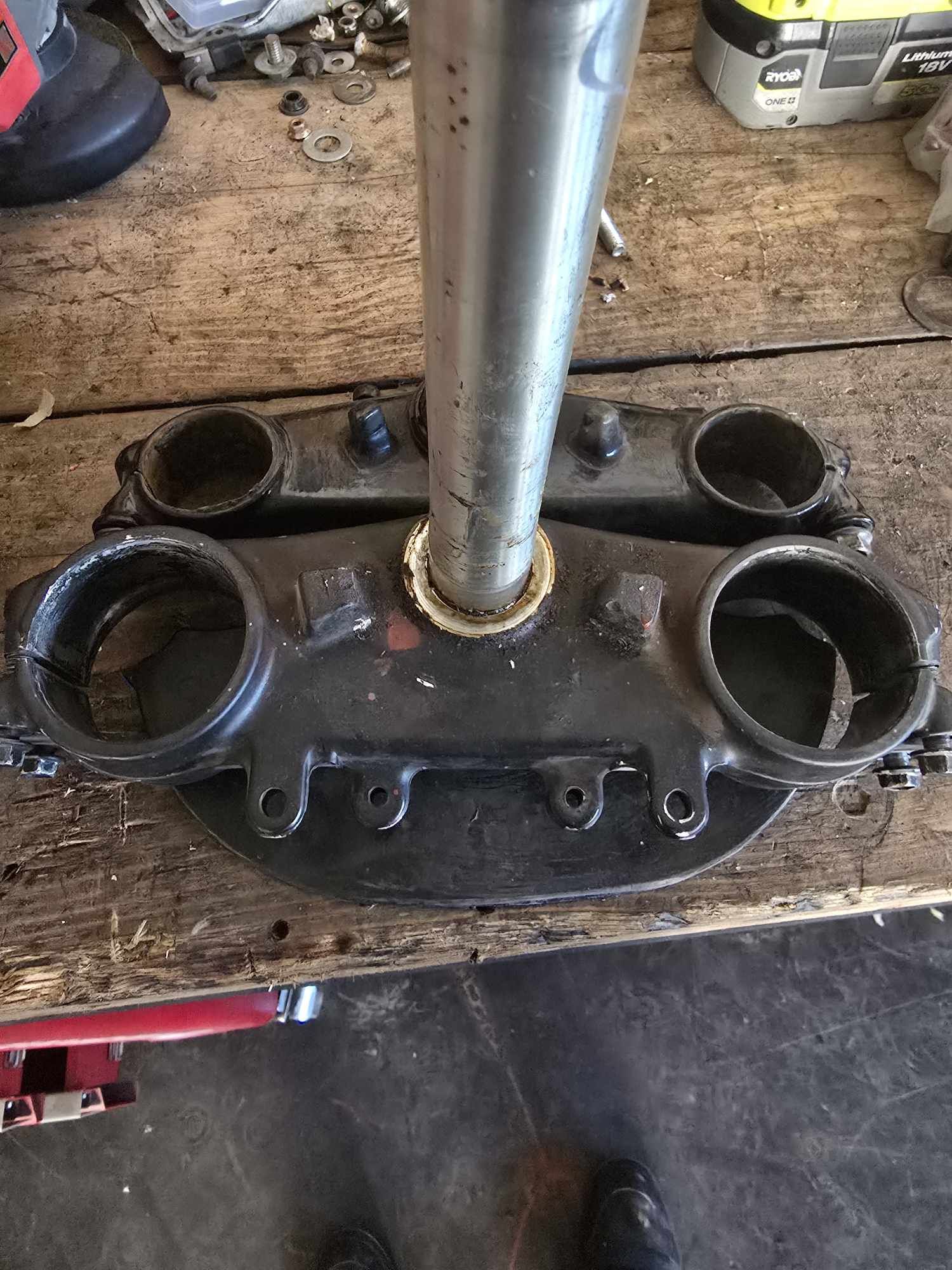 Ce matin réception du roulement de direction qu'il me manquait..Du coup j'ai enfourché (sans mauvais jeux de mots :p ) la vieille et direction l'atelier