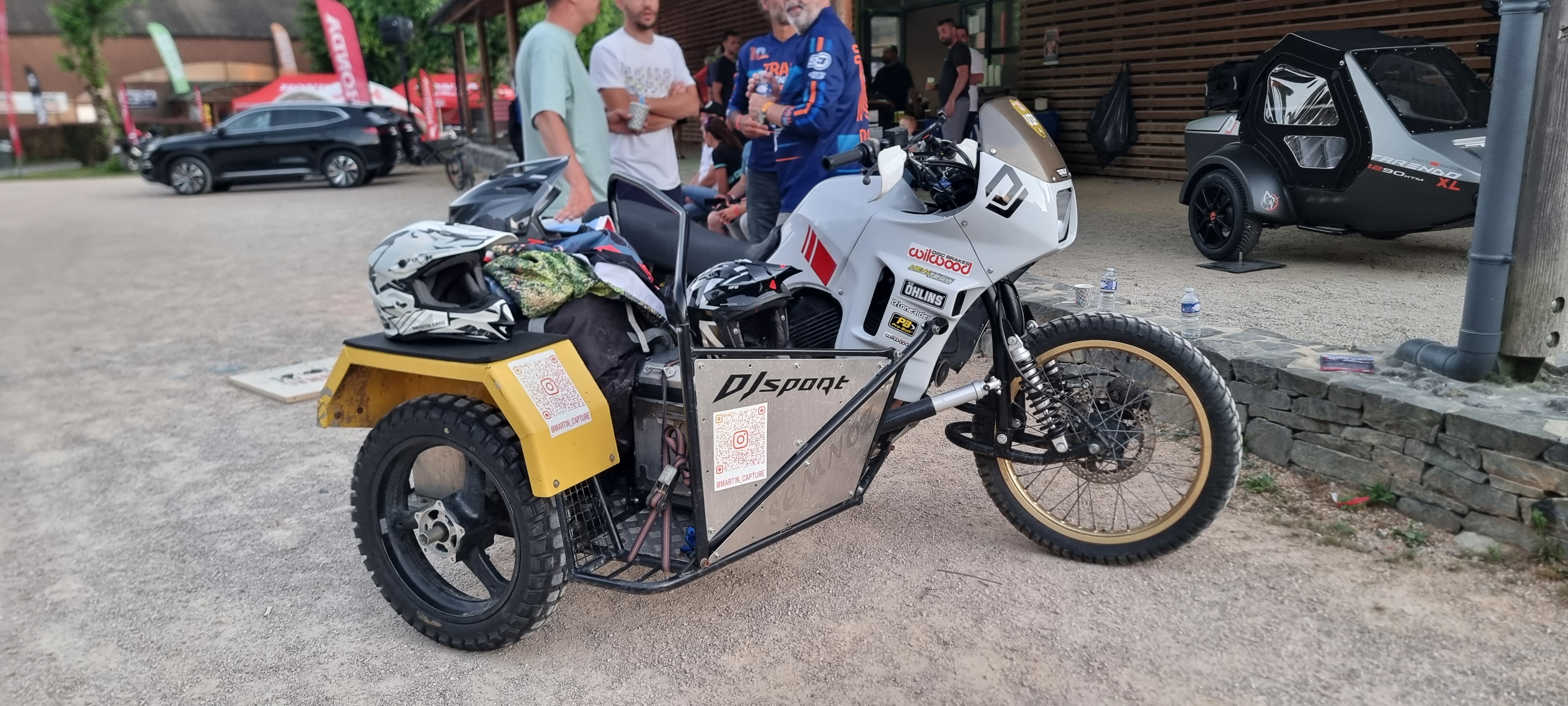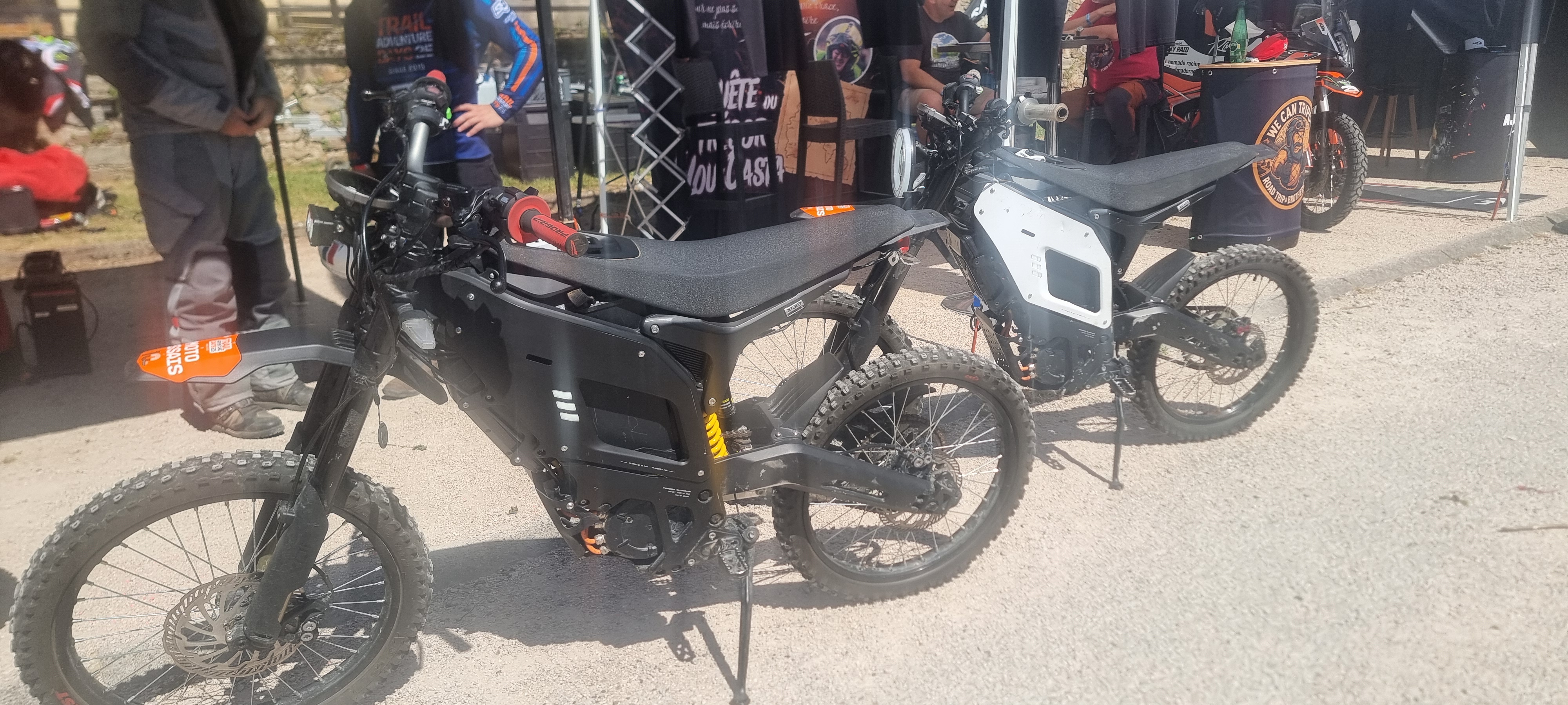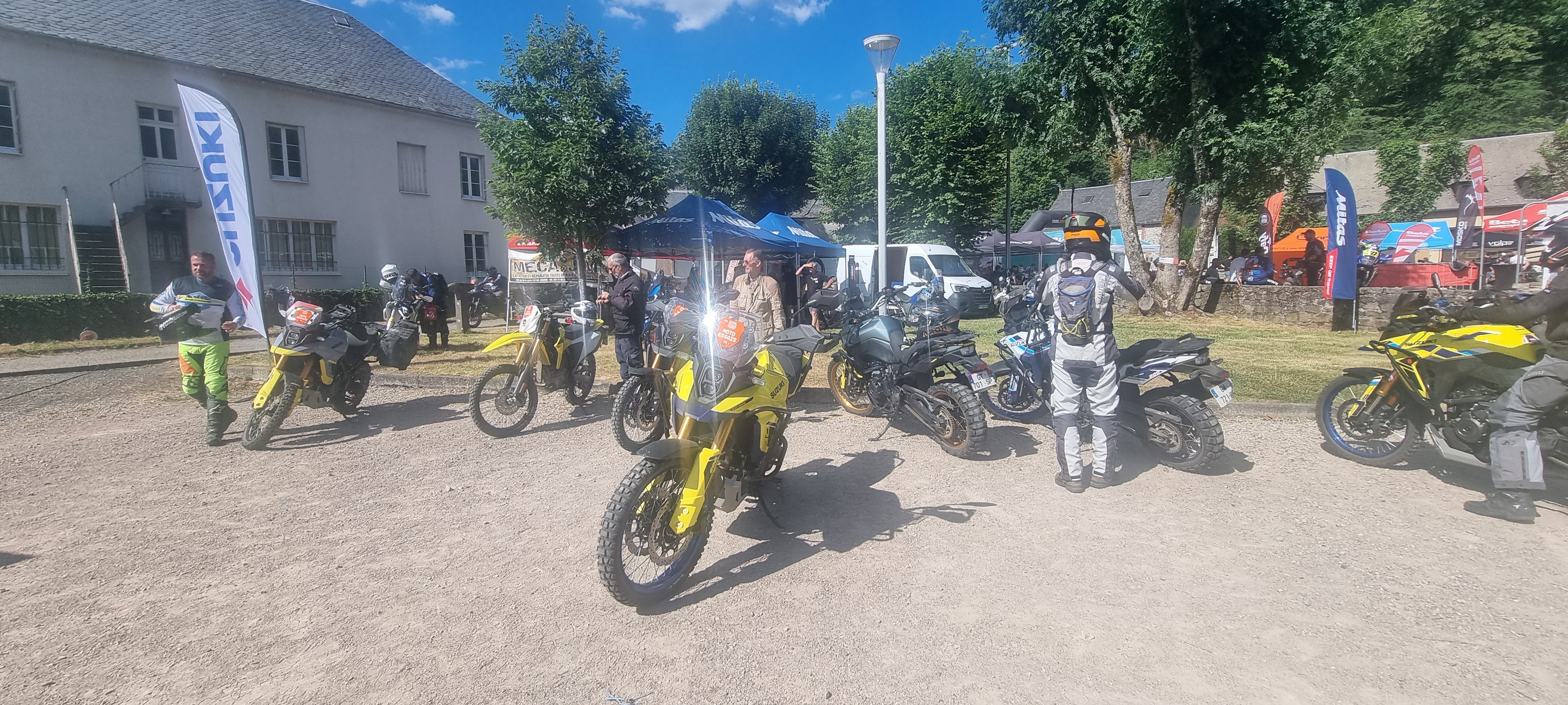 On est arrivés en début d'après-midi à Champs-sur-Tarentaine. Dépôt des bagages au camping, puis direction le village de TADays pour retrouver quelques têtes familières : \@Joe82\ et \@Destinationraid\. On a fait un petit tour des exposants et réservé des essais motos. Pour ma part, j'ai opté pour un essai en tout-terrain avec la Suzuki 800DE, ainsi qu'un petit essai d’une NIU électrique. Un vrai jouet, léger et super fun à conduire !