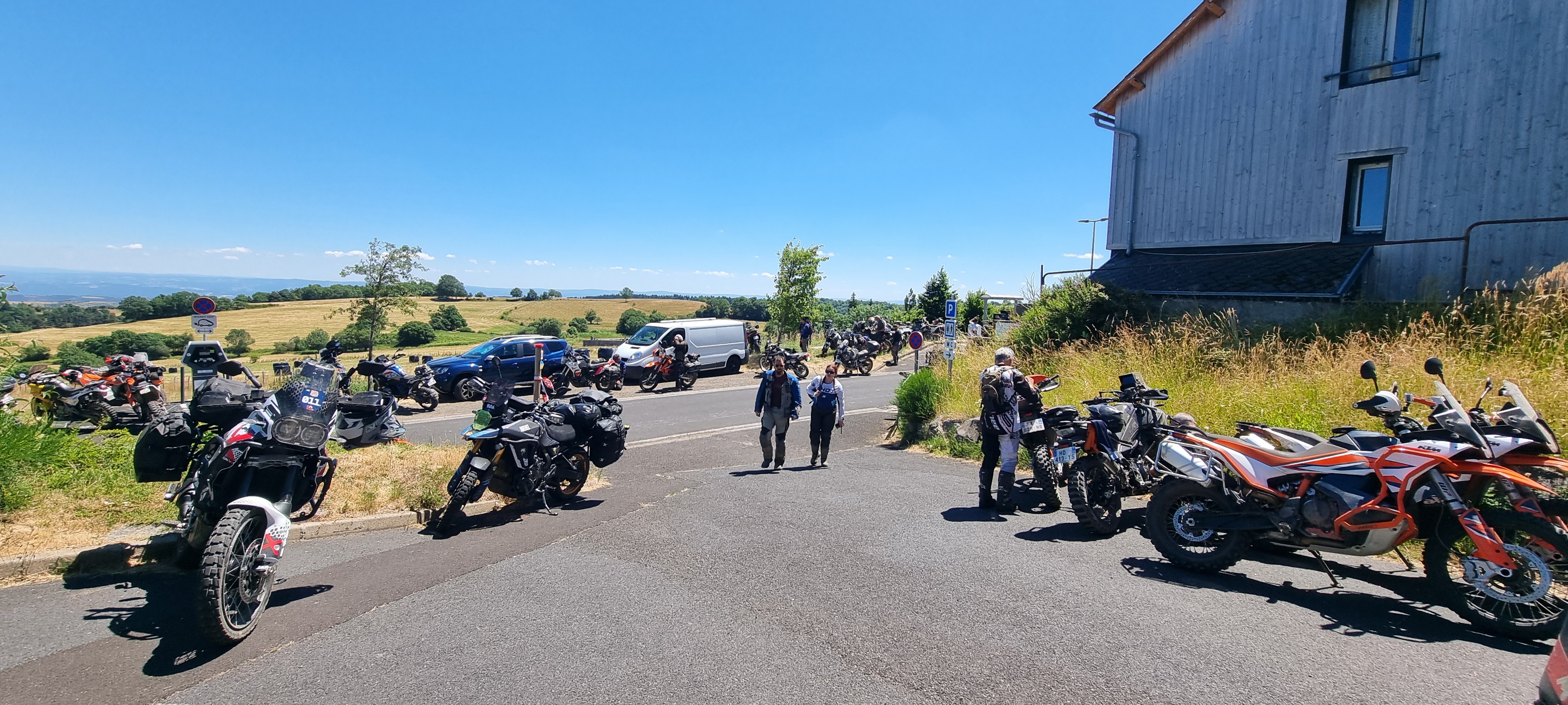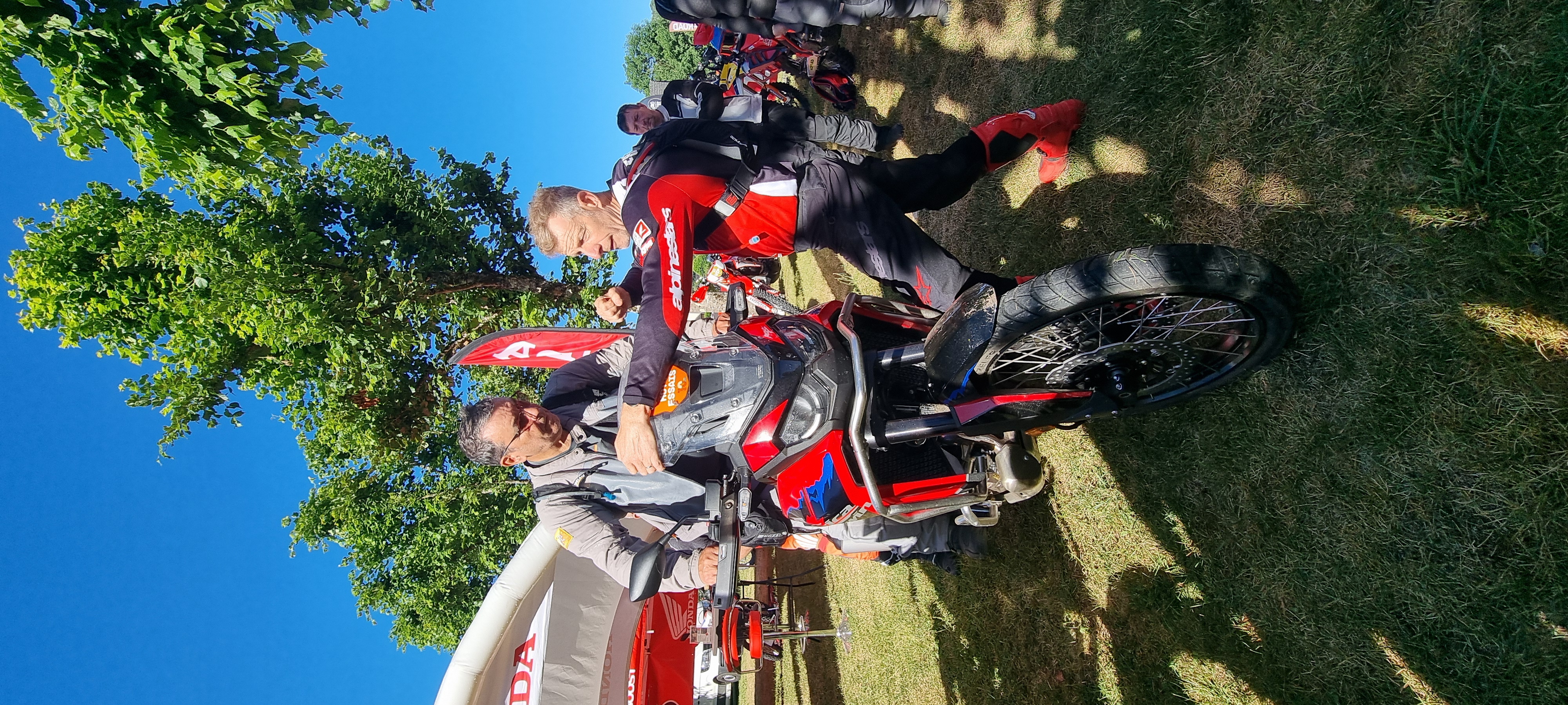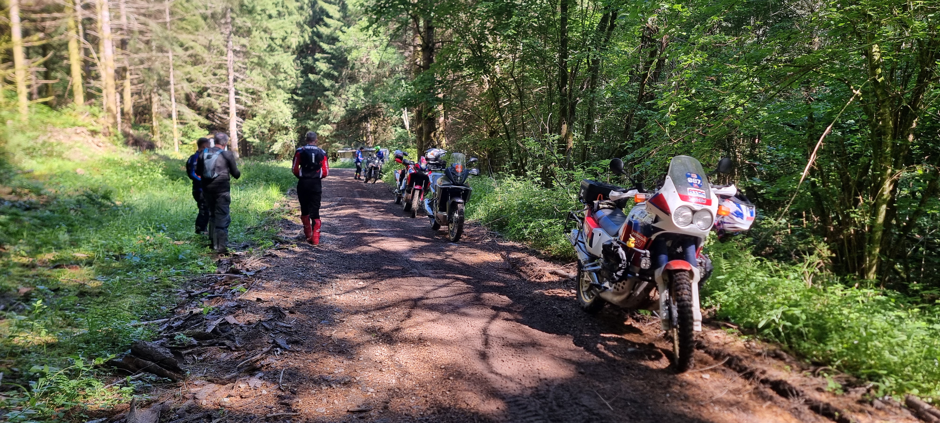 Samedi matin, on avait réservé un roulage avec David Frétignier. Pour ceux qui le souhaitaient, il y avait la possibilité de prendre une AT 1100, une Transalp 750, une CRF 300, ou de rouler avec sa propre moto – et vous vous en doutez, on a choisi cette dernière option !