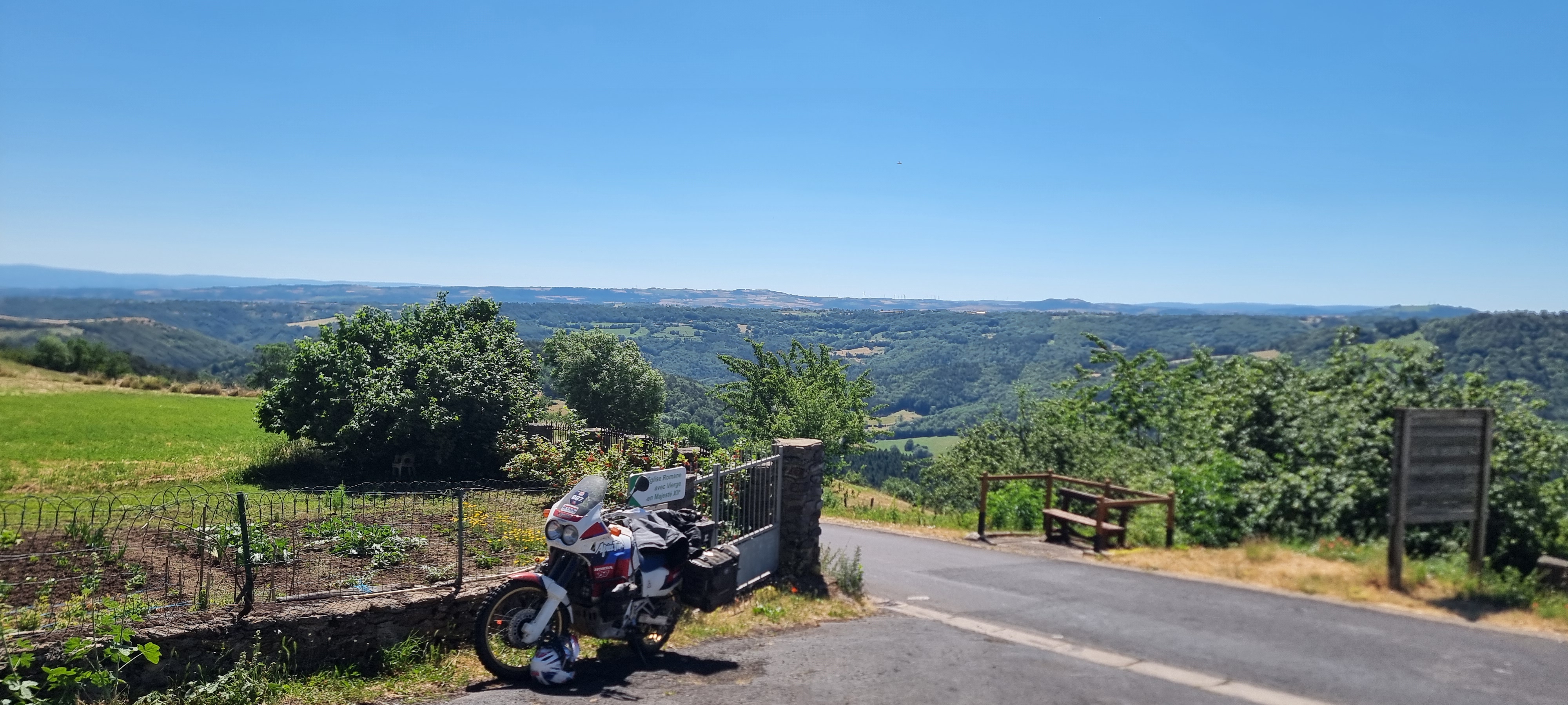Dimanche, on a roulé sur une trace bleue, moitié route, moitié tout-terrain facile, car nos motos étaient déja rechargées des bagages pour éviter de repasser par le camping en fin de journée ! Un bon mix de paysages somptueux et de pistes caillouteuses et poussiéreuses, idéal pour une dernière journée.