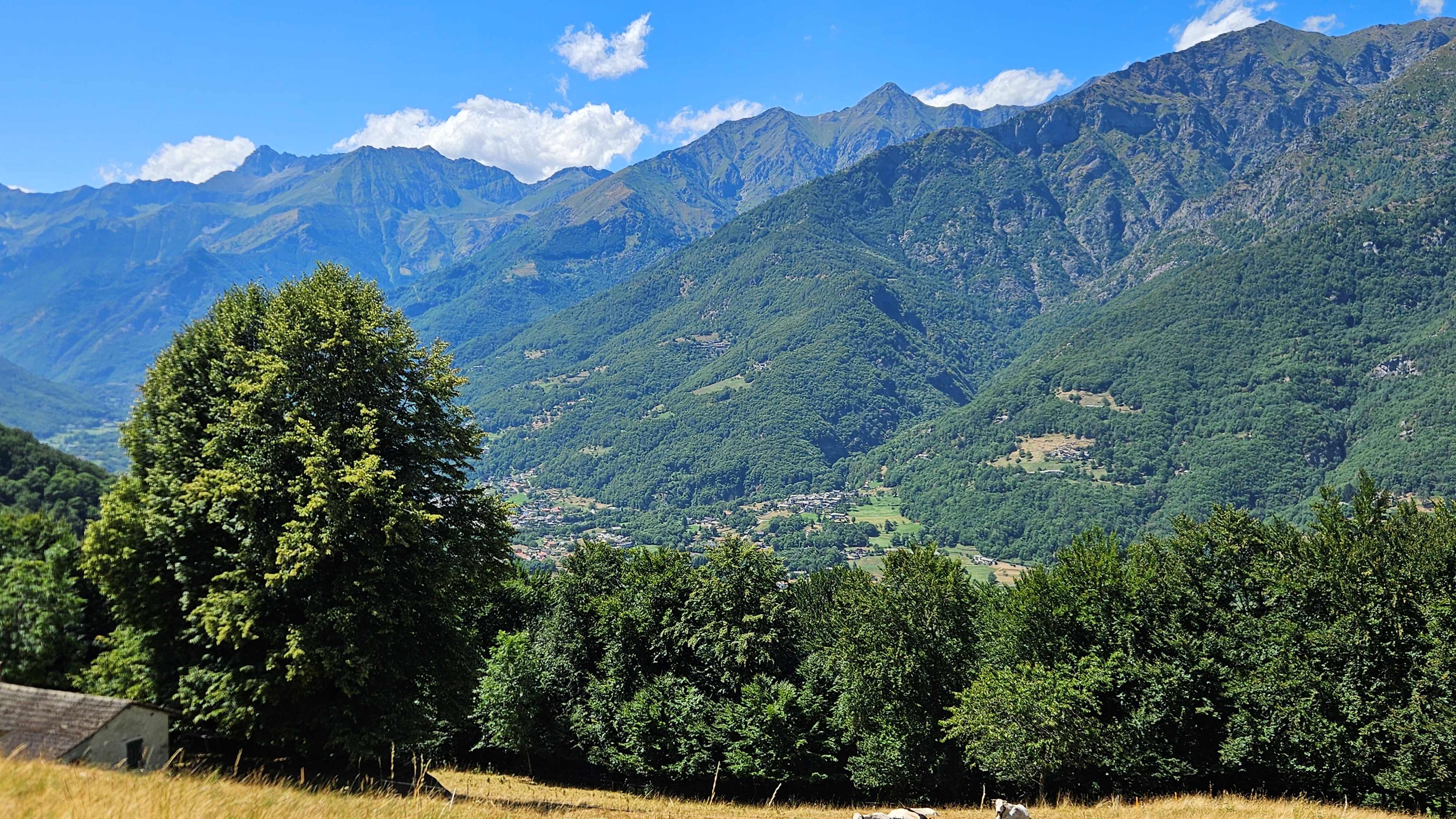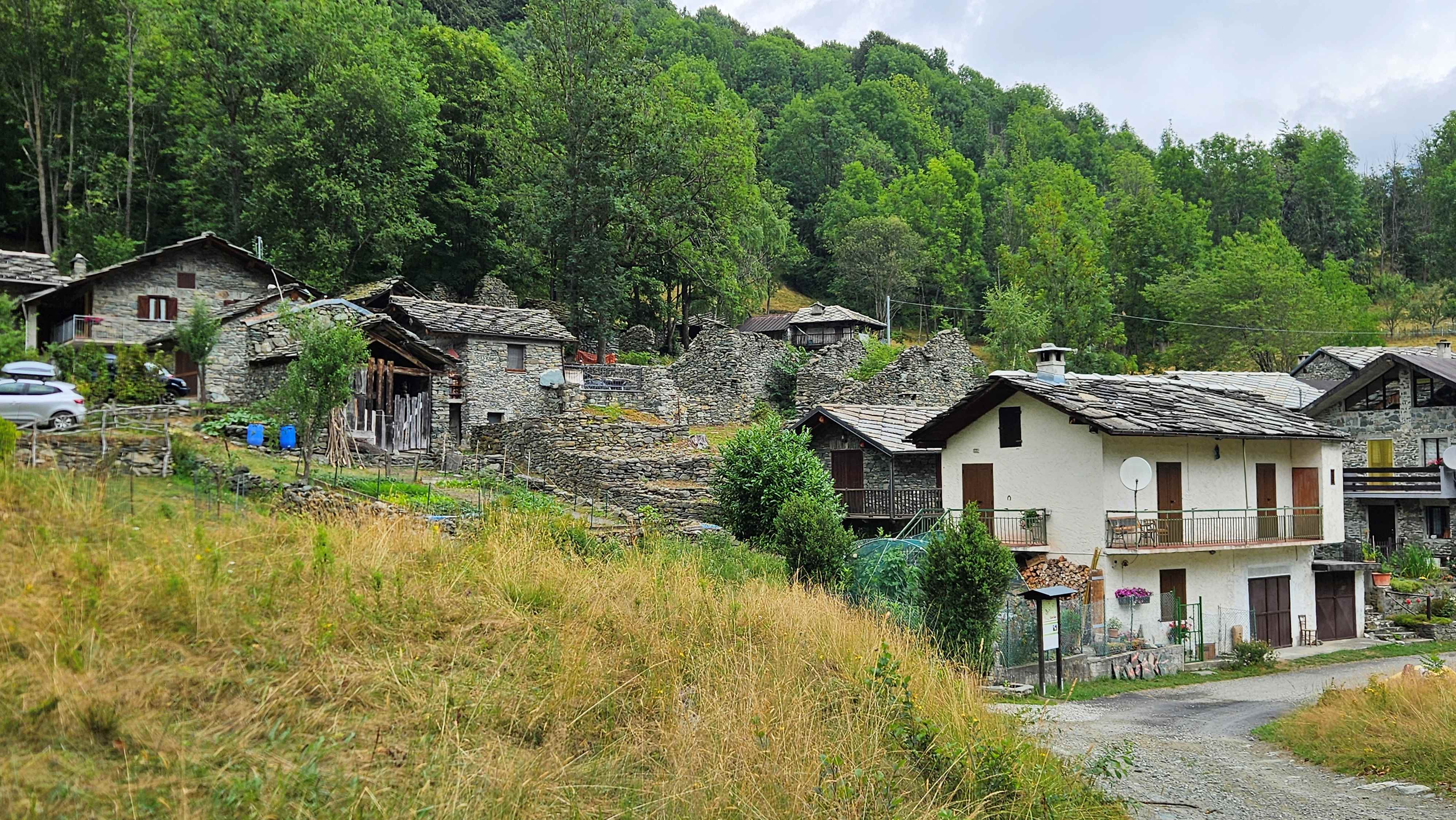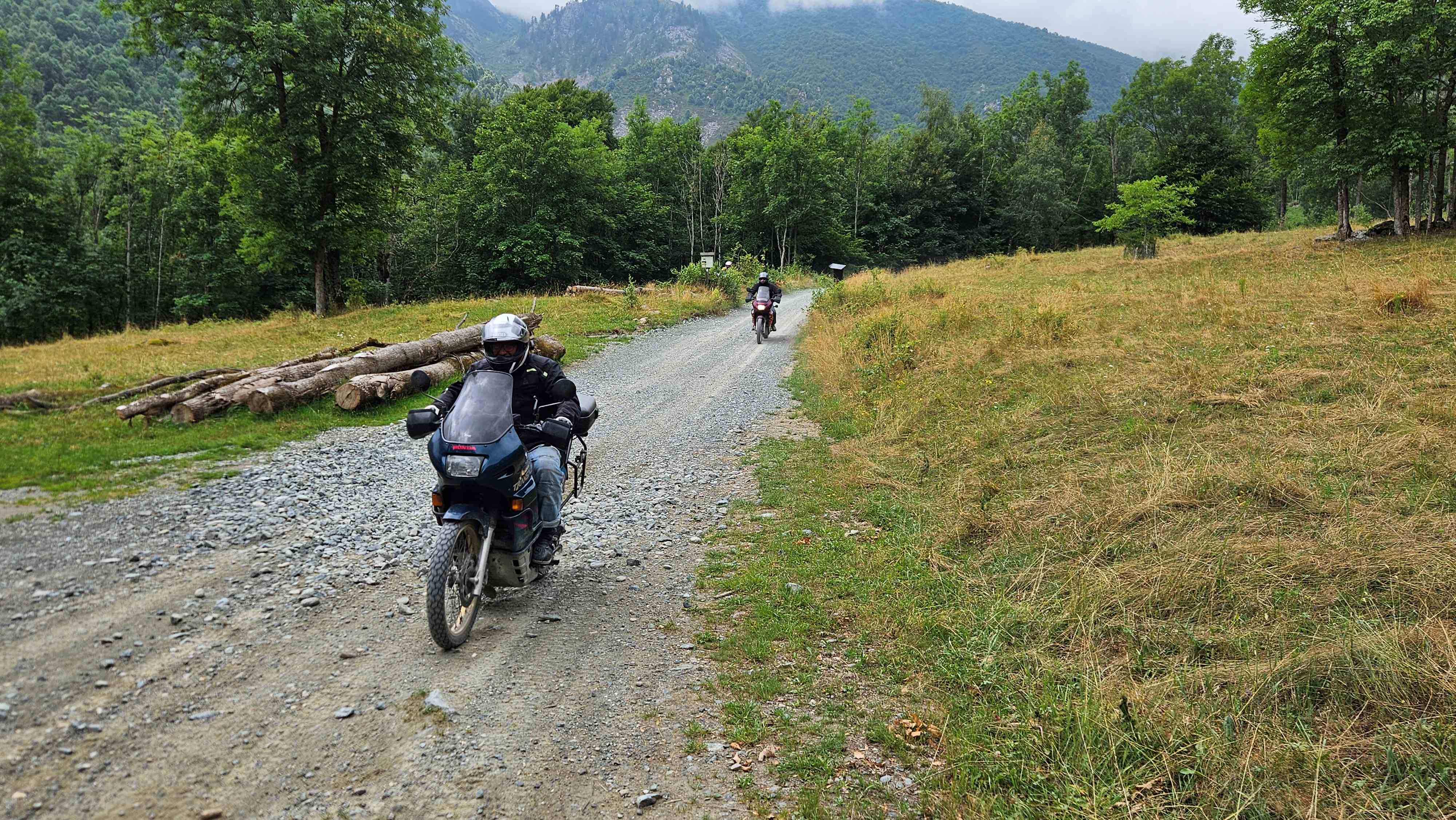 Je pars en milieu de matinée direction le Val D’Aoste et ensuite camping à Valchiusella, proche d’Ivrea au nord de Turin, pas loin de la piste du TET Italie que je devais prendre le lendemain. Devais car la mamie a commencé à chauffer en fin de journée, j’avais de la peine à la rallumer et elle ne voulait pas descendre dans les tours, elle restait bloquée au-dessus de 2'000 t/m. Je suis resté en rade au bord de la route et deux frères italiens qui habitaient à côté m’ont dépanné. On amène la moto chez eux, ça vient de l’essence et les carbus, et du vase d’expansion qu’ils me disent. En même temps on remarque que la durite qui arrive dans ce dernier n’était plus correctement insérée… On purge l’essence, apparemment de mauvaise qualité selon eux, c’est ce qui faisait qu’elle broutait et était haute dans les tours. Nouvelle essence dans le réservoir, elle repart correctement et j’atteins enfin le camping vers 20 heures ; monter la tente, douche, pizza et au lit.