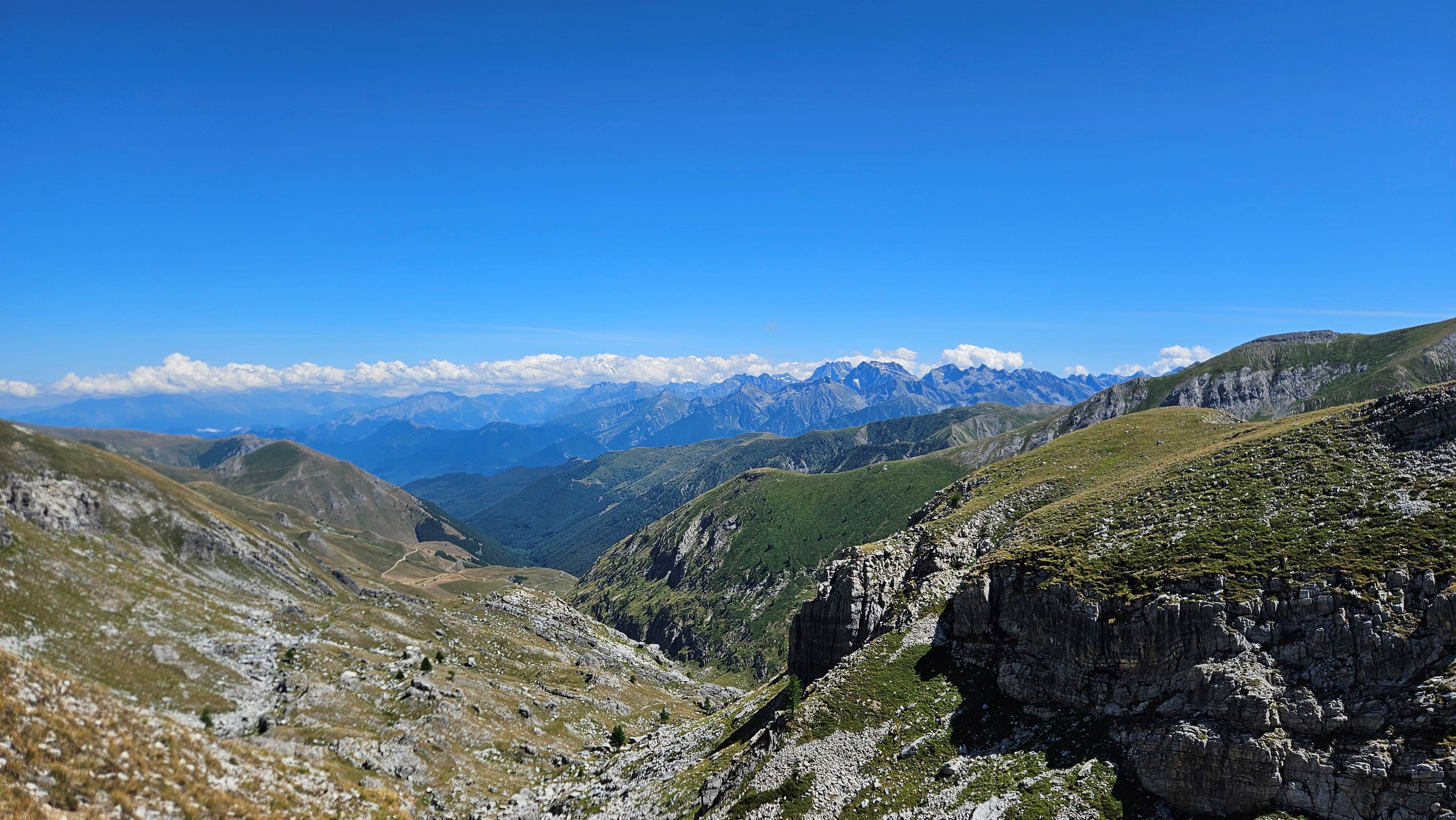 Quand on arrive vers la fin du parcours, deux choix s’offrent à nous : Descendre côté Monesi en Italie, ou prendre le Col Tanarello (Passo del Tanarello) et descendre sur Brigue et Tende côté français. Personnellement j’ai pris cette dernière route. Je n’avais pas bien lu le descriptif sur le site Via del Sale - Limone Monesi , j’aurais pu aller voir le Christ rédempteur au belvédère du Monte Saccarello, j’ai continué et pas vu l’Autre, pas encore rencontré celui-là, il m’échappe à chaque fois ! :roll: