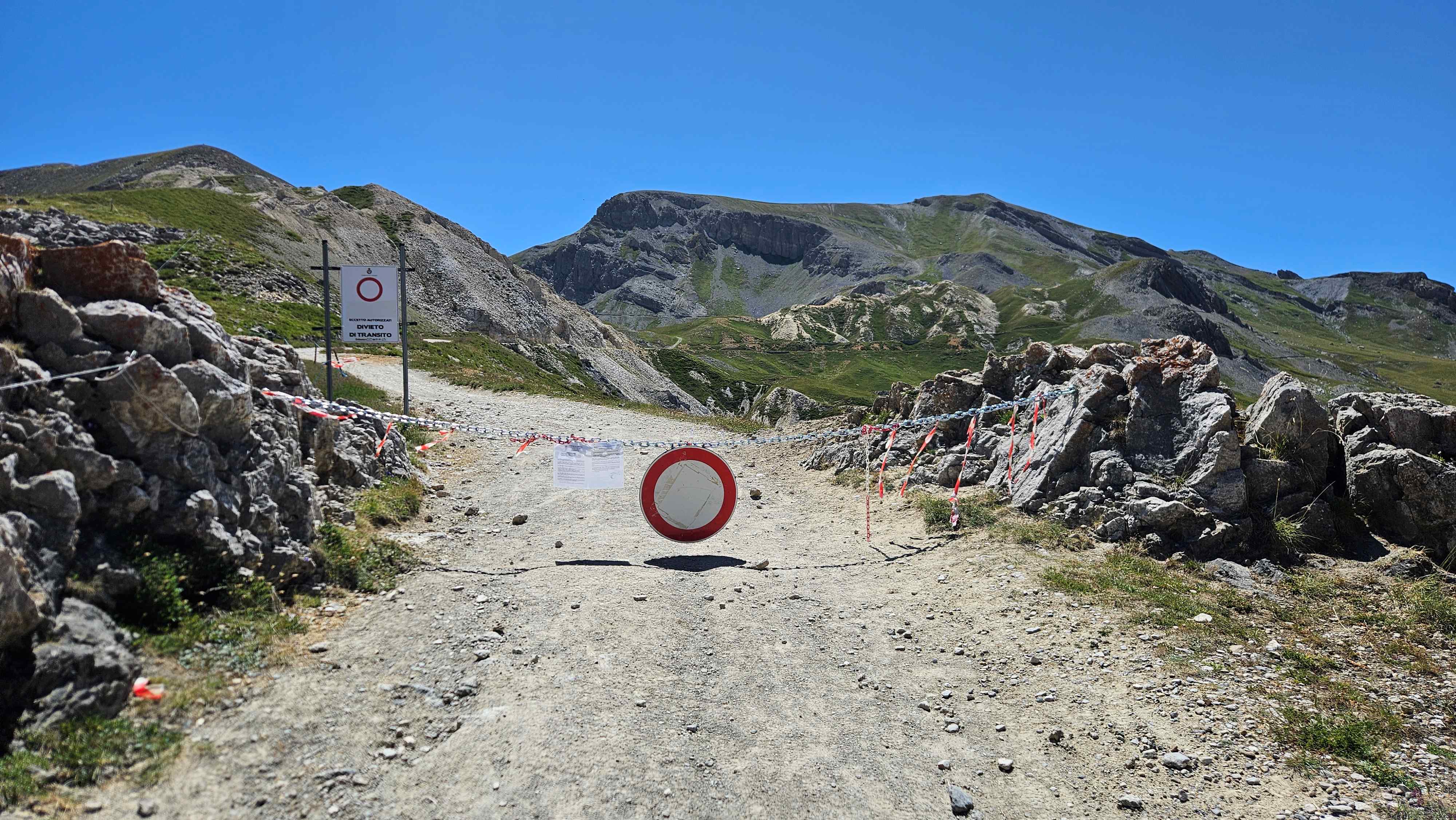 D’après ce que j’ai compris en italien, il s’agit d’un arrêté municipal qui interdit cette route aux engins motorisés. Mais on peut rejoindre la piste « normale » du TeT au nord en 30´ je pense .