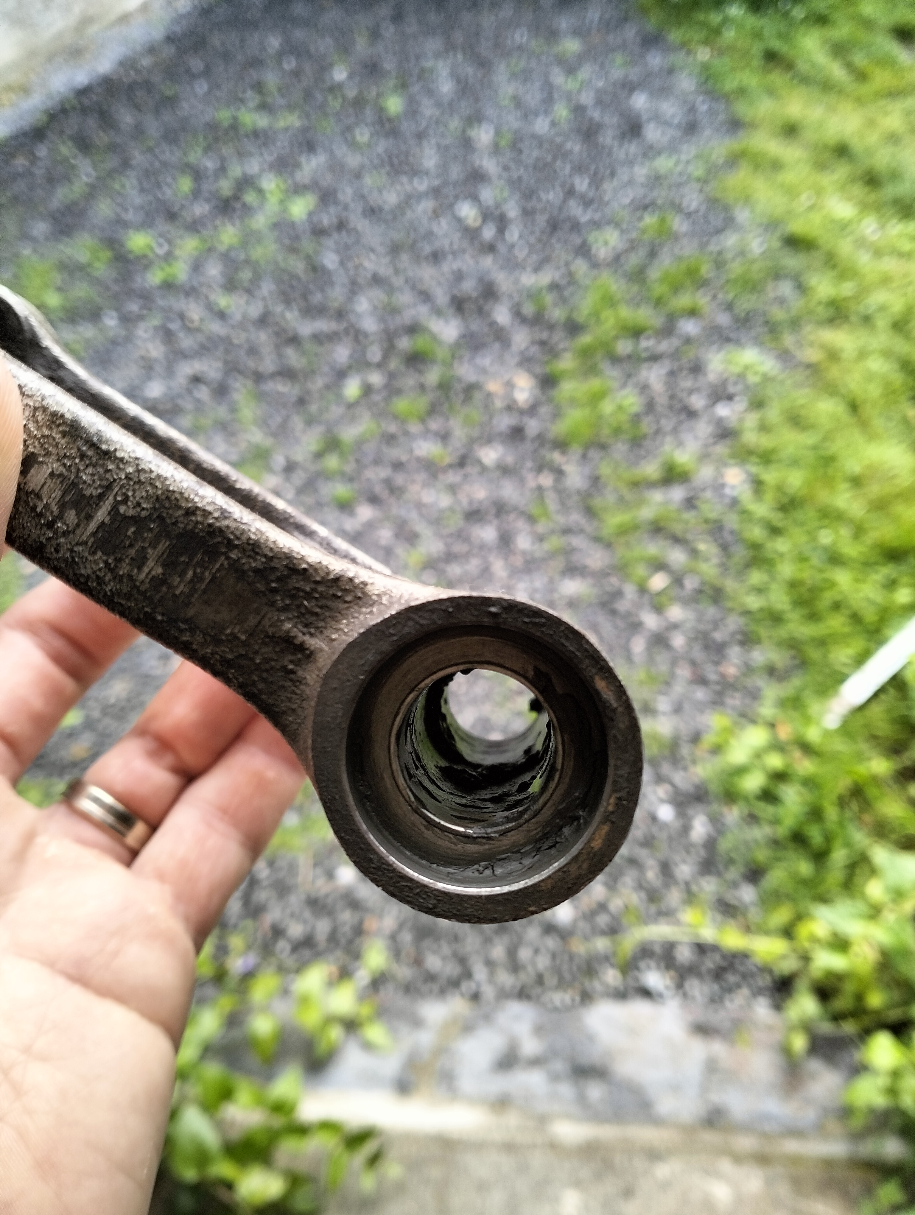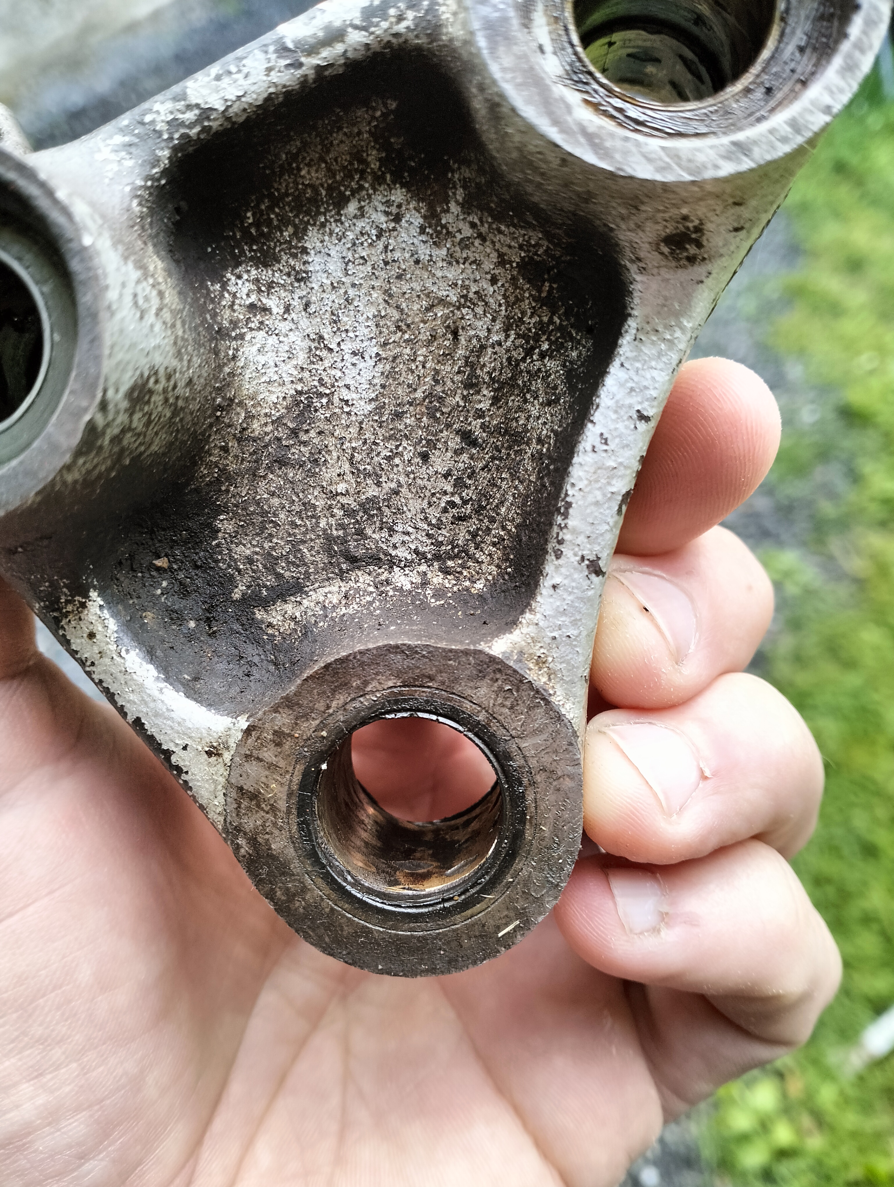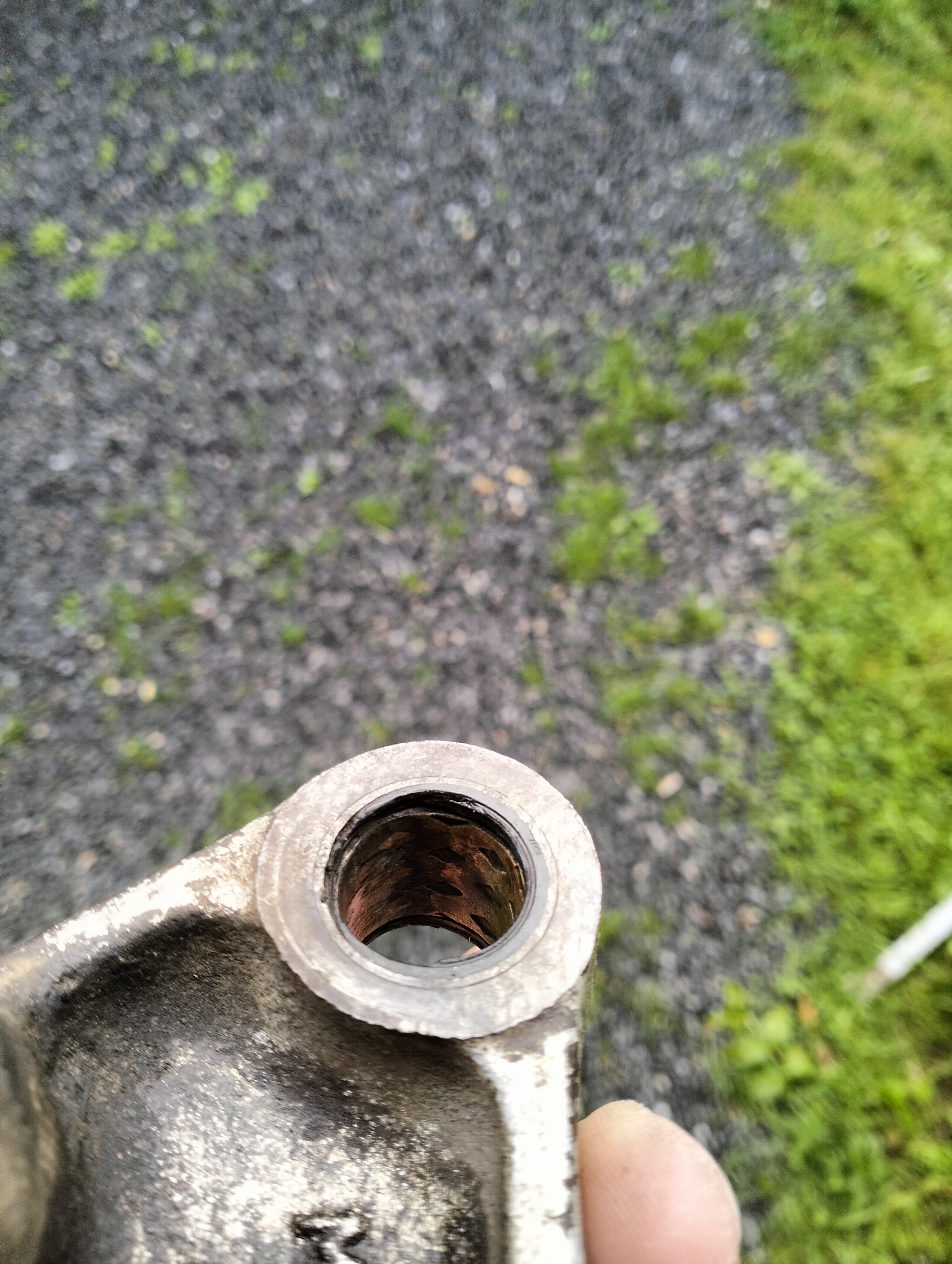 Sachant que l'intérieur des axes de la biellette et du basculeur ont aussi des traces d'usure... Si jamais la rénovation n'est pas possible, j'ai possibilité de passer sur un modèle de biellette/basculeur d'après 1990 (modèle avec roulements à aiguilles et qui est plus long que celui pour version 87/89). J'ai testé la compatibilité et c'est bon. Mais, ça abaisse énormément la moto et elle tape même en butée si je compresse l'arrière.