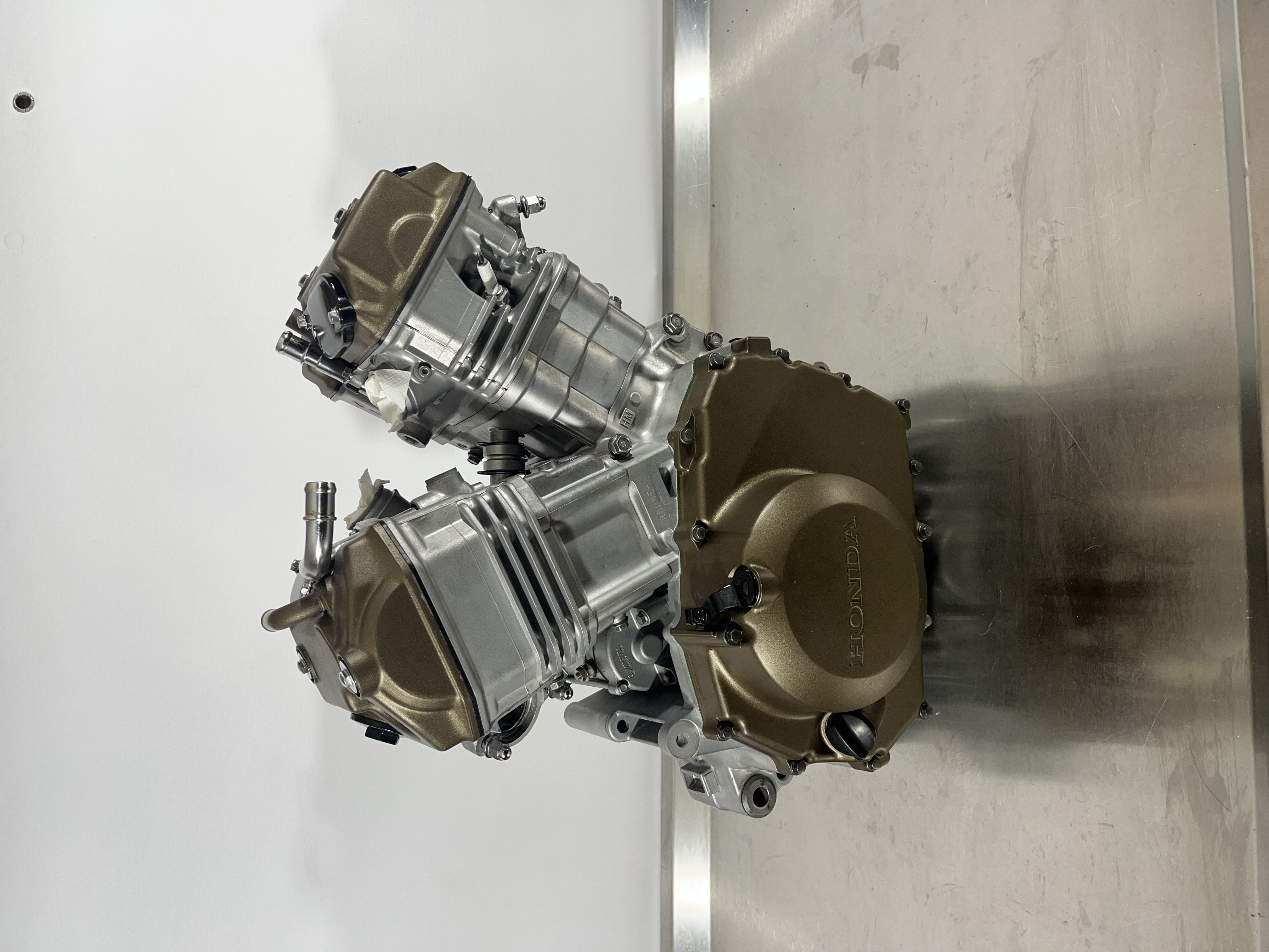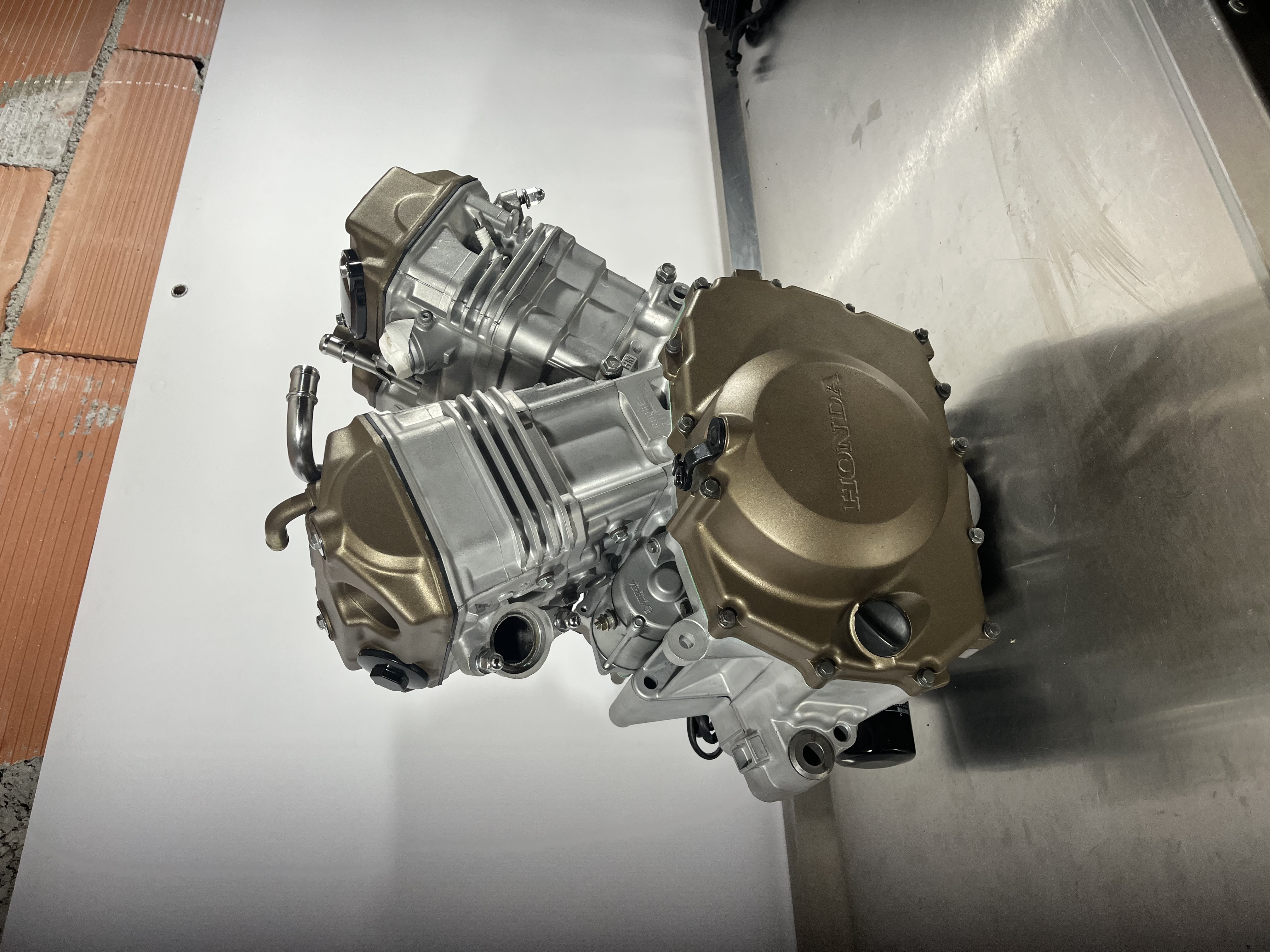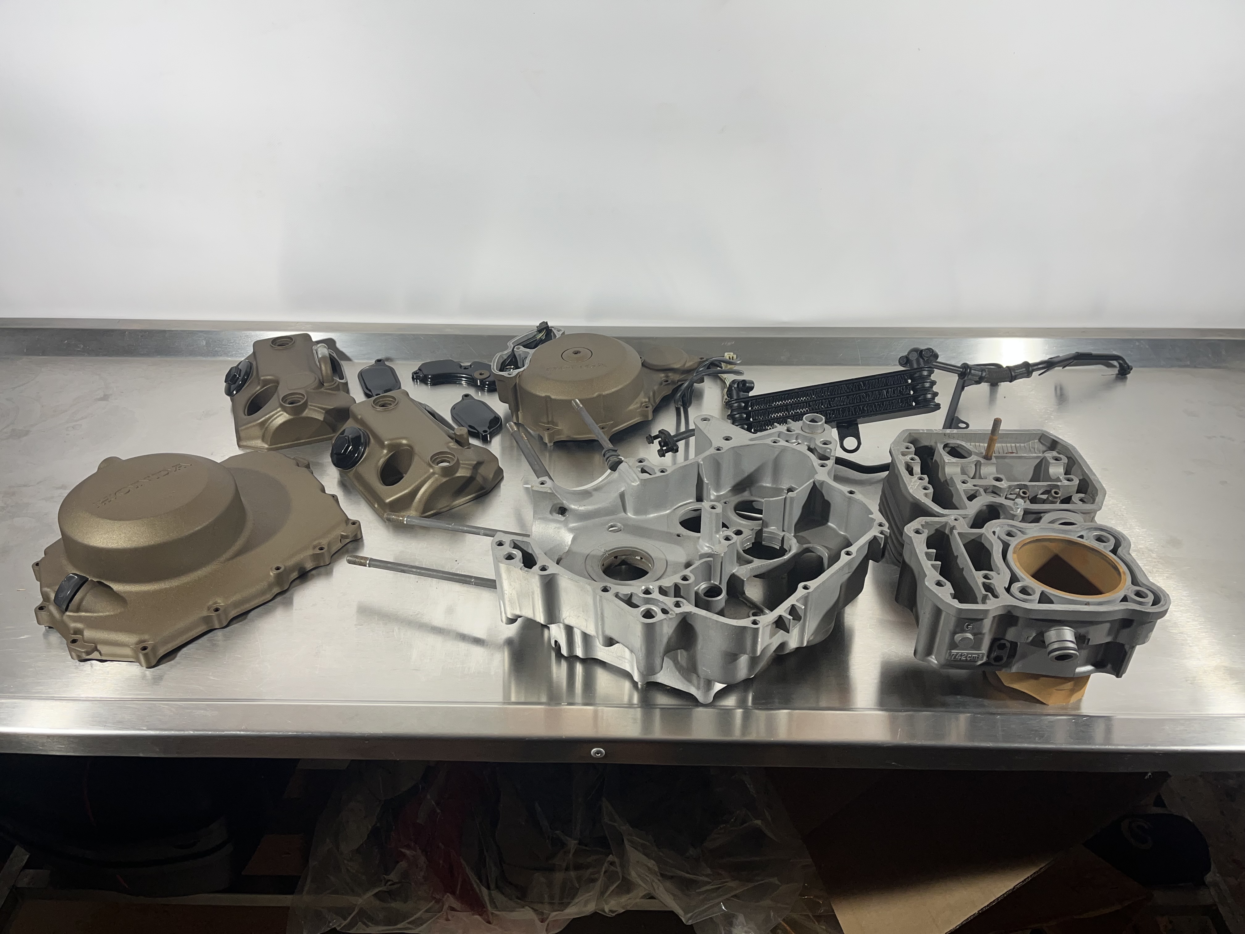 La raison de ma venue ici c'est qu'avec Franck , xrvpassion sur ce forum, on a l'amour du travail bien fait, et il m'a entrainé dans la restau de son africa en me confiant son moteur. Ah oui, je ne vous ai pas dit, maintenant j'ai un (tout petit) atelier de mécanique, principalement réfection moteur (auto / moto), carburation et mise au point (injection comprise) et je suis en création d'un site internet pour la vente de pièces neuves, mais aussi de pièces d'occasion, vérifiées, nettoyées, référencées, parfois sablées ou hydro gommées et thermolaquées par Franck (qui fait de super belles choses).