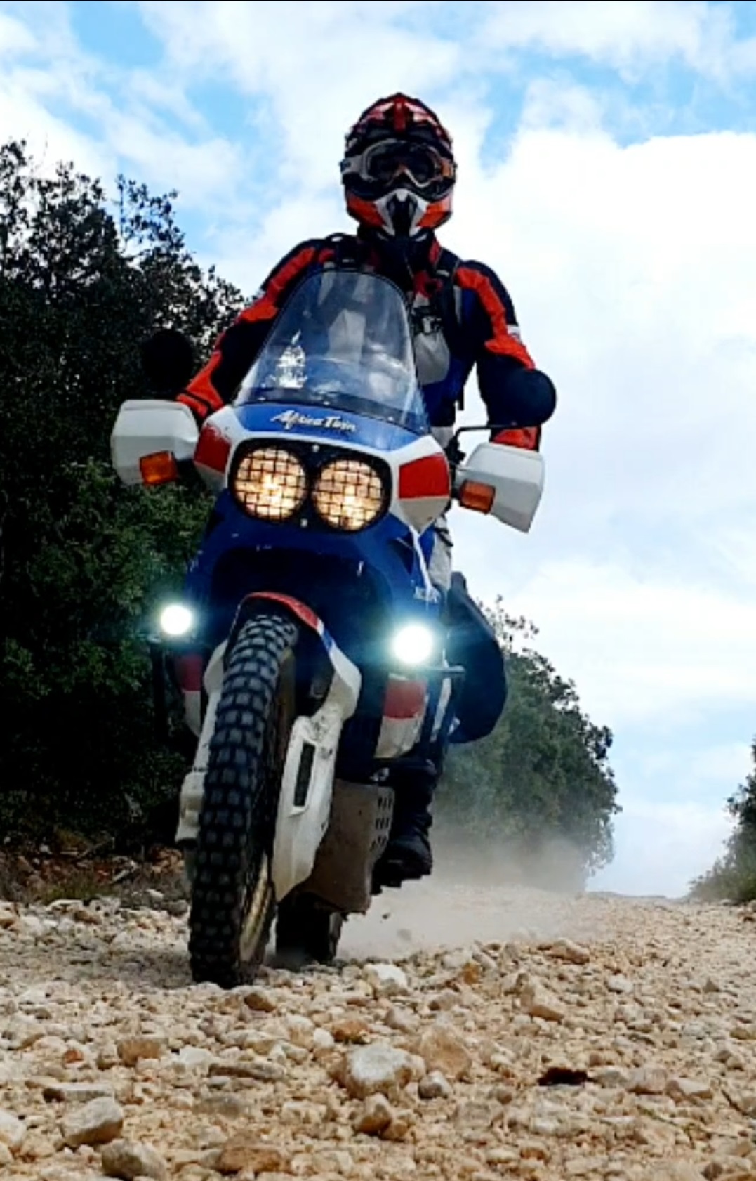 Petite présentation rapide. J'habite à côté de Dieulefit, en Drome, j'ai 41ans, mordu de moto depuis toujours, j ai quelques spécimens divers et variés, de la 350 magnat debon 1927 de mon arriére grand pére, au speed triple 1200 RS. J'ai recherché il y a quelques années un trail pour faire du road trip offroad, et je voulais revenir au basiques, la moto et son pilote, pas d'assistance électronique ni de confort superflu. Une bécane simple, fiable. J'avais un budget limité, donc j'ai d'abord recherché une transalp, car un copain en avait acheté une paire d'années auparavant pour 600€. Entre temps elles ont eu la côte, et en trouver une en état à moins de 1500 balles était devenu mission impossible. Puis un jour je tombe sur une Africa RD03! La bécane de Cyril Neveu!!!! §aime Coup de foudre, l'occaz est magnifique, 2nde main achetée et suivie en concession, 35000kms, dossier factures complet depuis l'achat. Mon Graal.