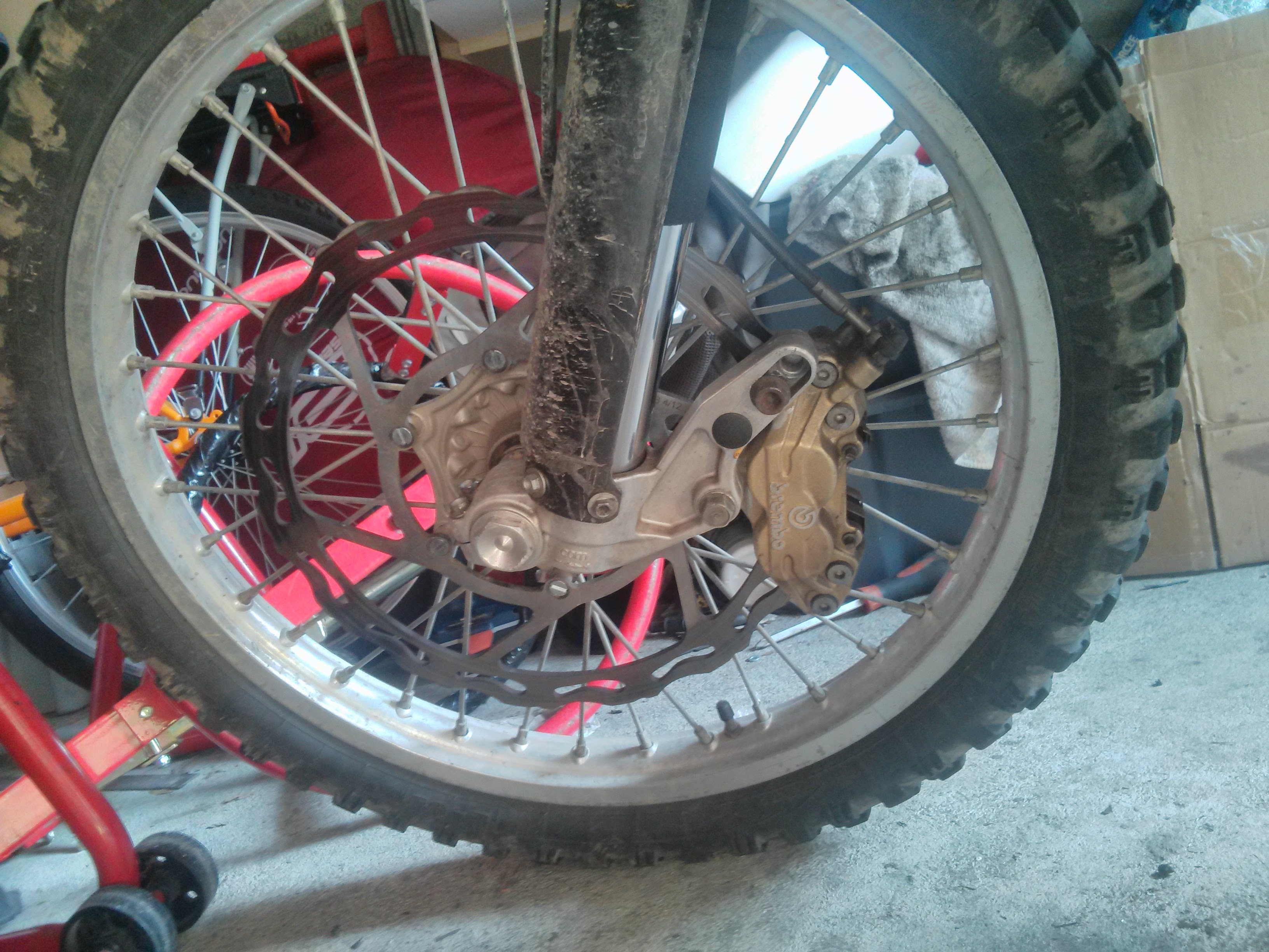 Attention quand tu commandes ton disque, j'ai commandé un de 5mm, mais l'étrier est prévu pour du 4mm, j'ai du meuler dedans. Vérifie bien l'épaisseur du disque d'origine qui vas avec l'étrier.