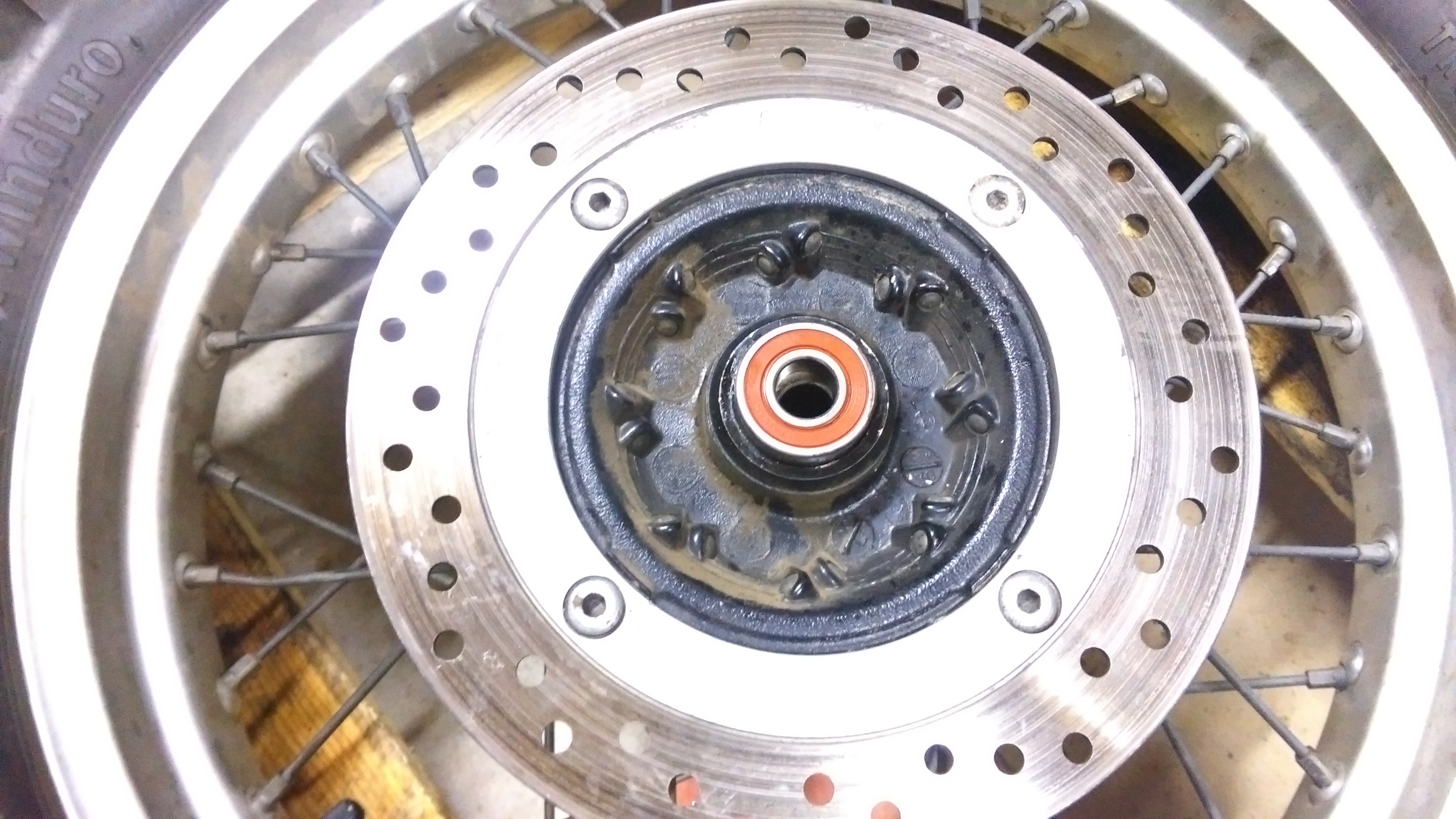 Ici la roue AR côté disque. (roulement juste posé pour la photo)