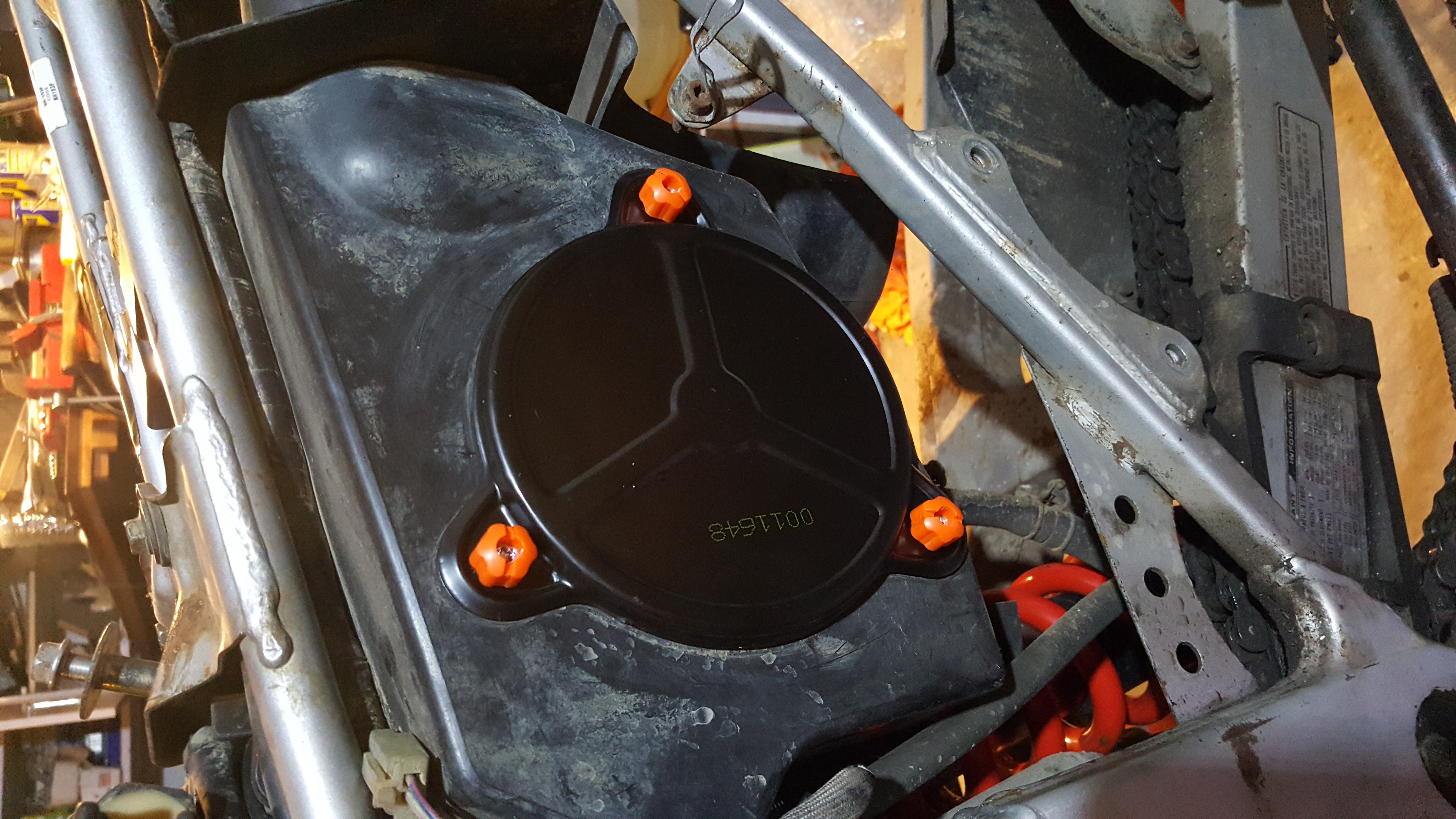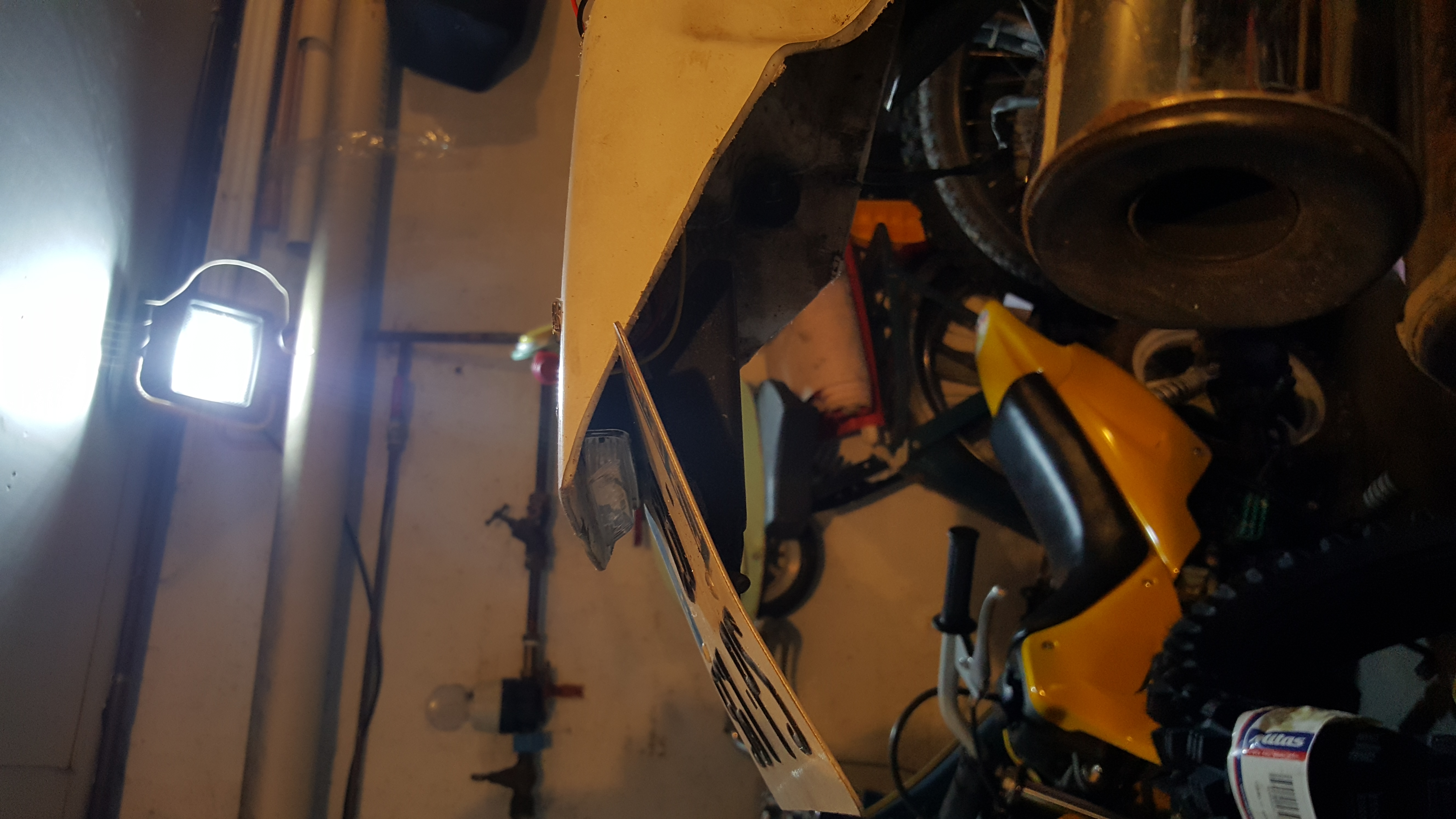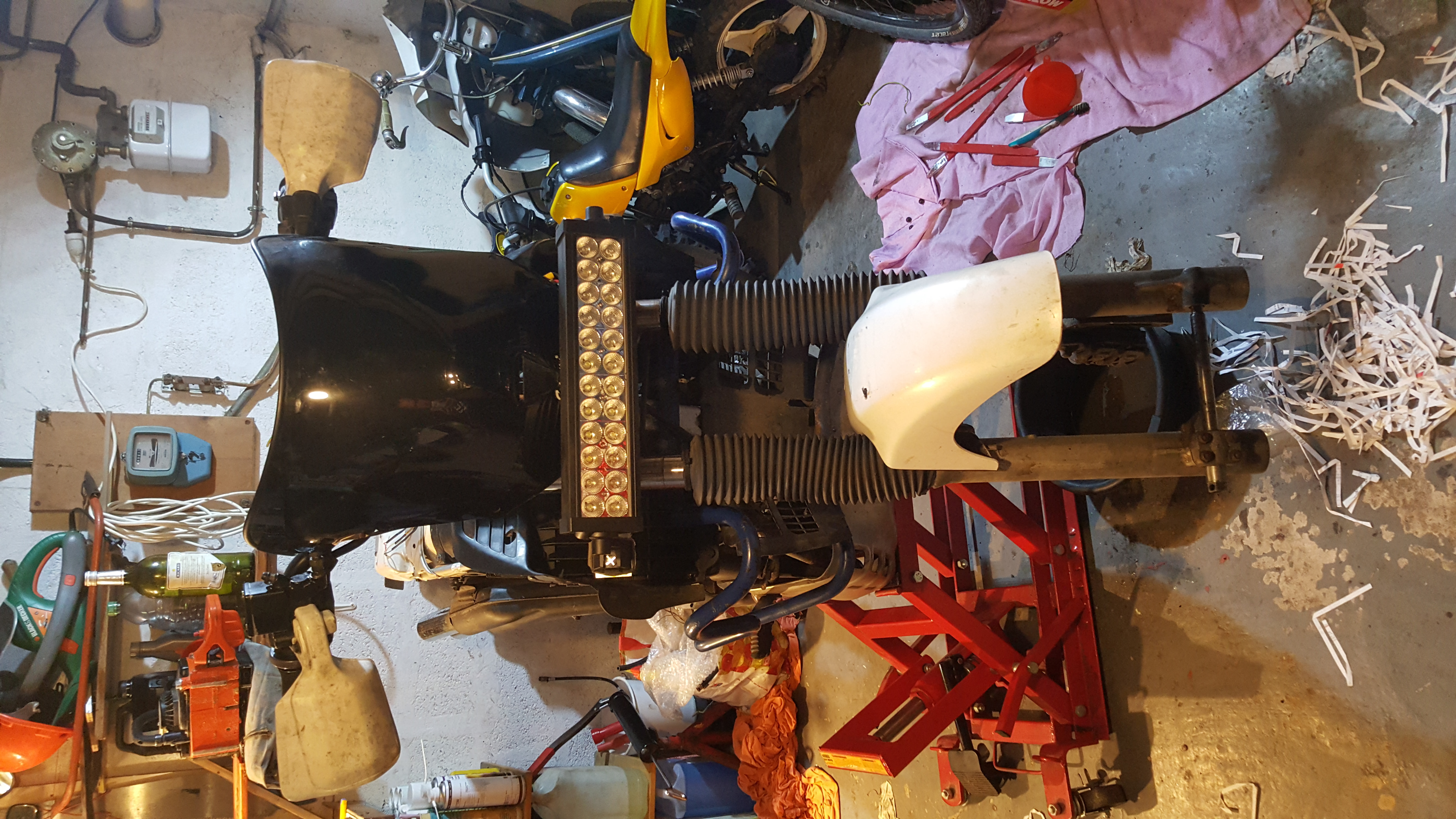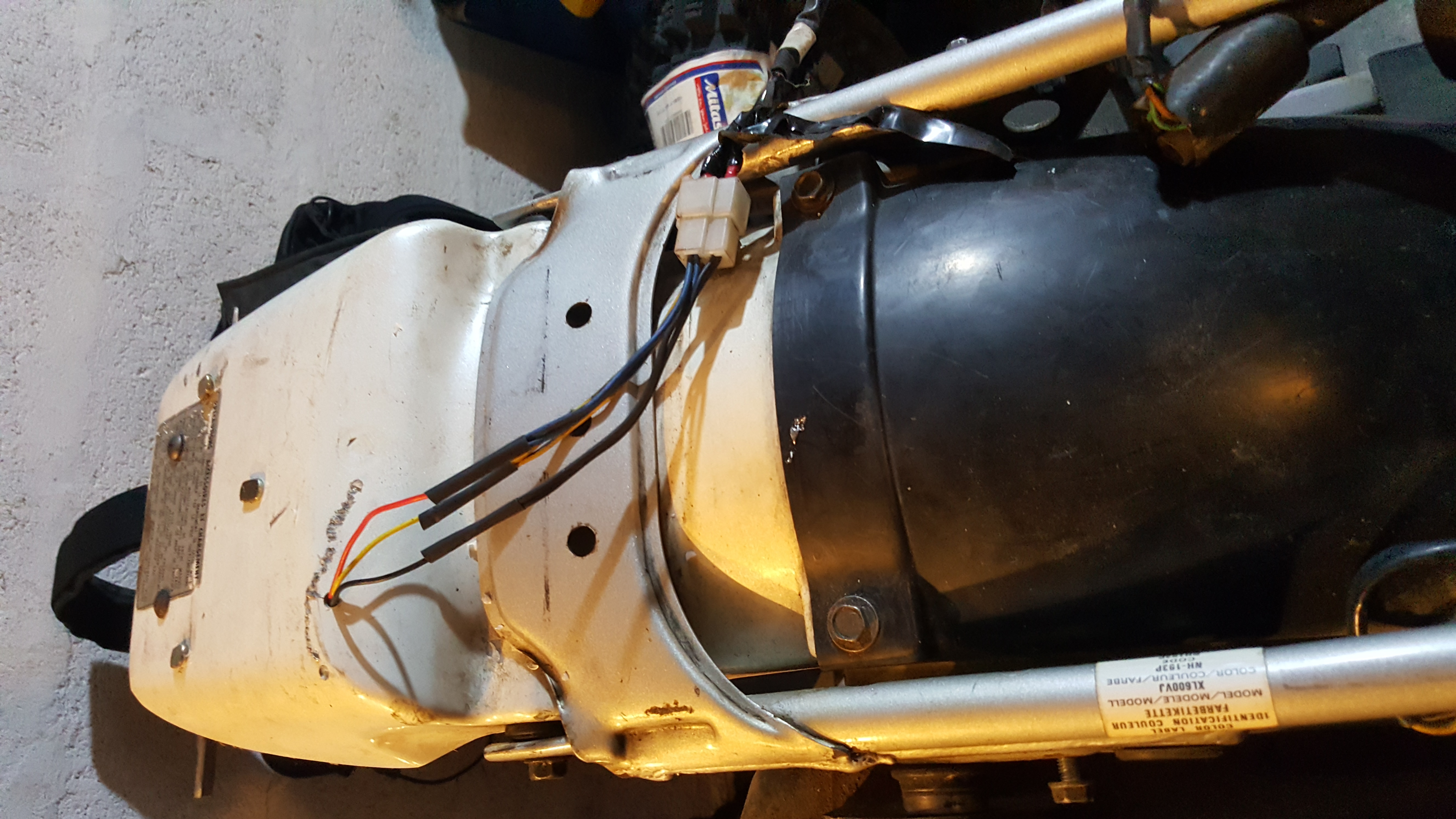 Présentation d'une bulle trouvé a une braderie ça devrait bien se positionner pour cacher le faisceau Mise en place de la plaque et d'un feu arrière trouvé aussi a la braderie (ah oui je vous avait pas dit que j'avais tout viré a l'arrière et que j'avais découpé le plastique Changement du filtre a air et mise en place d'un démontage rapide (merci Denis