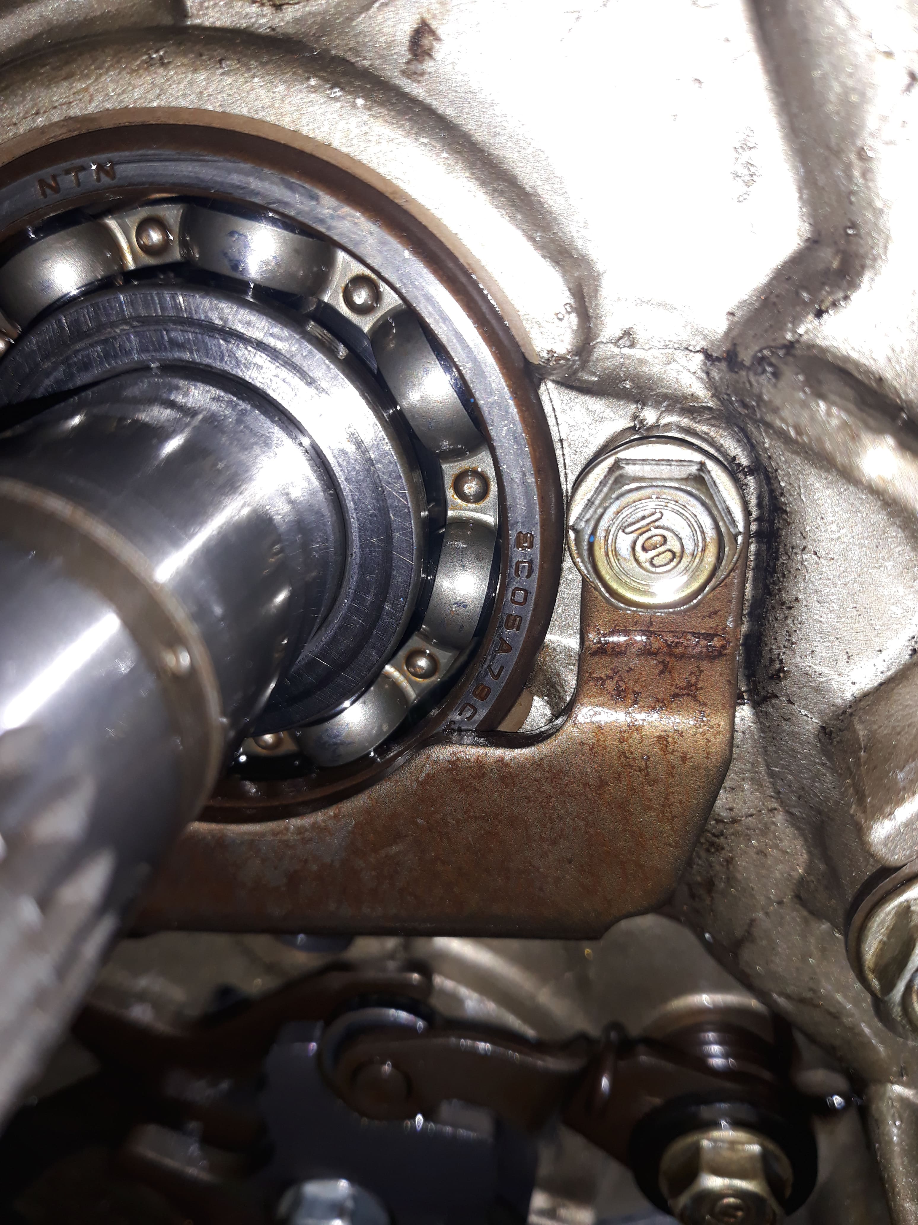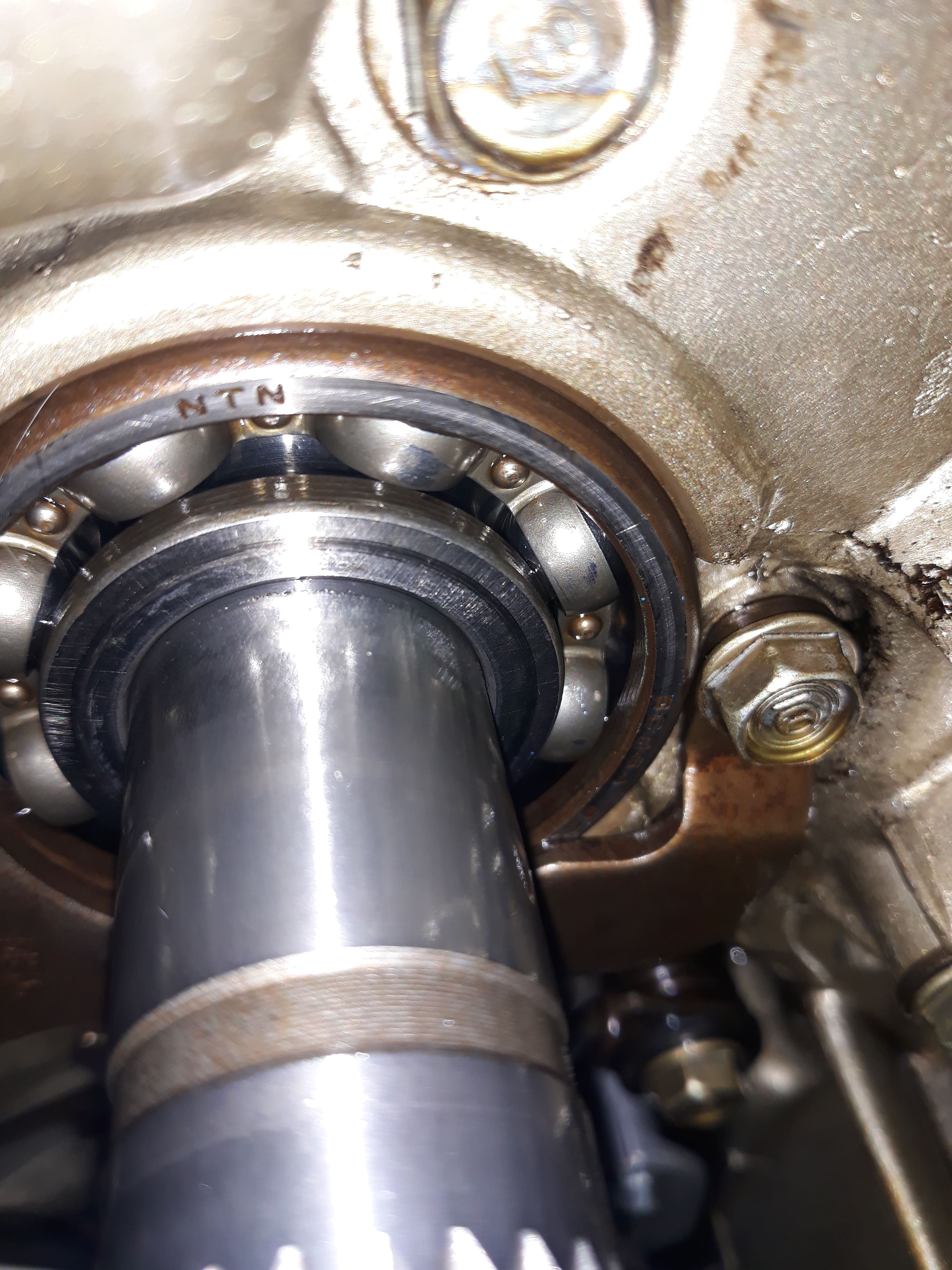 Je pensais peut être faire levier avec un petit tournevis plat en prenant appui sur la bague extérieure, le jour j je protégerai la surface de l'arbre au cas ou...peur de l'abîmer, ce qui me fait flipper aussi c'est de faire tomber un morceau dans le moteur par derrière...