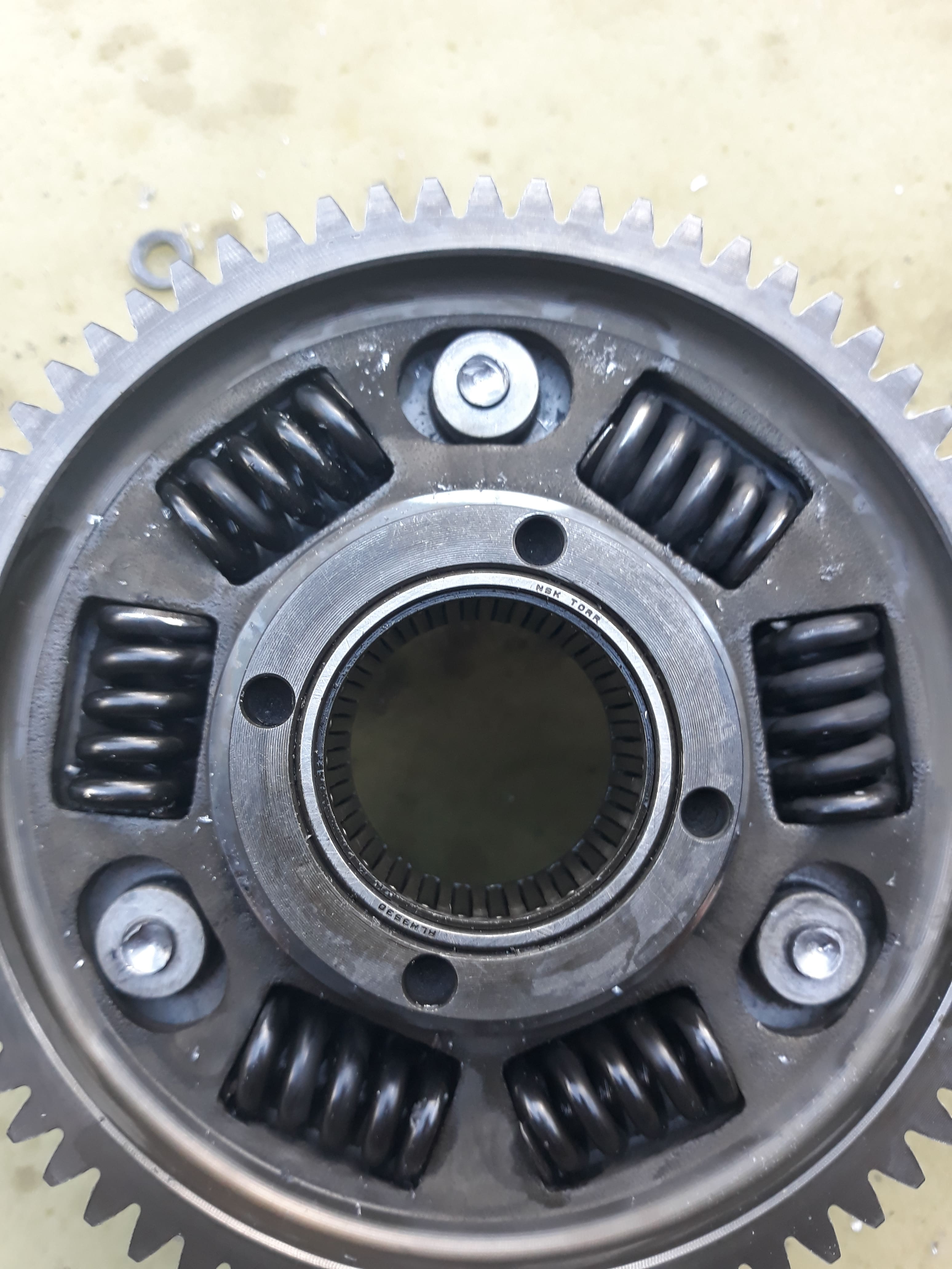Pas trop trop marquée je trouve ça peut aller...pas mal de jeu dans les 4 plus gros ressorts et moins dans les 2 plus petits montés serrés d'origine, y'en a même un sur les 2 qui reste quasiment en place sur la couronne quand je l'enlève...