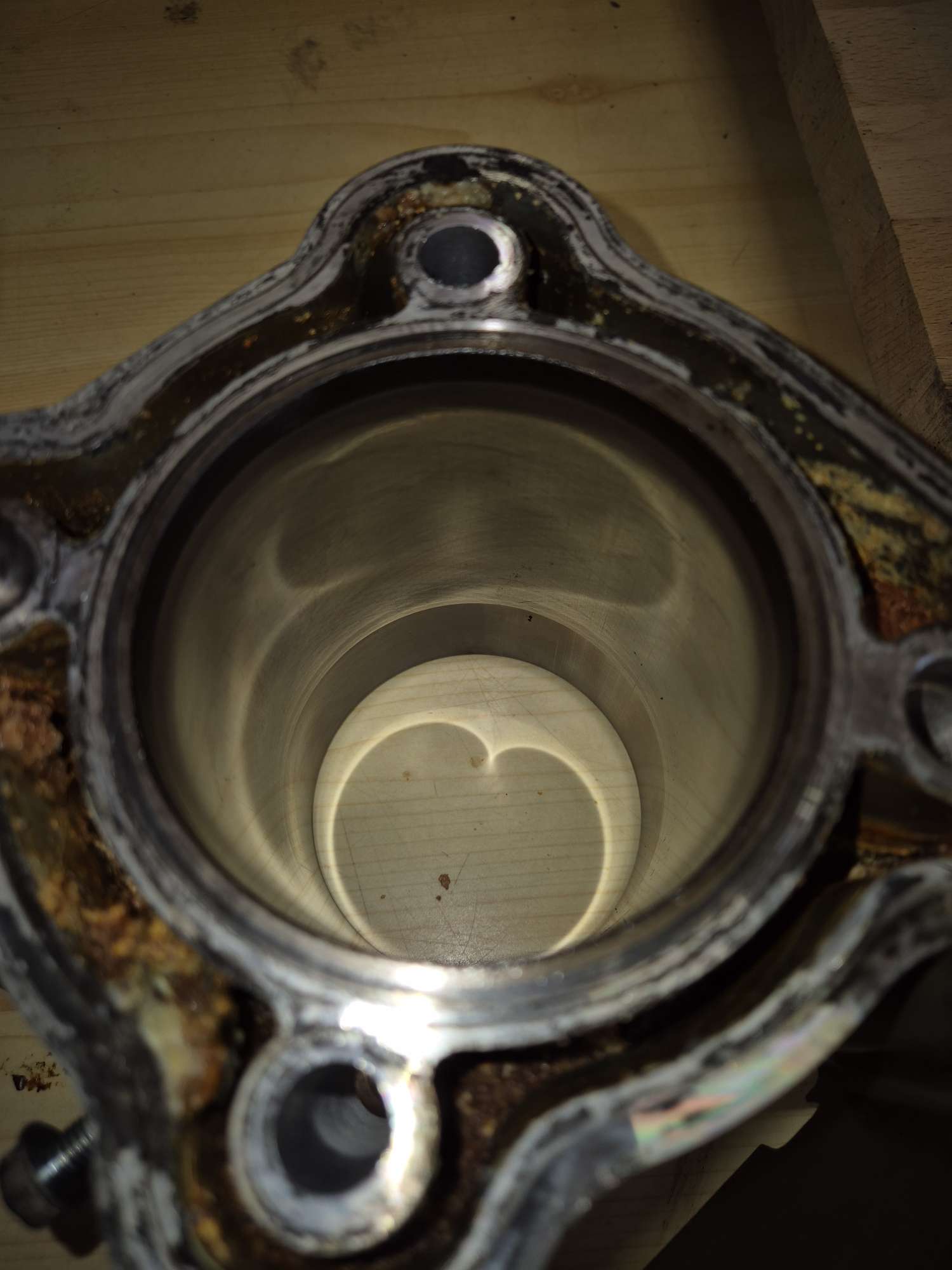Comme déjà dit, prends les cotations cylindre piston, tu auras une opinion fiable. Même si sur la photo le piston paraît sain, tant mieux...