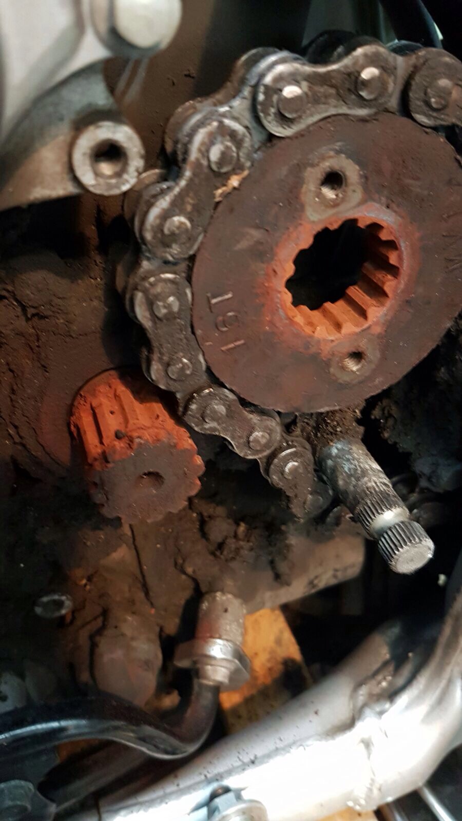 Mais bonne nouvelle, l'arbre de sortie de boite est en bon état, juste bien rouillé mais pas du tout bouffé