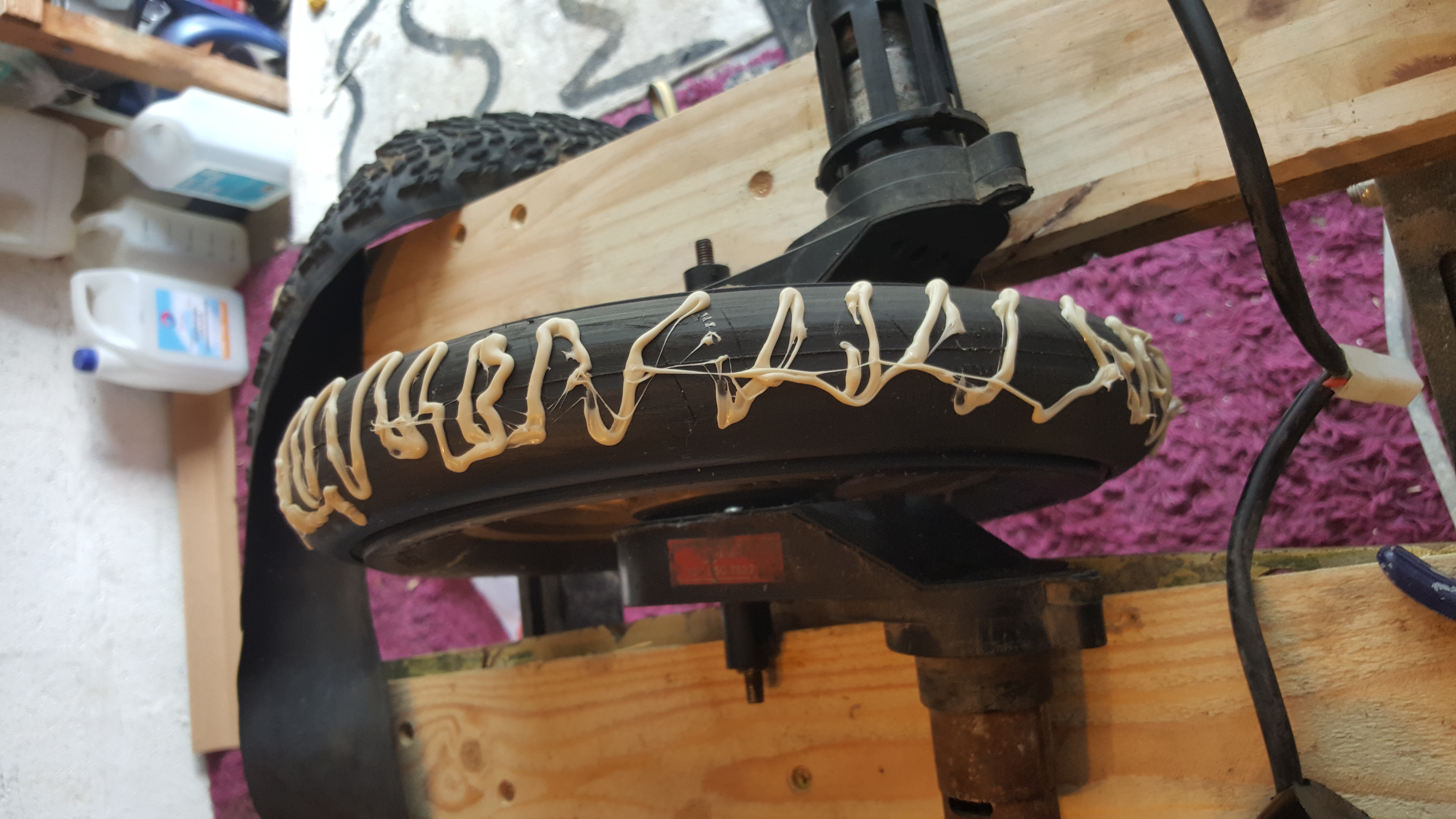 J'ai pensé coller une chambre a air mais j'ai peur que ça se décolle rapidement. A voir si je pourrais pas adapter un pneu de vélo enfant