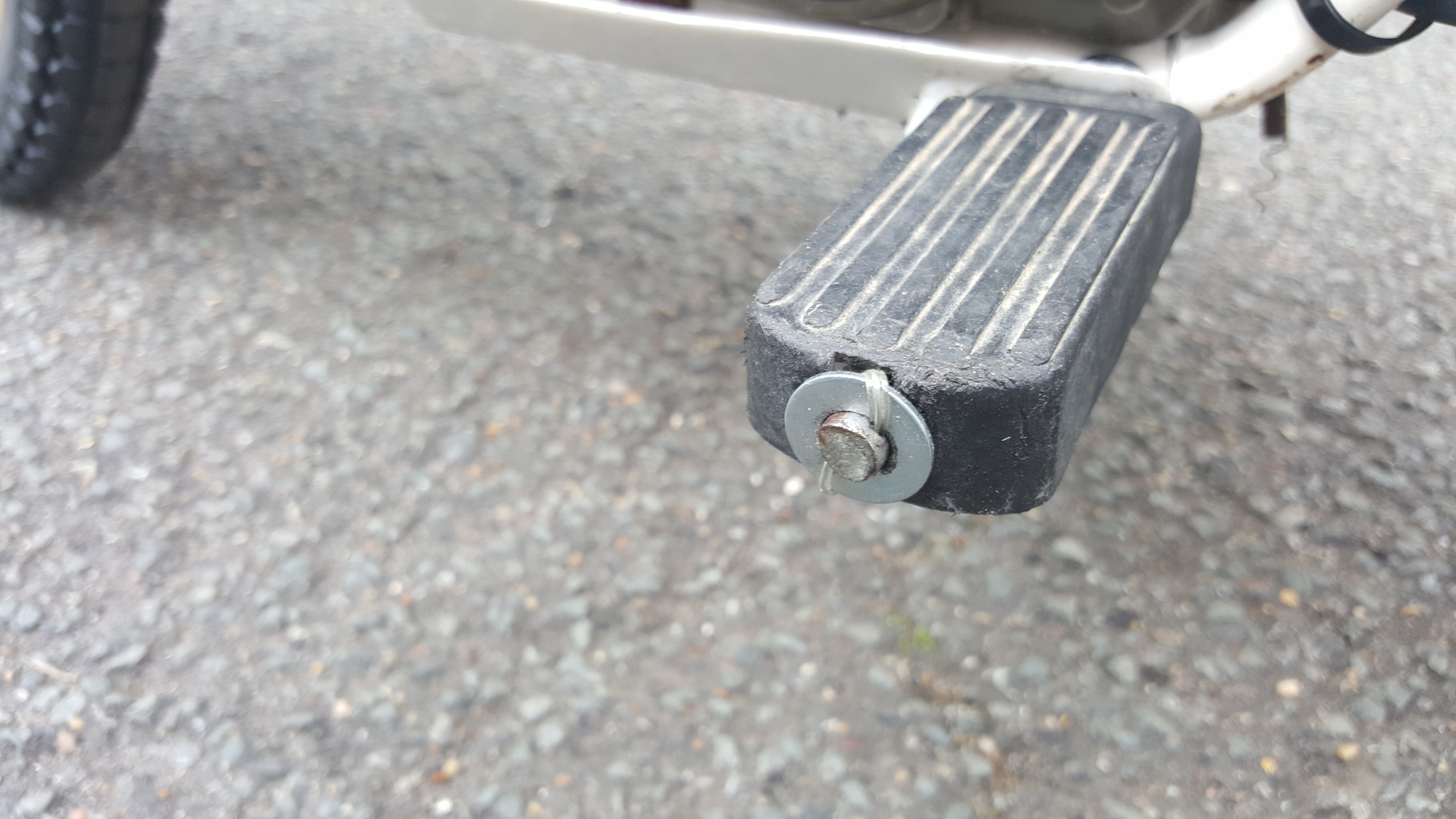 J'ai aussi réparé le cale pied qui ne tenait plus. J'au percé l'axe et mis une petite rondelle