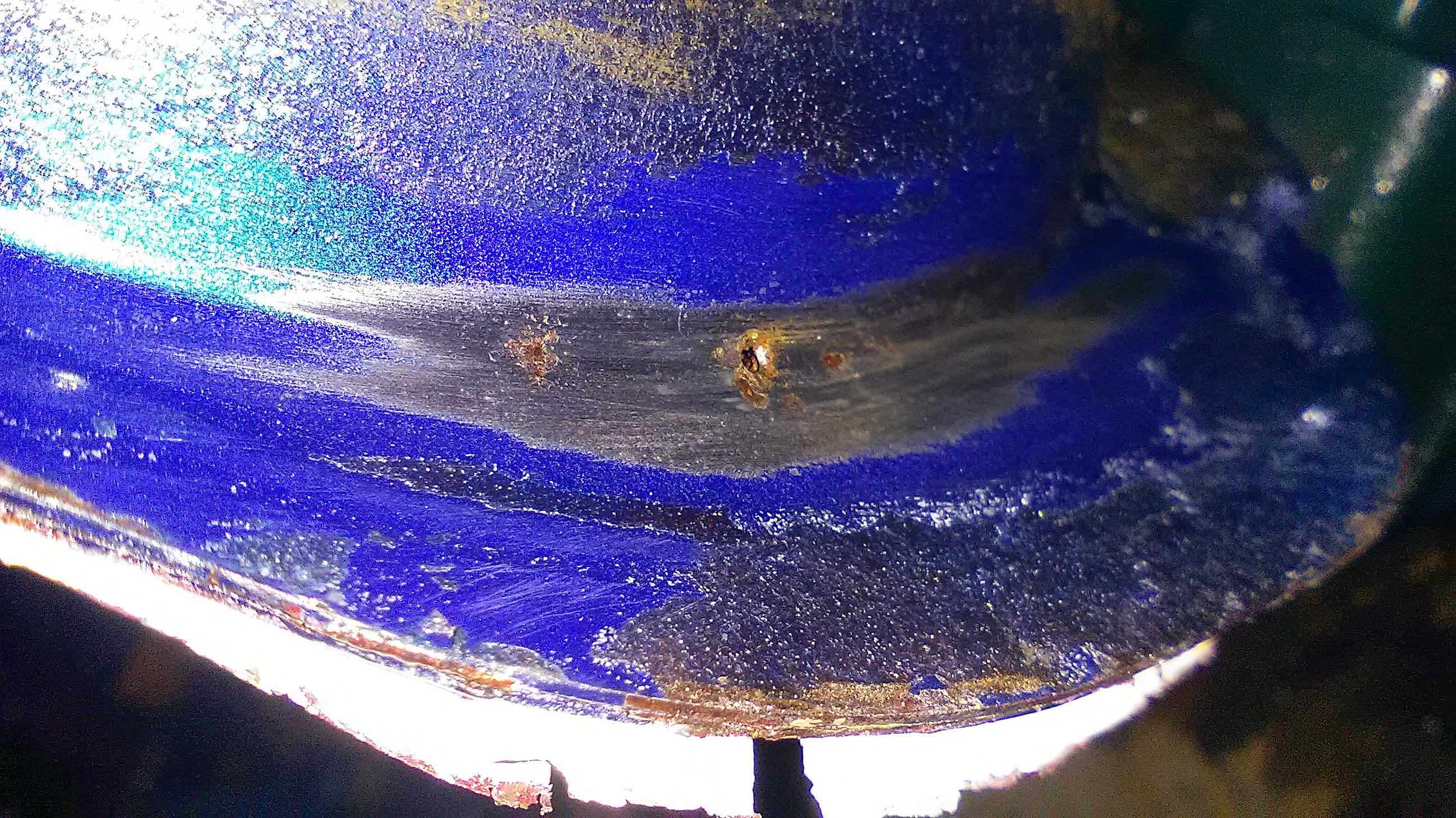 je sais pas c'est bizarre on dirait que c'était appuyé sur quelque chose si ca avait rouillé par l'intérieur ce serait en feuillures vers l'extérieur aussi avec le gonflement non ?