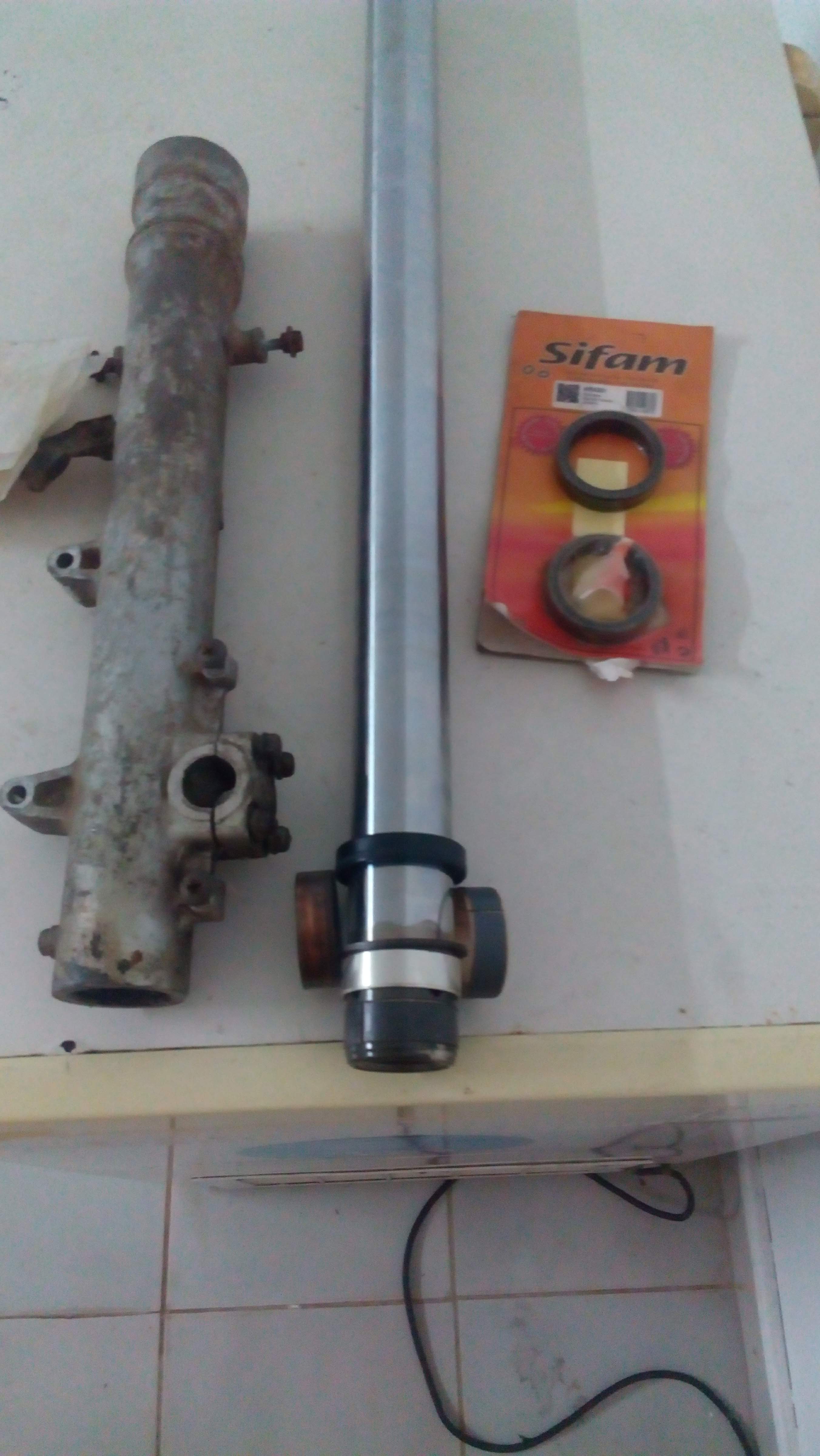 Avec le stockage longue duree, on a remplace les durites de carburant, vidange les freins et le circuit d eau. L inspection des elements mecaniques n a rien revele de mauvais. Pas de jeu sauf à la roue avant. J ai change les roulements. En meme temps elle ne roule que tres peu et n avait que peu de km quand mon pere l a eut en 95. Elle n a que 43 mille km. Je sais la corrosion lui donne plus de vecu qu elle n en a vraiment (salinite et humidité equatoriale). Au passage, refection et vidange fourche. Caches poussiere d origine conserves. Sont d excellente qualite