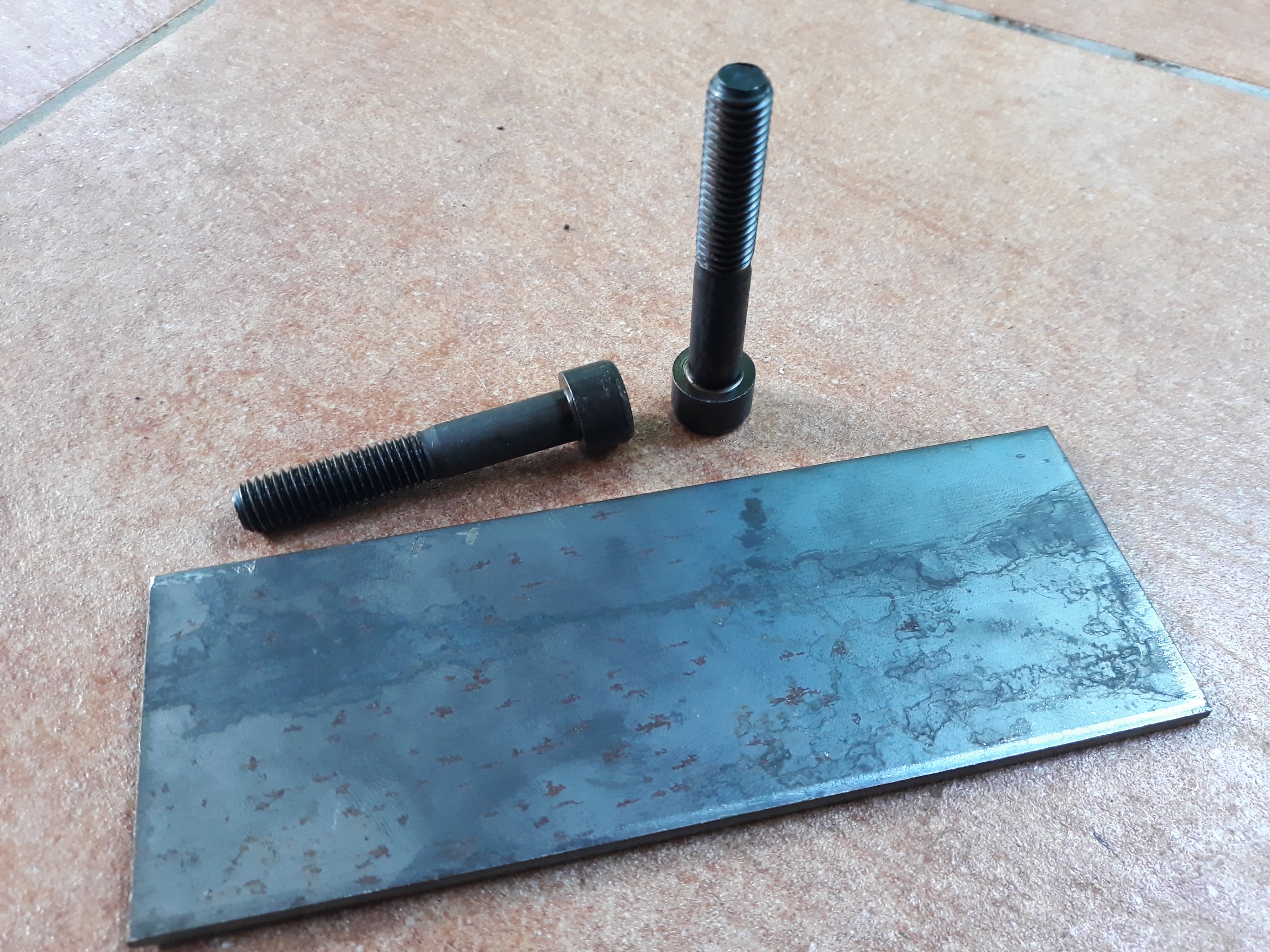 Du coup, je me suis trouvé un morceau de plat d'acier 4mm bien costaud, je sens que je vais bien galérer à le couper et surtout à le percer, merci Dudu