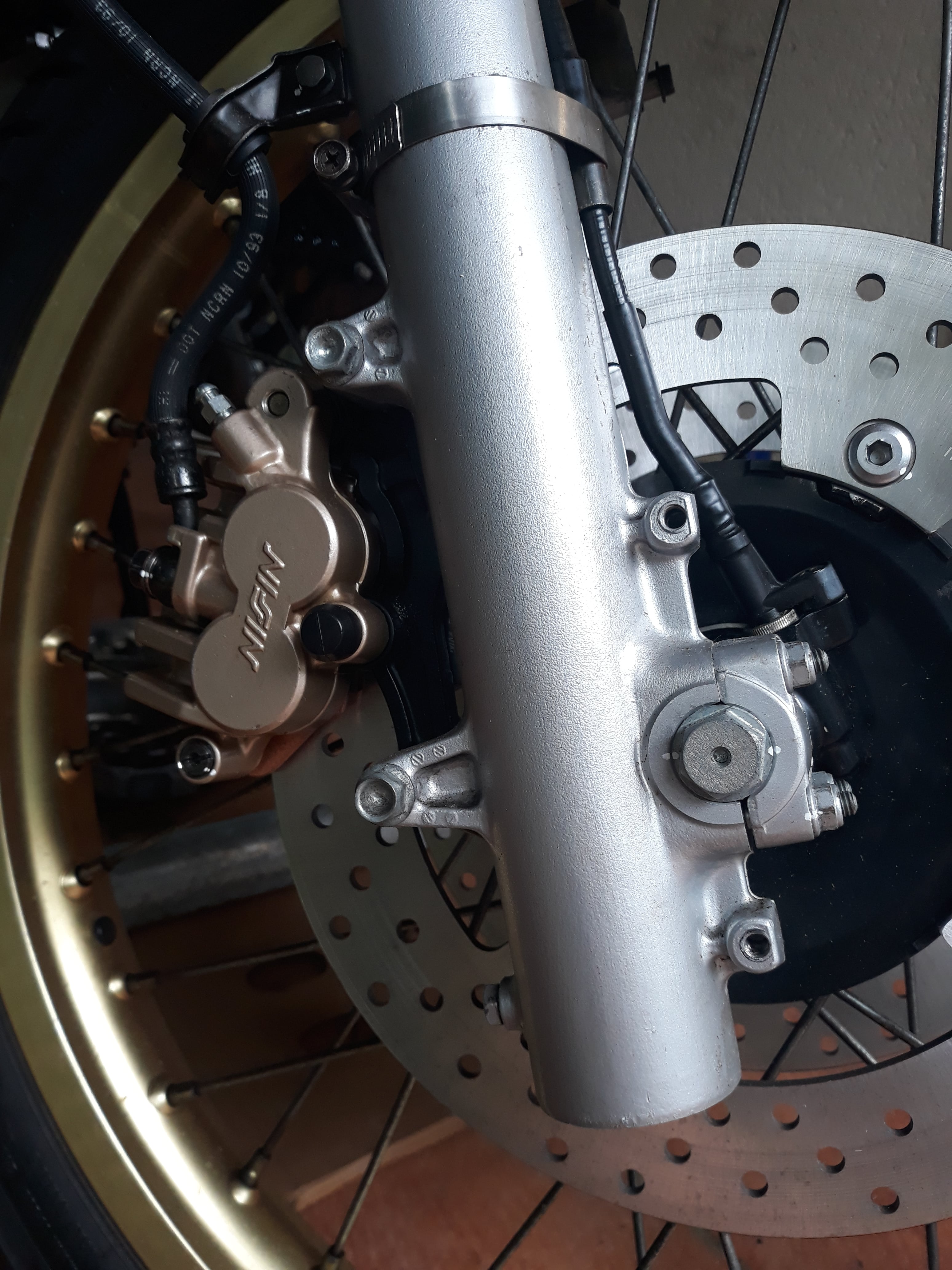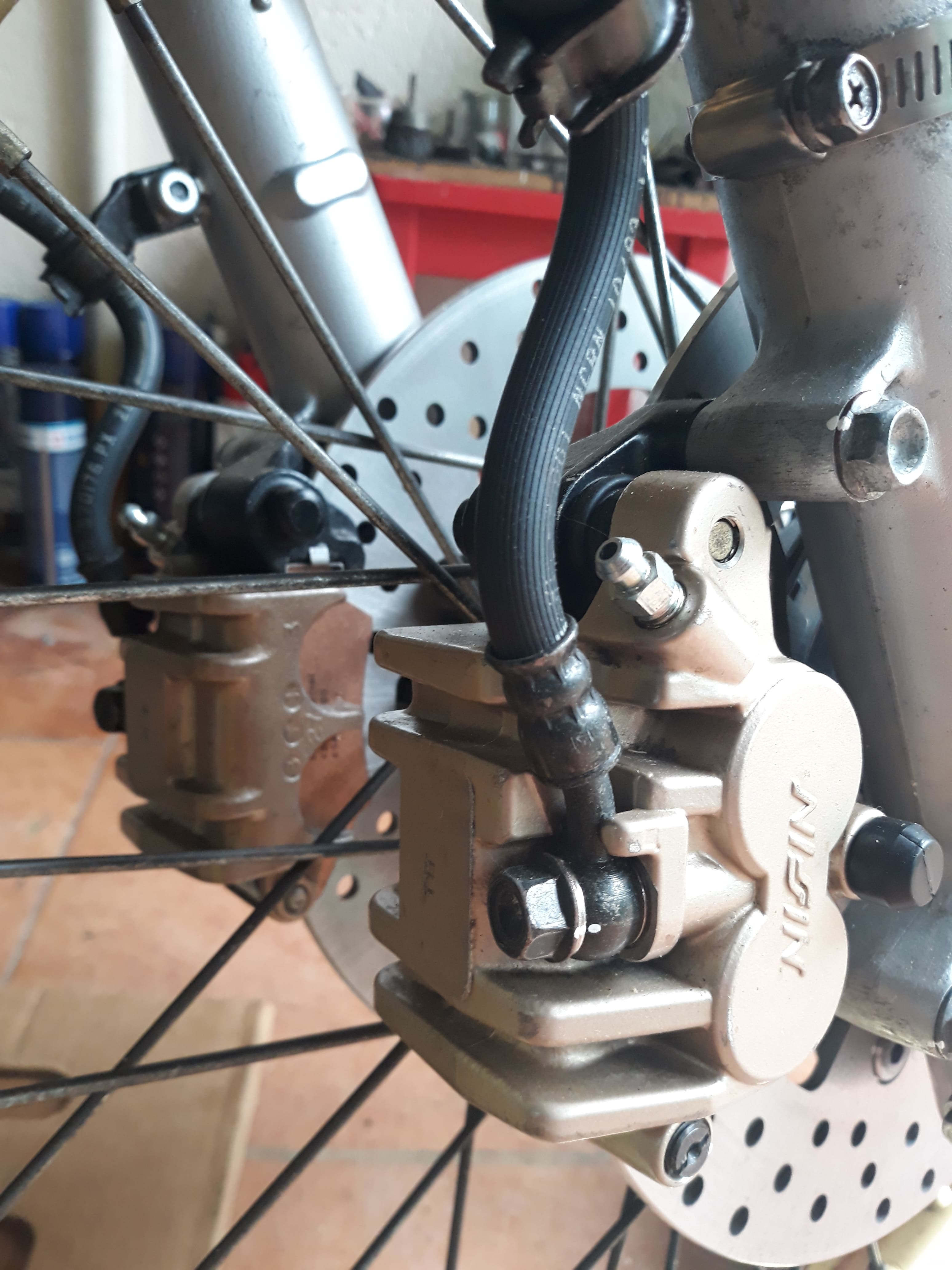 Entre temps j'ai remonté tout le système de freinage avant, nikel chrome, je crois qu'il va me rester à fignoler la purge...