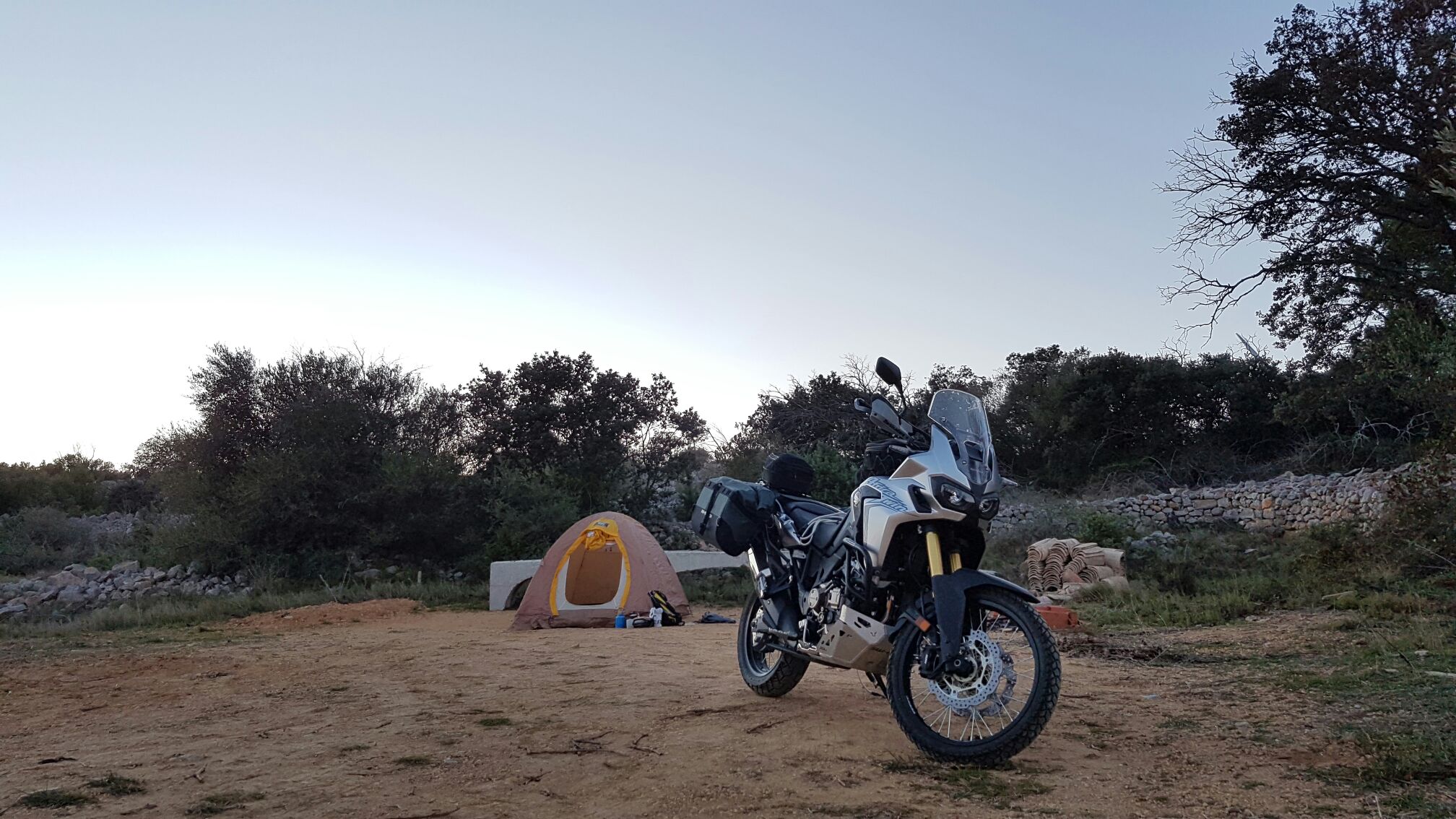 Une belle moto, une tente et un ciel étoilé, que du bonheur