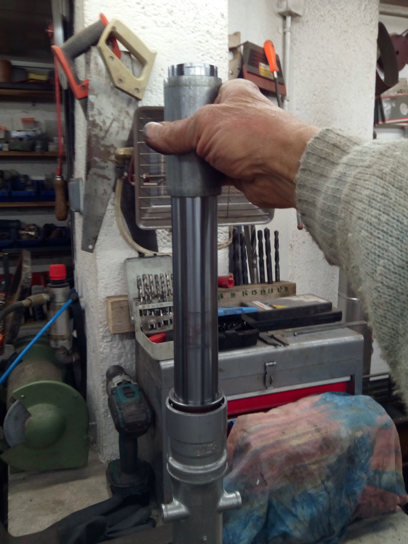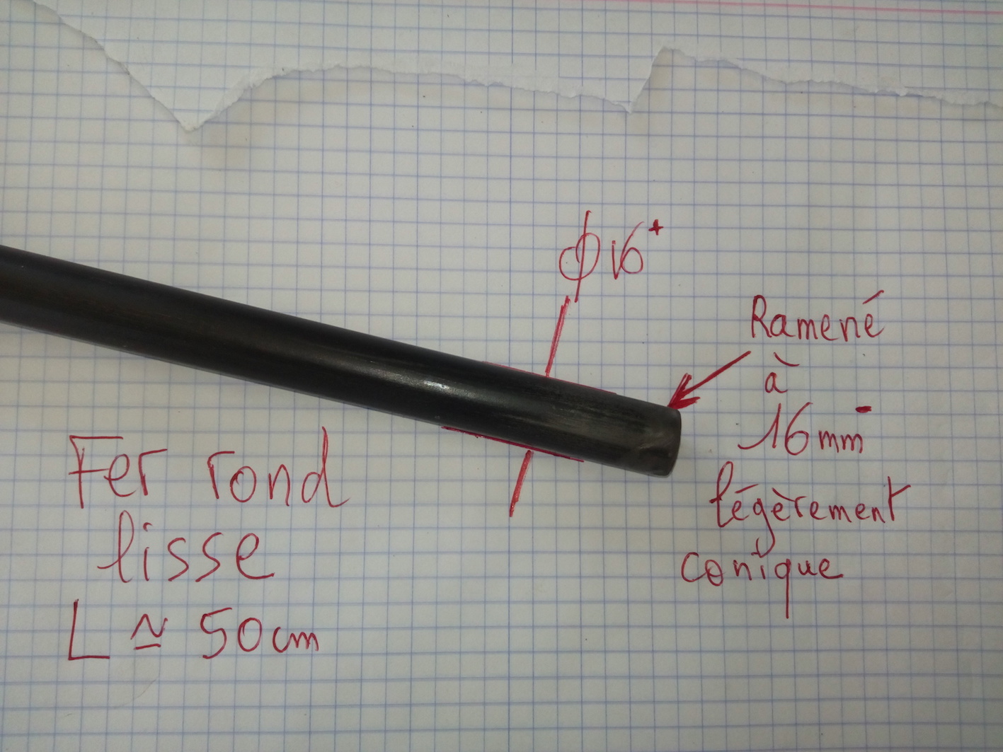 une barre ronde de 16 de diam. emmanchée en force dans la pipe d'amortissement dont le diamètre interne est de +/- 16mm