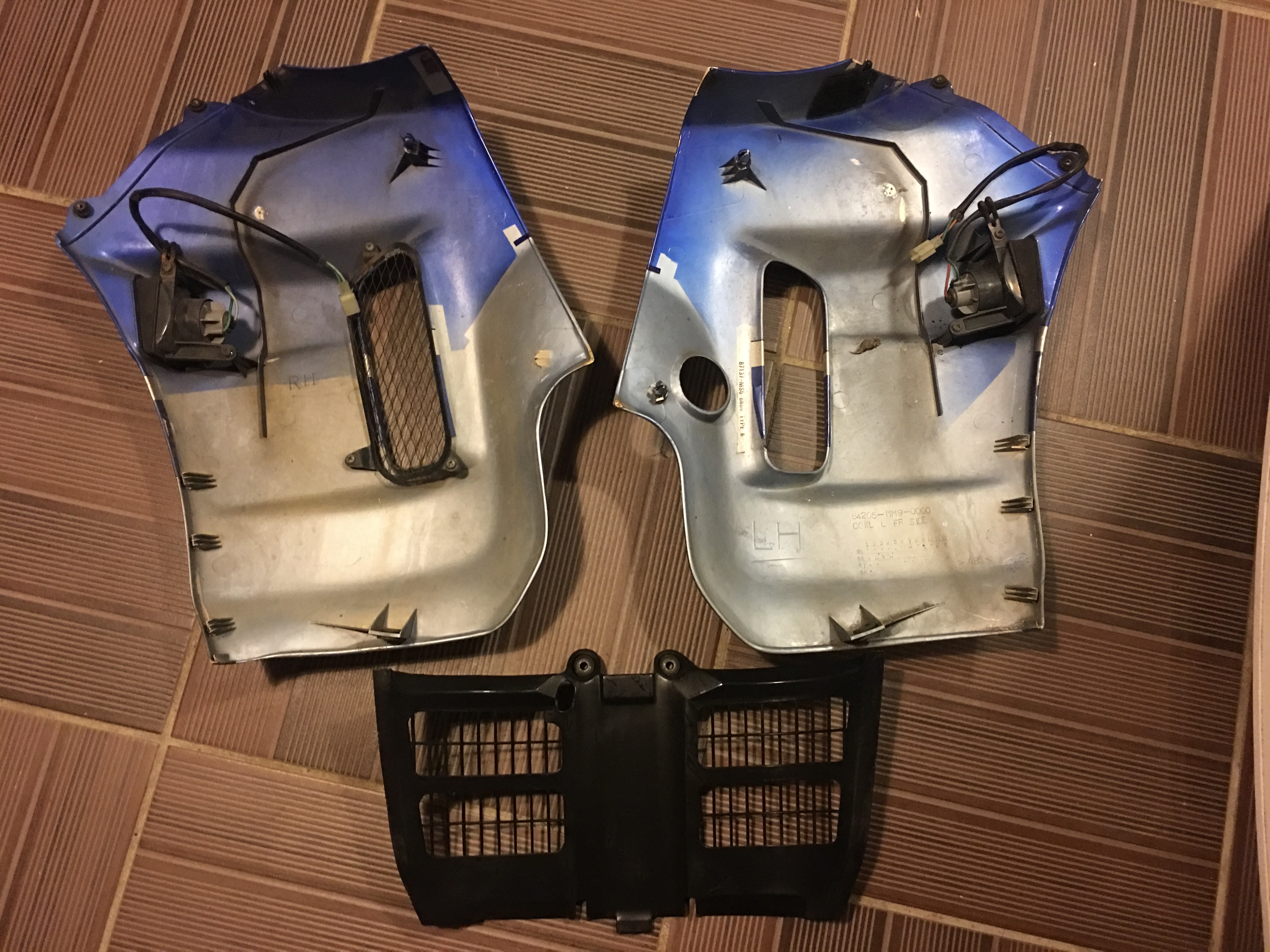 Pour les carénages, j’en ai trouvé en bon état (coté fixation), sans fissures et le tout pour un prix très raisonnable.