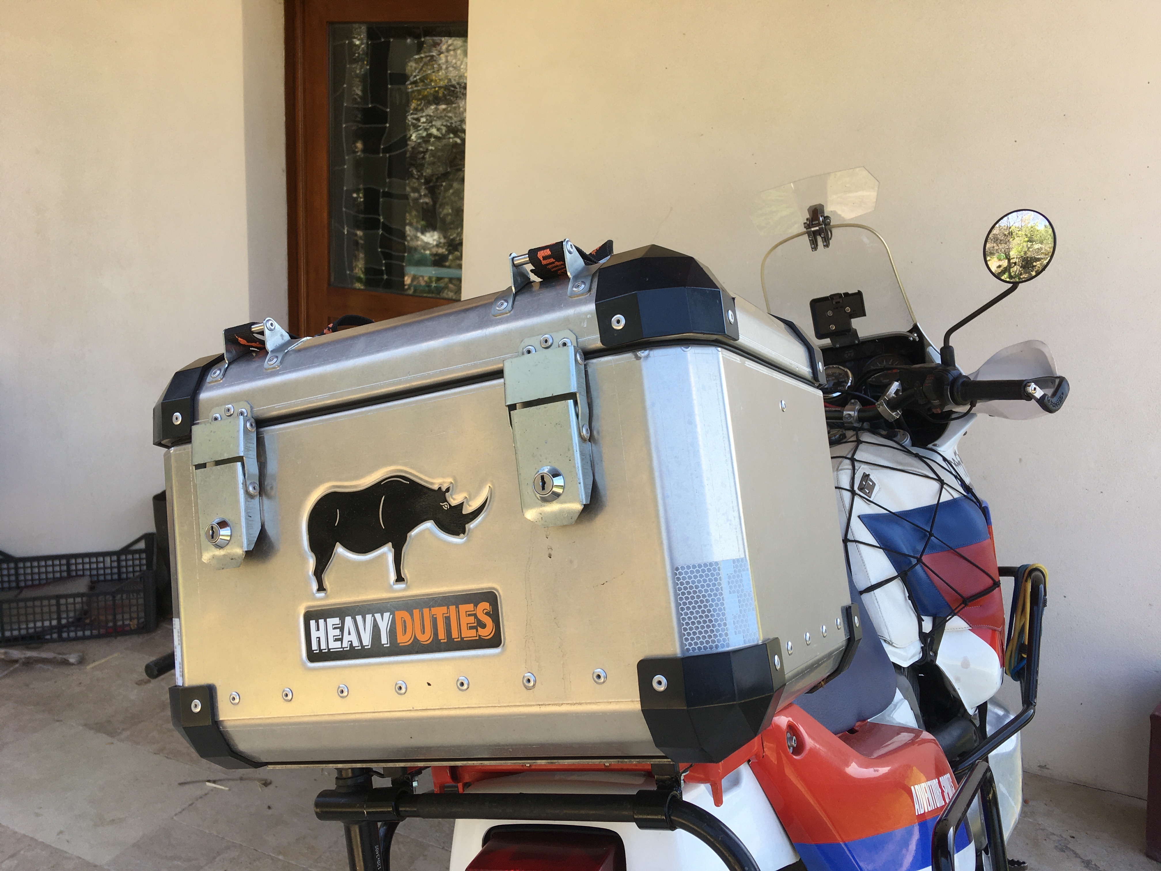 pour le topcase HD, prévoir une plaque inox 3mm pour mettre dessous (les parois sont trop fine pour porter directement) et 2 tubes carrés d'acier pour faire la liaison plaque inox-fixation de la platine porte-paquet (qu'on enleve)