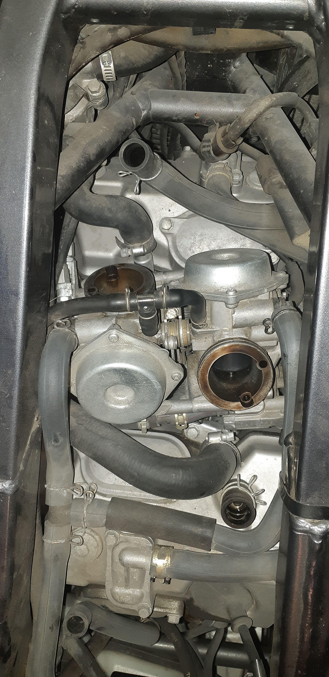 Une fois que tu as fait tout ça, il ne reste plus grand chose à faire pour déposer les carbus et faire une inspection complète tranquillement puis changer les pipes d'admission...