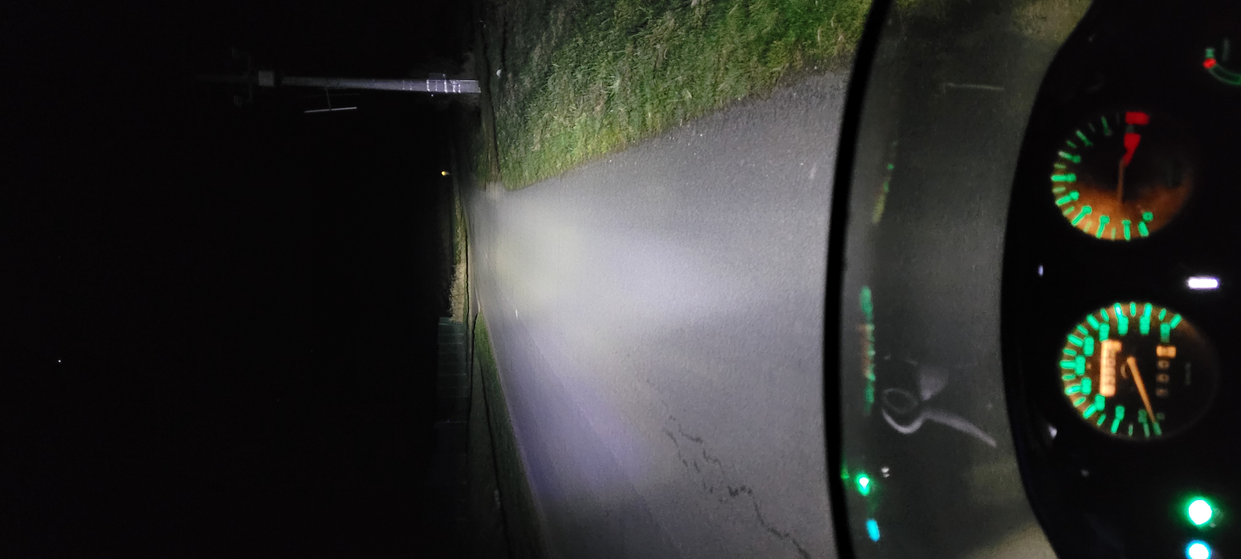 Même si les optiques ne sont pas prévus pour des lampes led je m’attendais à pire que cela, voici deux photos en code et en phare (il faut que je relève un peu mon optique droit de longue portée qui éclaire trop bas)