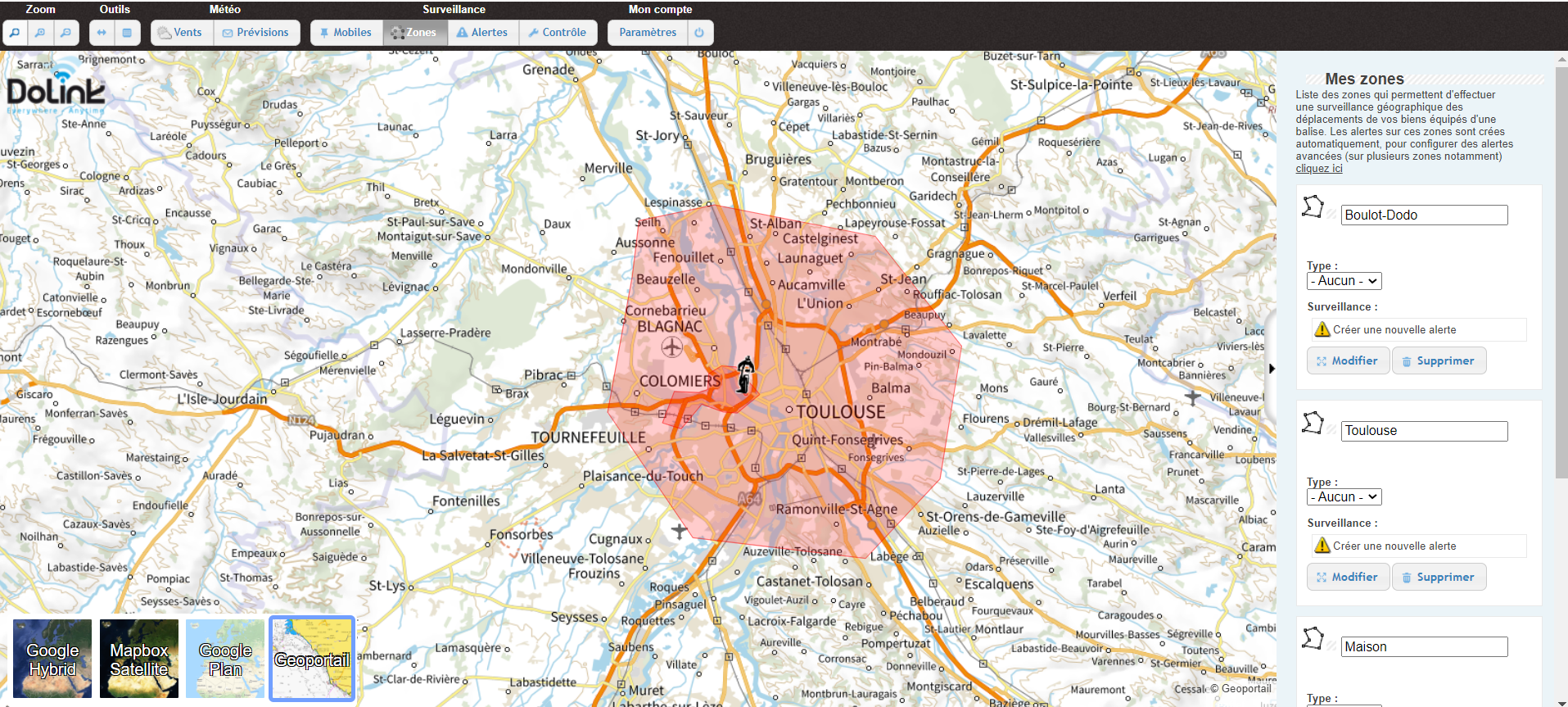 Pour les zones on peut les définir sur la carte soit un cercle soit une forme libre.