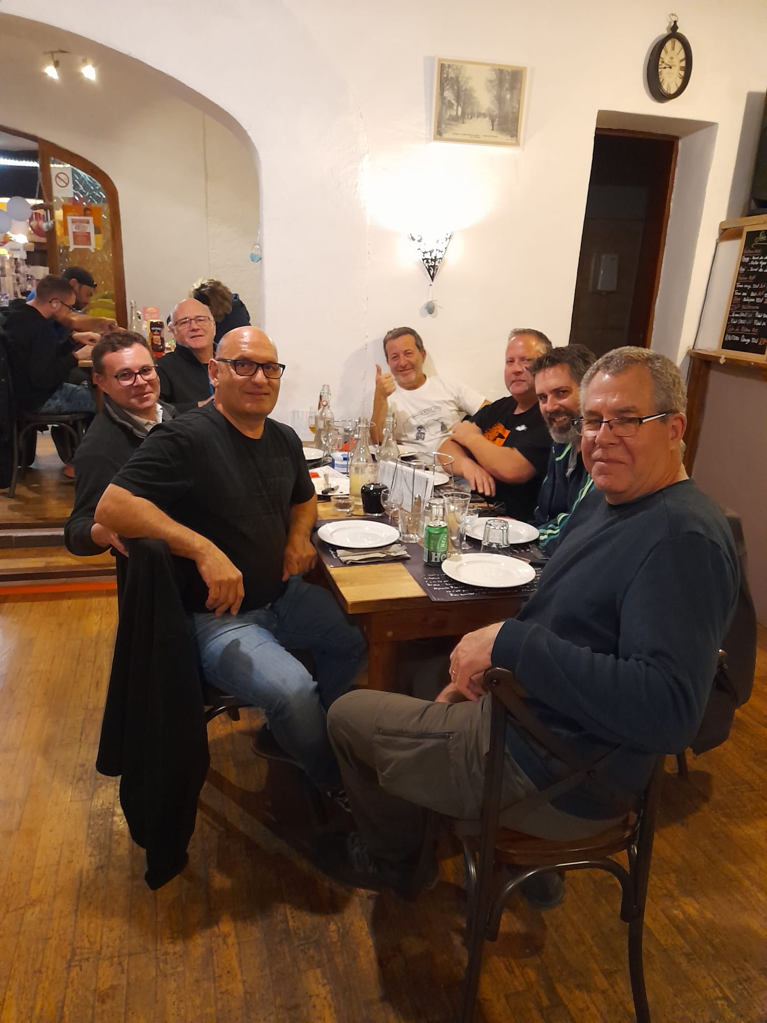 Nous en avons profité pour aller savourer la restauration de notre aubergiste préférée, celle à qui nous confierons vos papilles pour le meeting également. En attendant le goût, nous allons vous montrer quelques images de ces supers moments entre potes. Nous étions 7, dont 5 connus ici ...
