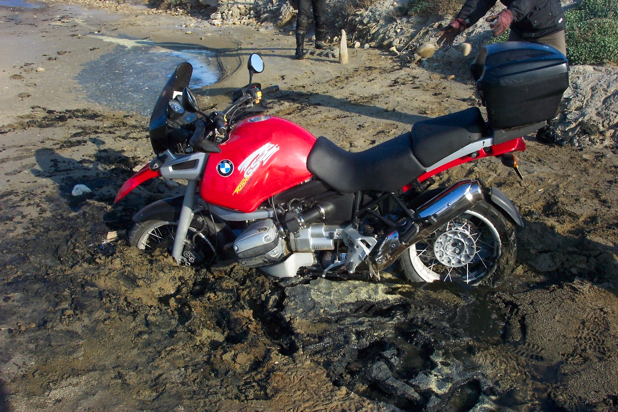 La moto a failli finir dans des sables mouvants :( et même à 5, impossible à sortir