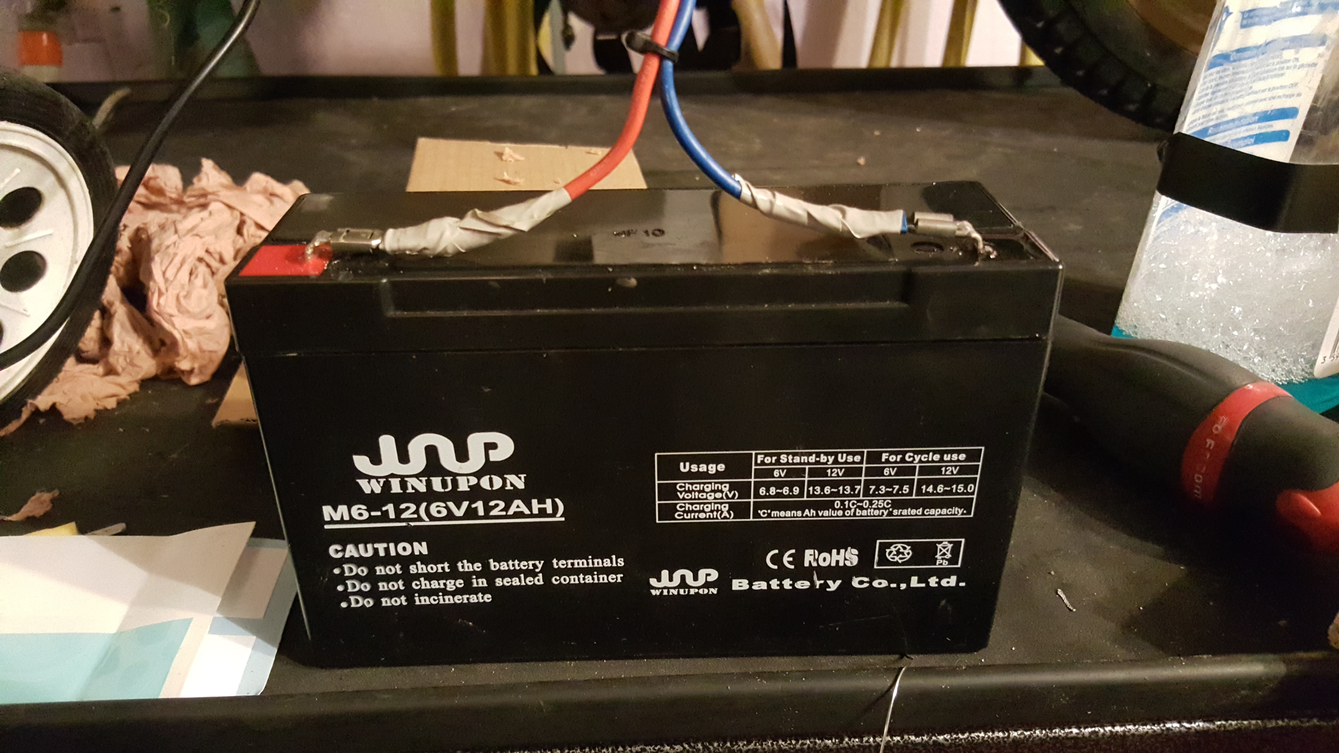 D'ailleurs on m'a conseillé de mettre une batterie 12v pour donner plus de pêche. Mais c'est prévu pour du 6v.